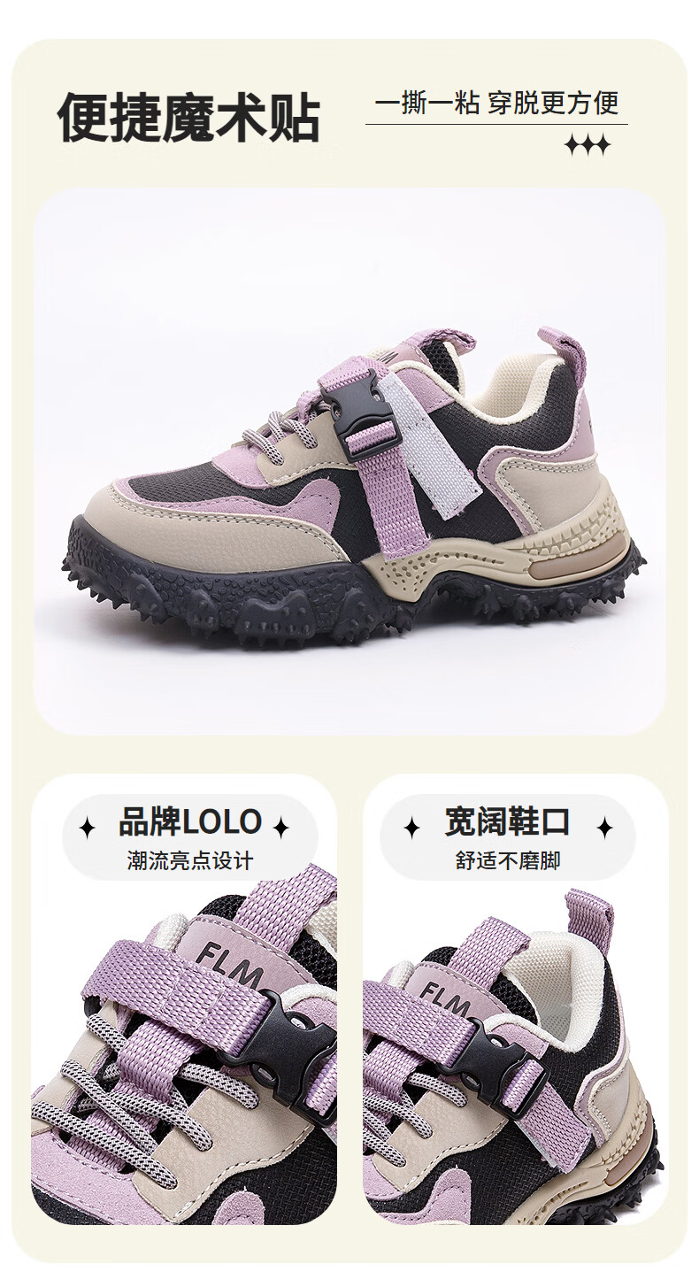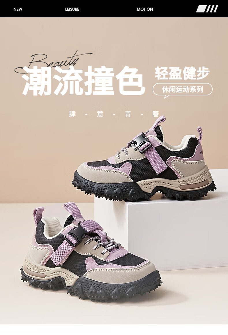 Fuluomi Spring and Autumn Girls' Trendy and Cool Contrast Color Comfortable Thick-Soled Sports and Casual Shoes Beige 28