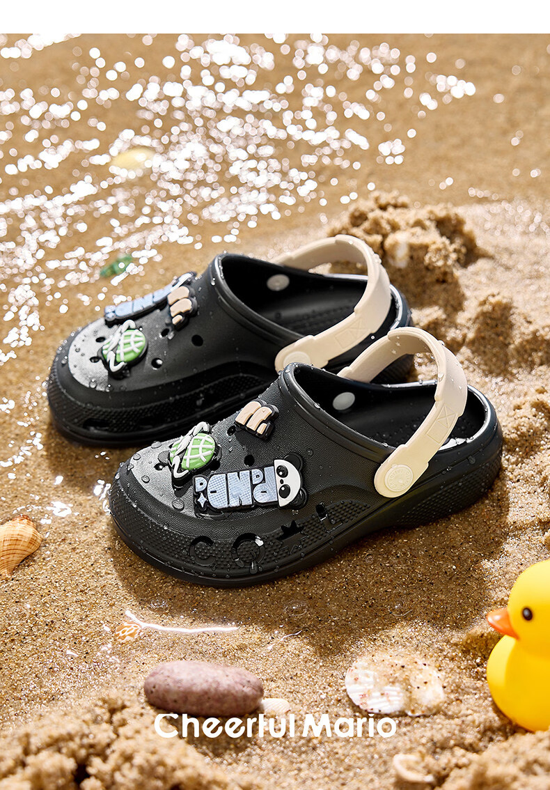 Happy Mary Children's Croc Shoes Boys' Slippers Summer Boys' and Children's Bathroom Beach Breathable Sandals Soft Bottom Bath Shoes for Outerwear Black 29 Inner Length 19cm (190) Suitable for 29 Feet