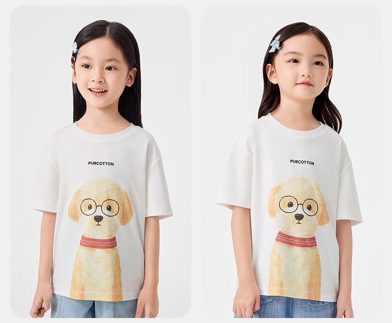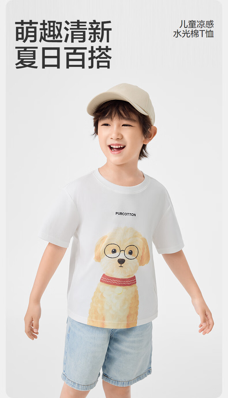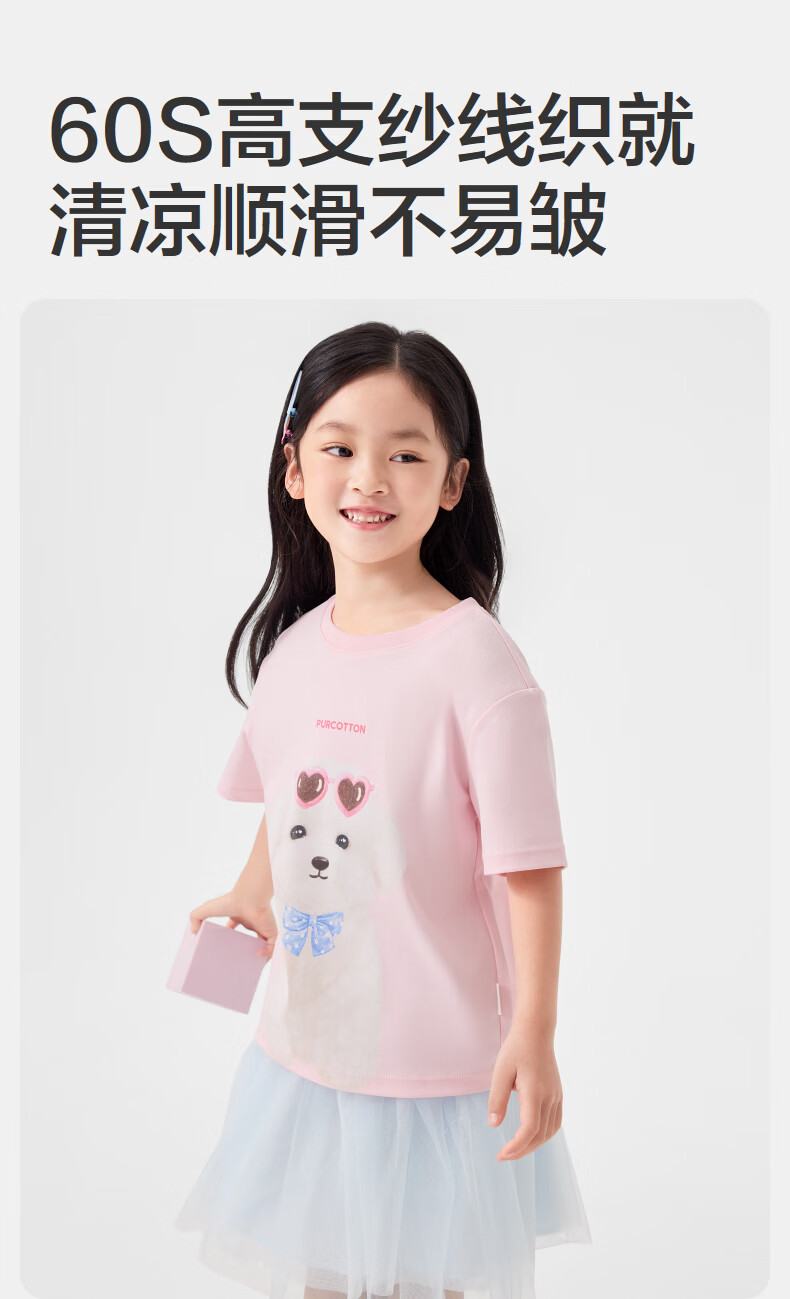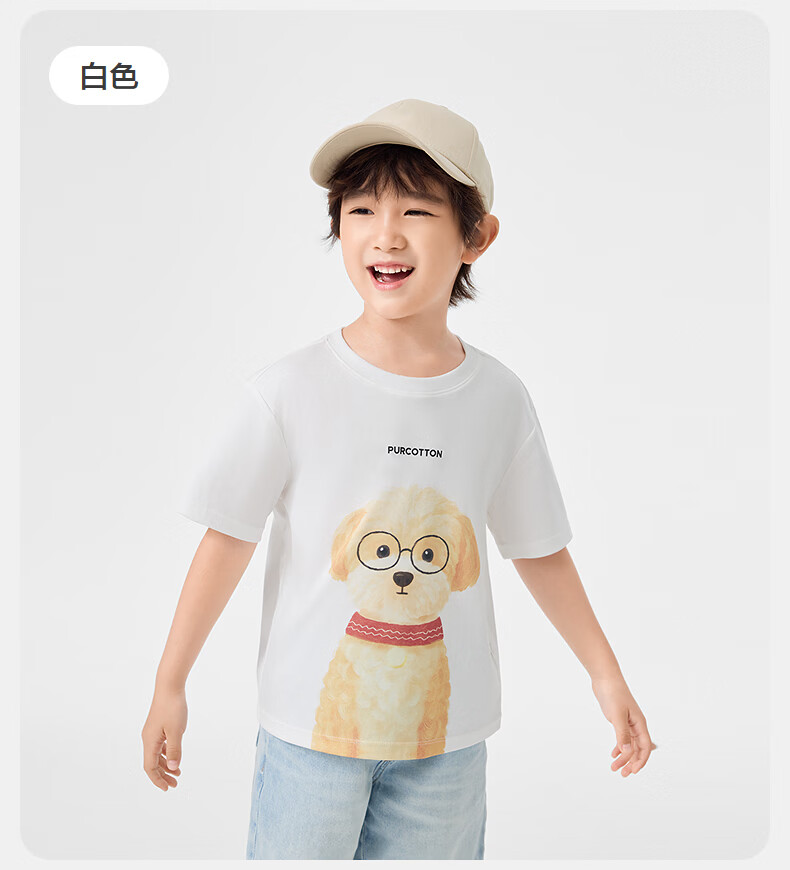 Cotton Era (PurCotton) 2026 summer children's cool* water-gloss cotton T-shirt 110/56 white white 110