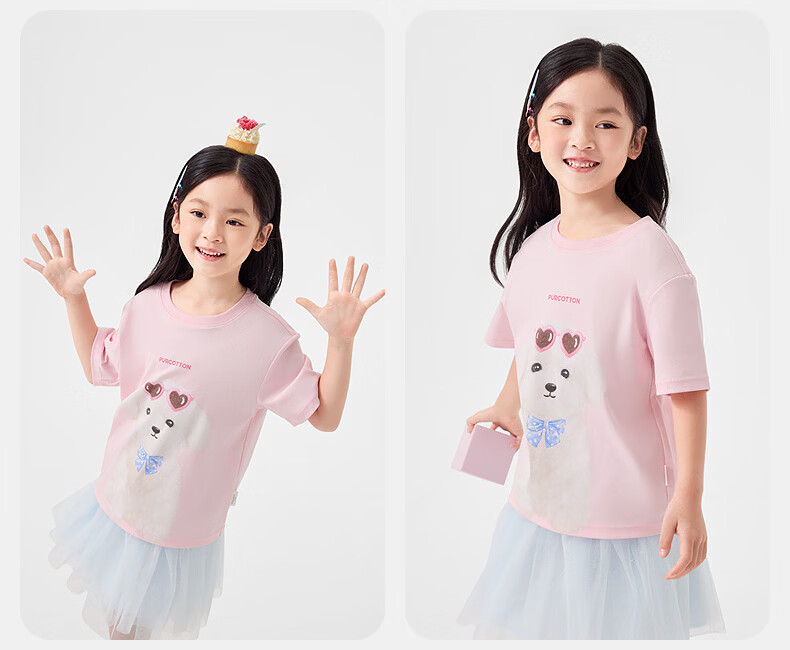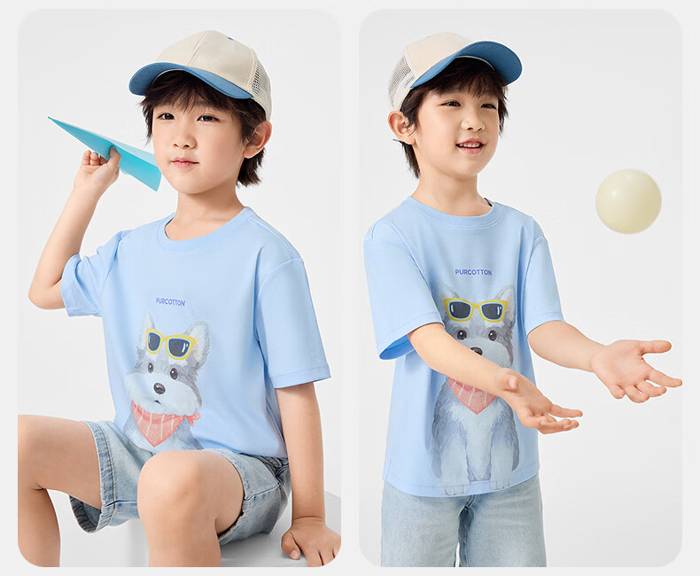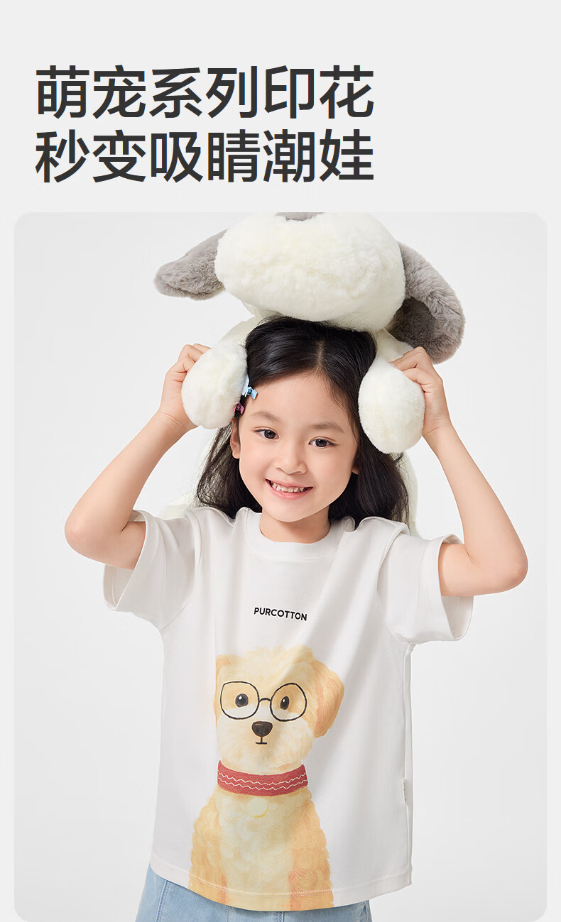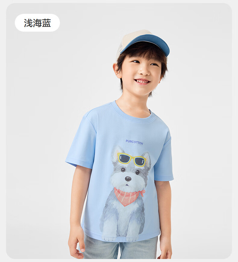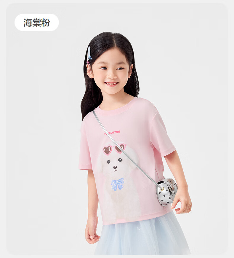 Cotton Era (PurCotton) 2026 summer children's cool* water-gloss cotton T-shirt 110/56 white white 110
