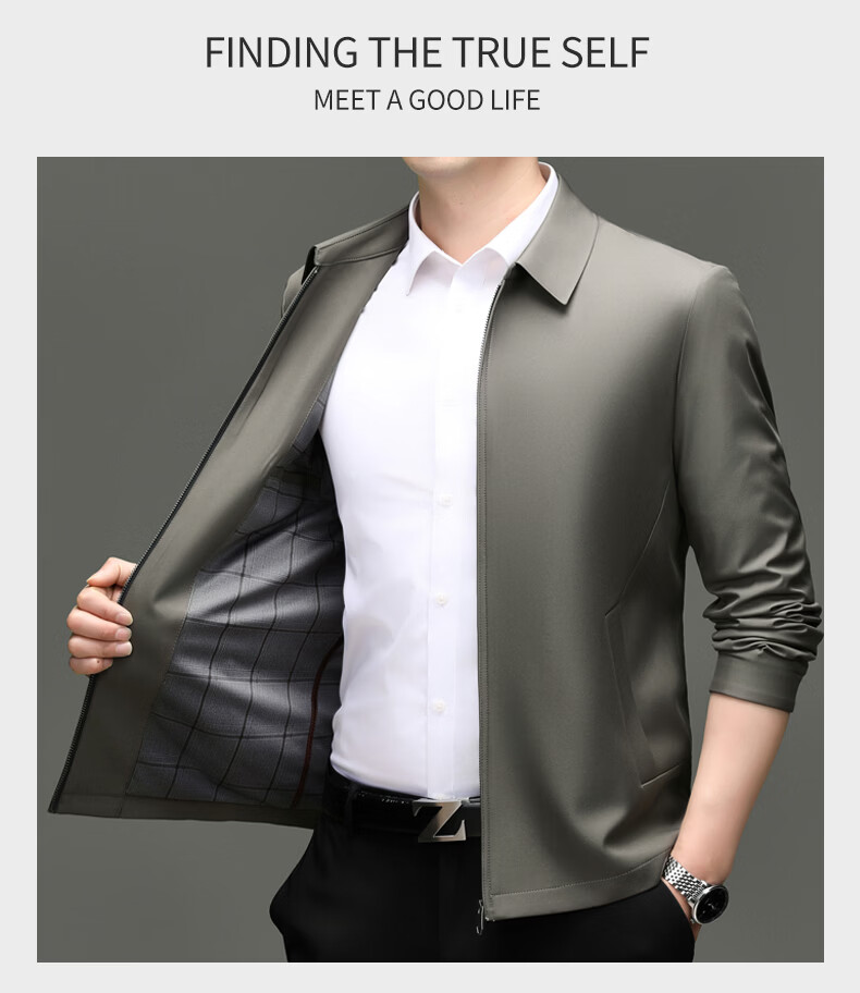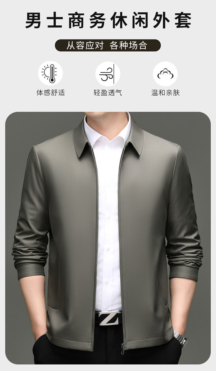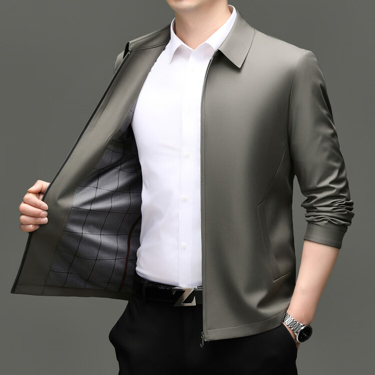 Hengyuanxiang Executive Jacket Men's 2026 Spring and Autumn New Middle-aged Men's Business Casual Men's Jacket Anti-Wrinkle Jacket Khaki XL 180