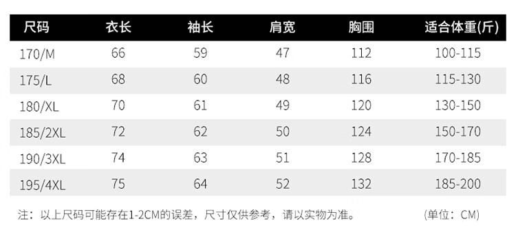 China (cm) 165 / 88-90 170 / 96-98 175 / 108-110 180 / 118-122 185 / 126-130