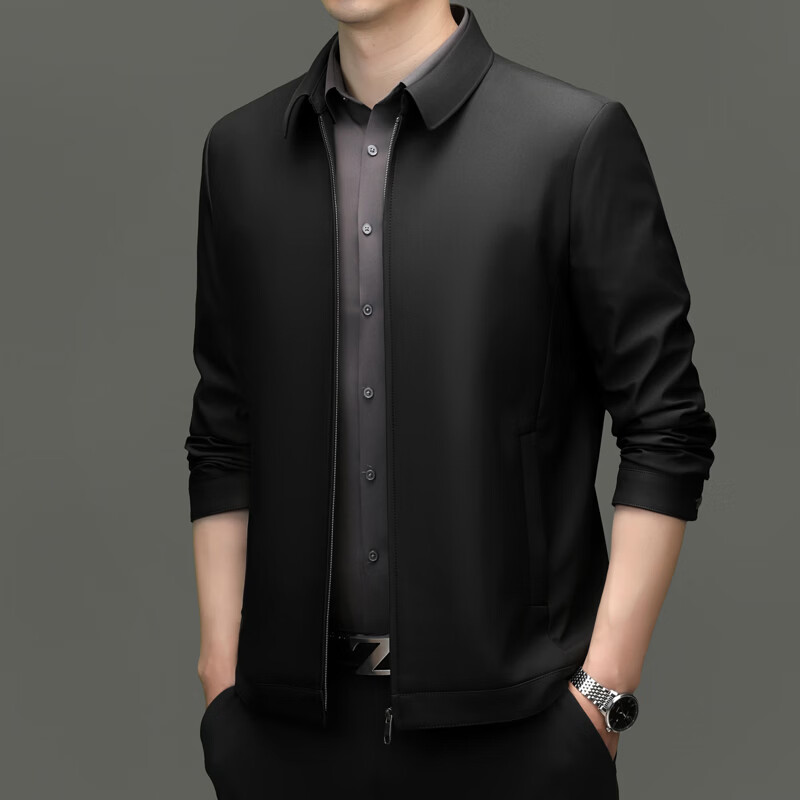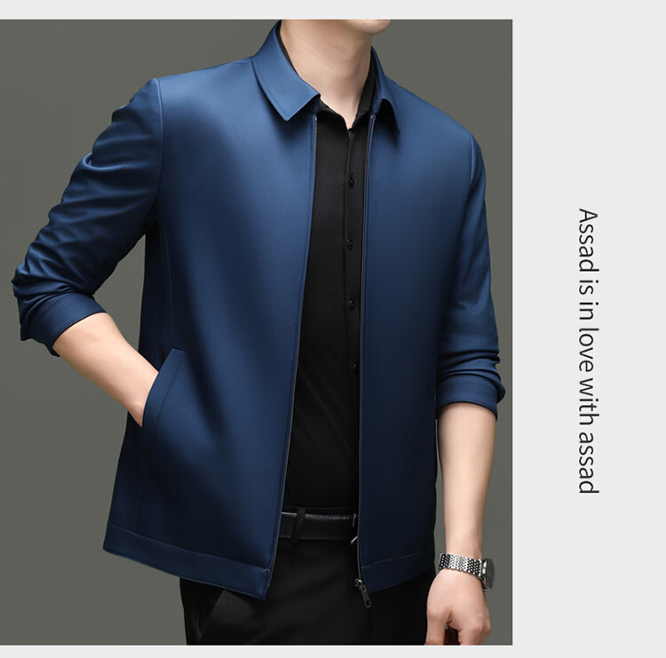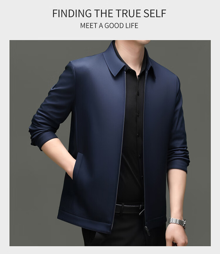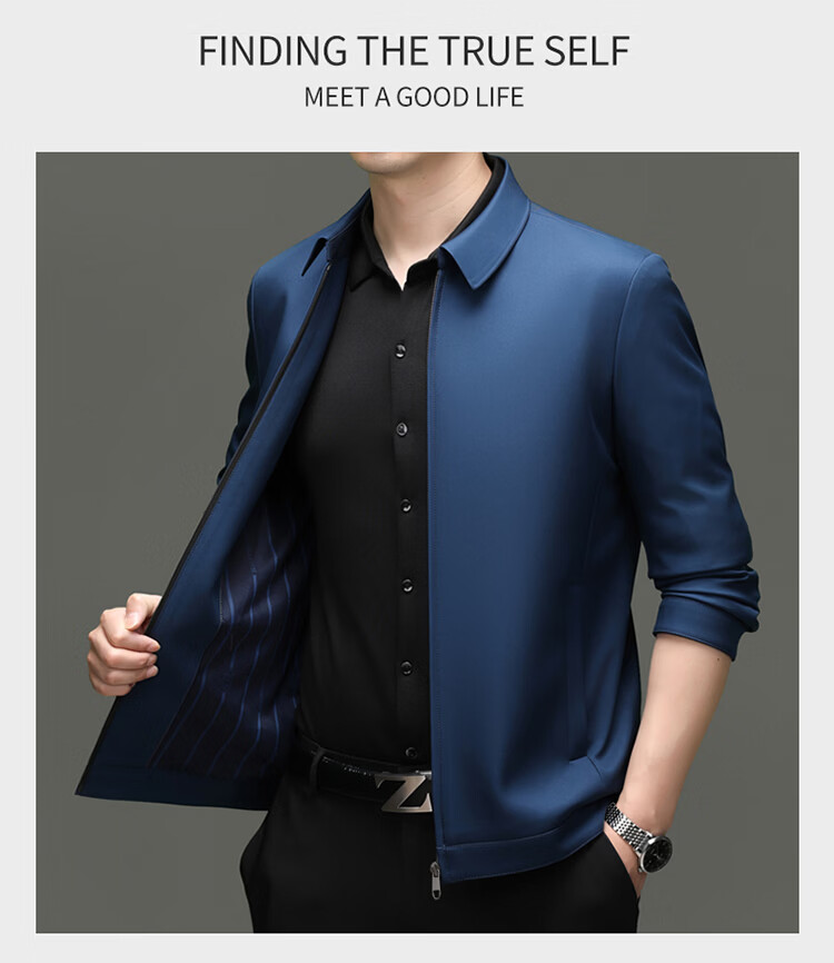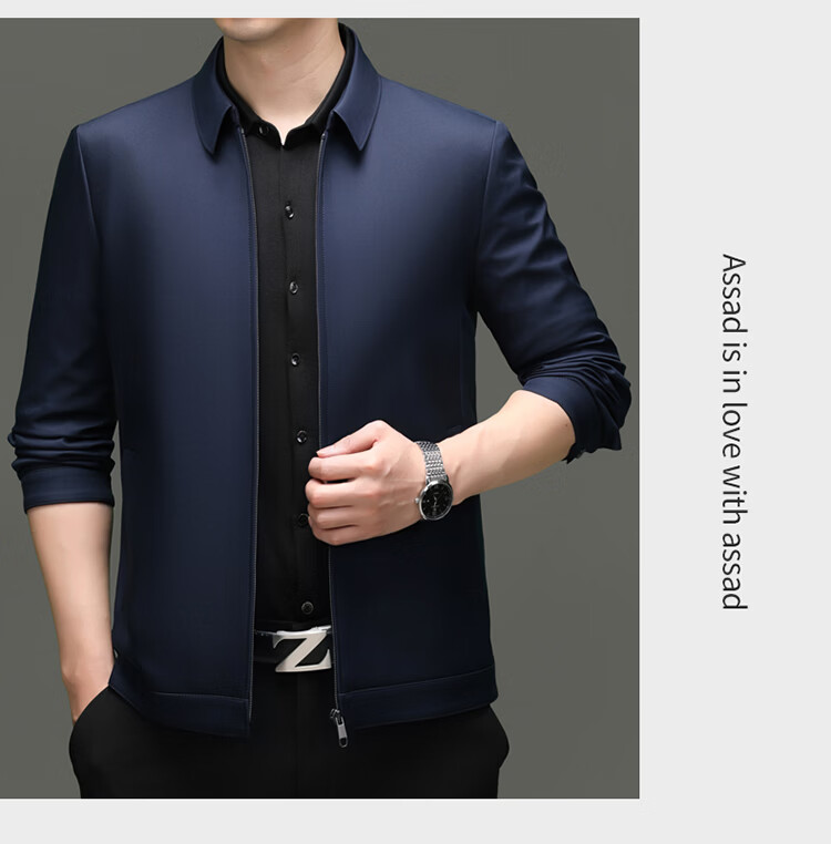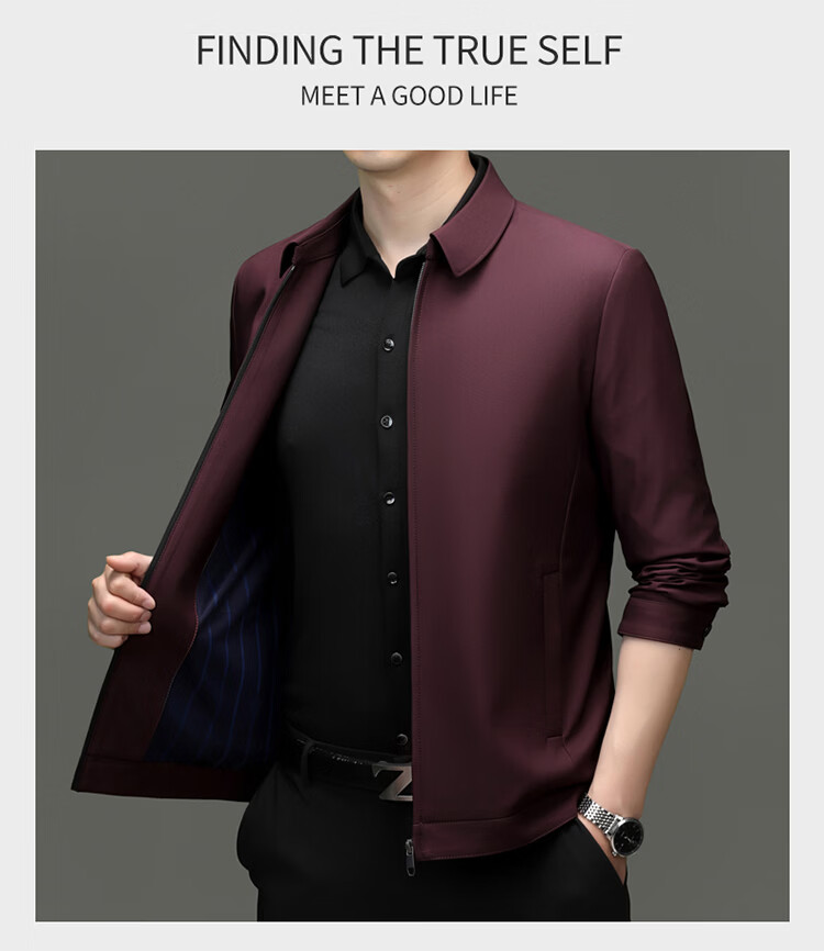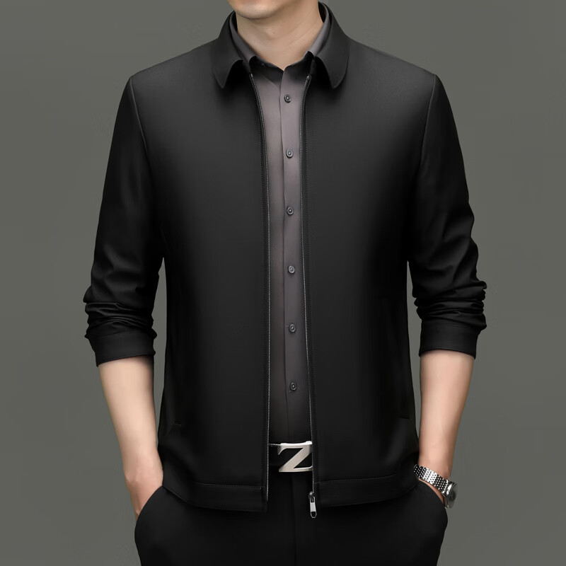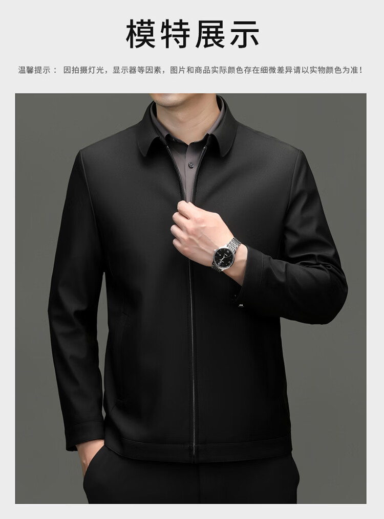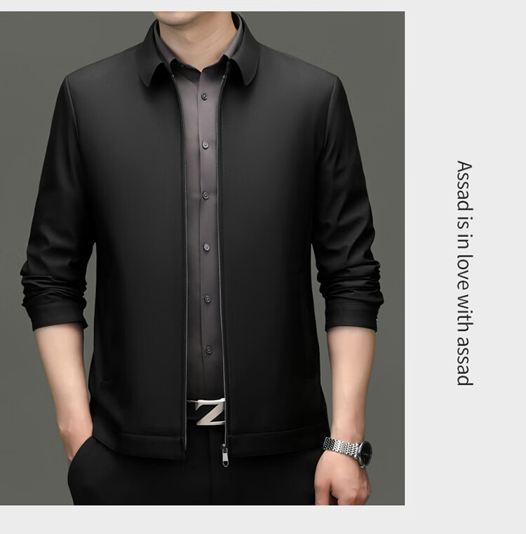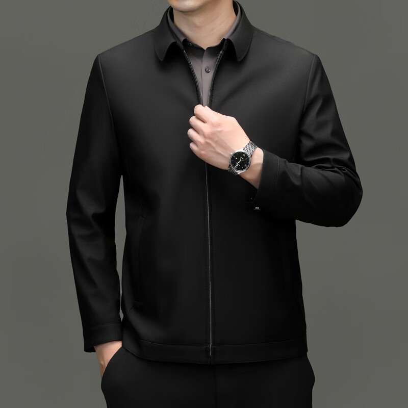 Hengyuanxiang executive jacket men's stand collar solid color business casual jacket men's loose plus fat plus size dad lapel top black M 170