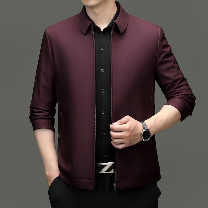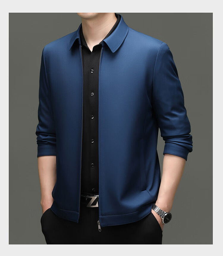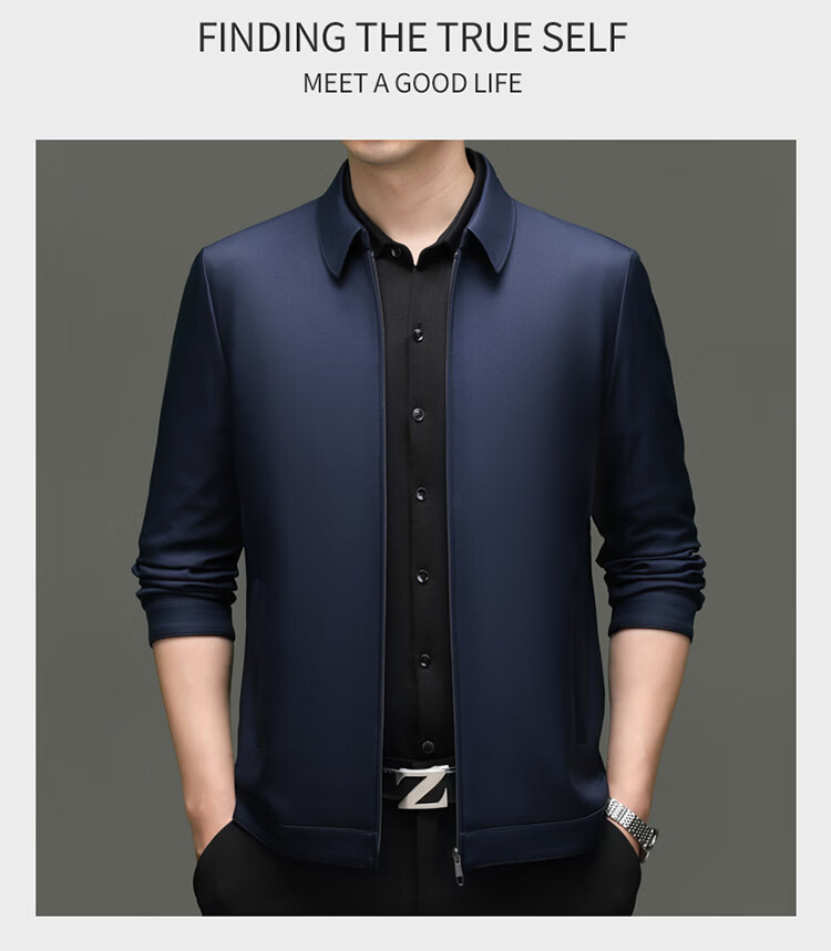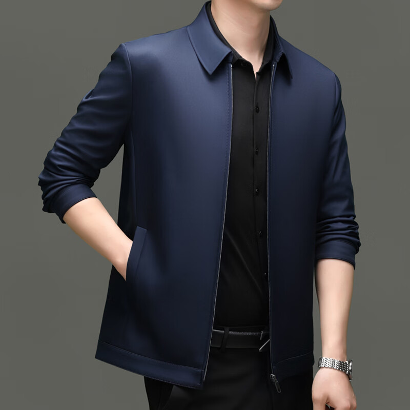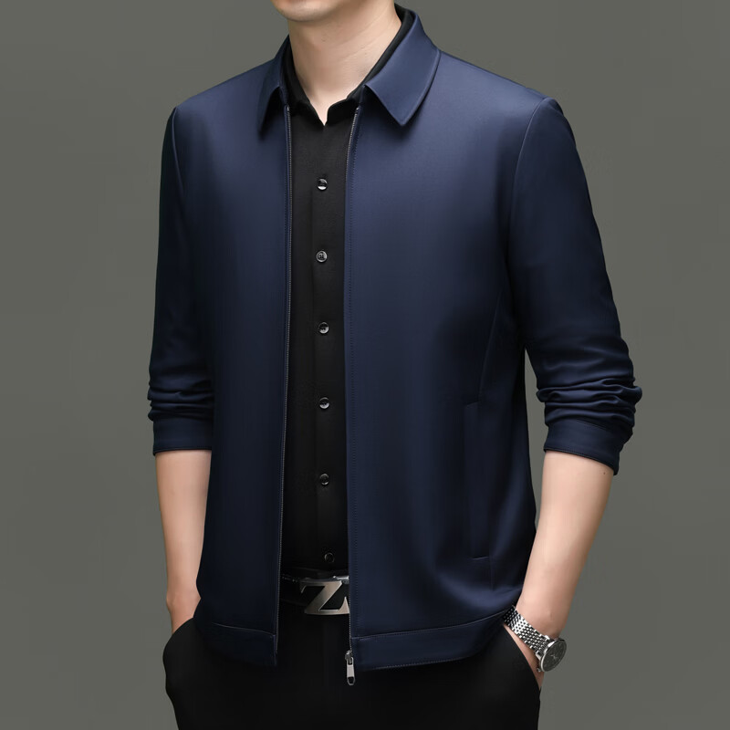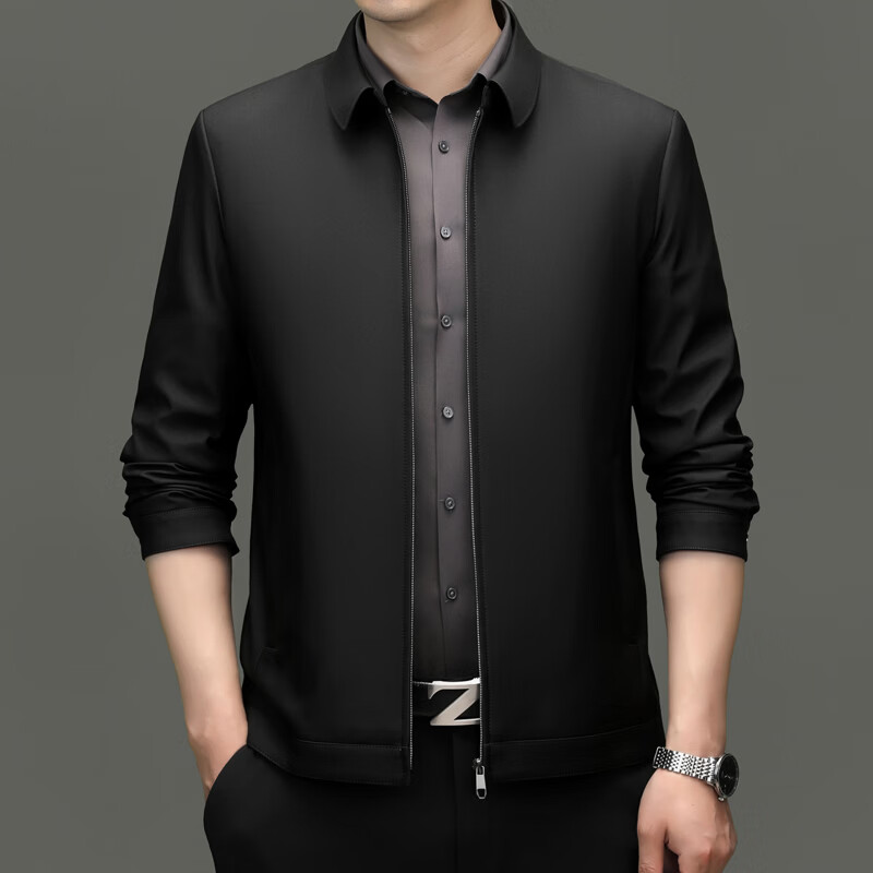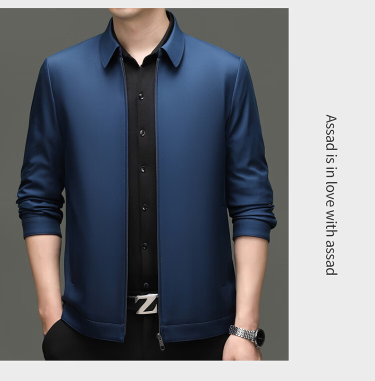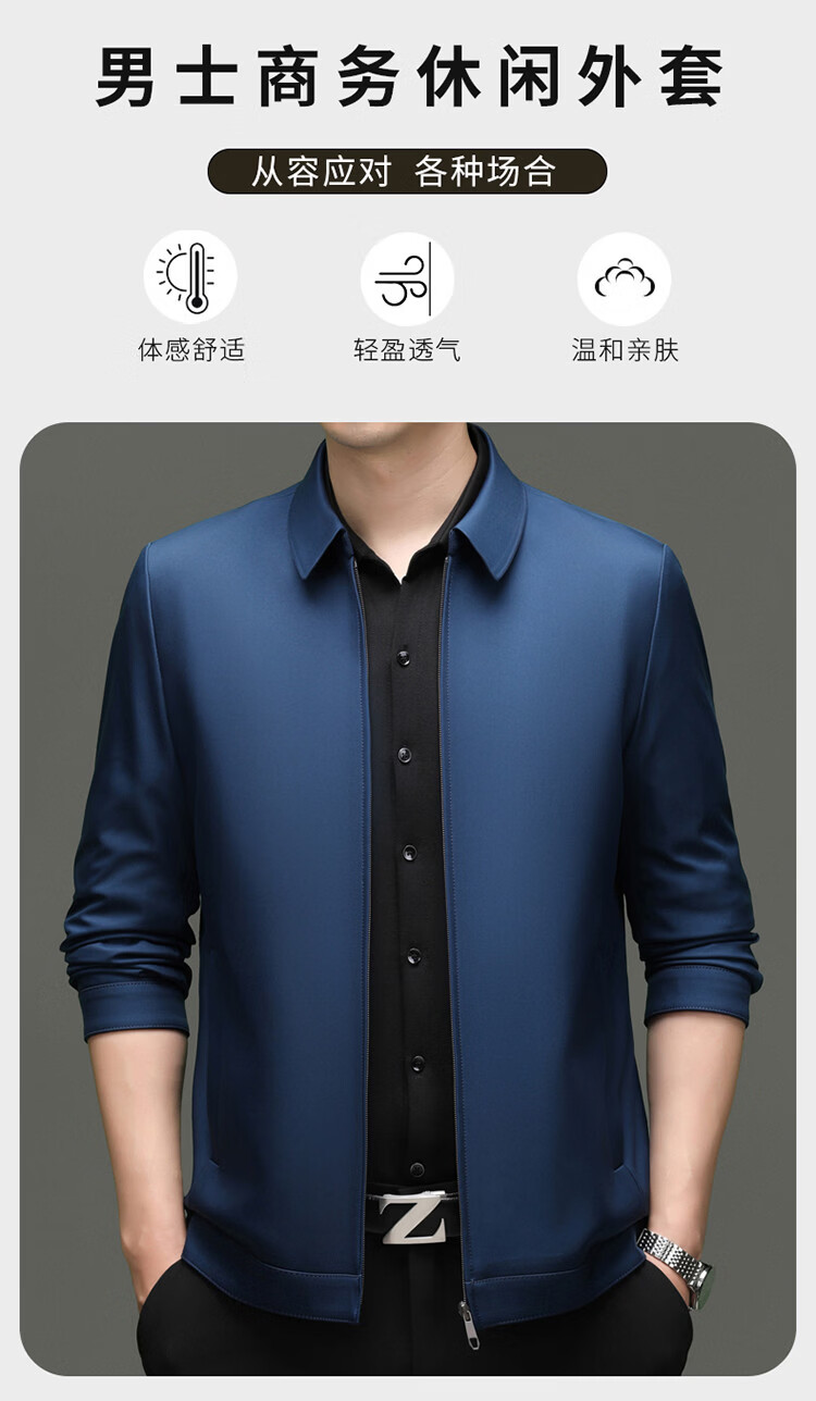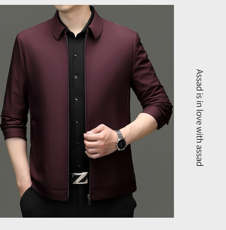 Hengyuanxiang executive jacket men's stand collar solid color business casual jacket men's loose plus fat plus size dad lapel top black M 170