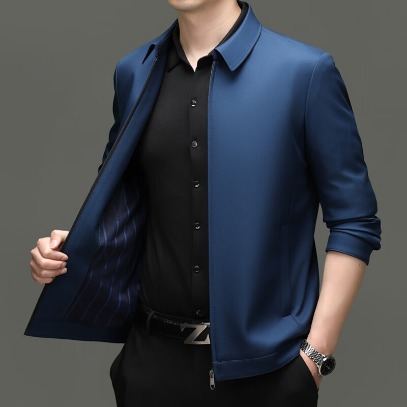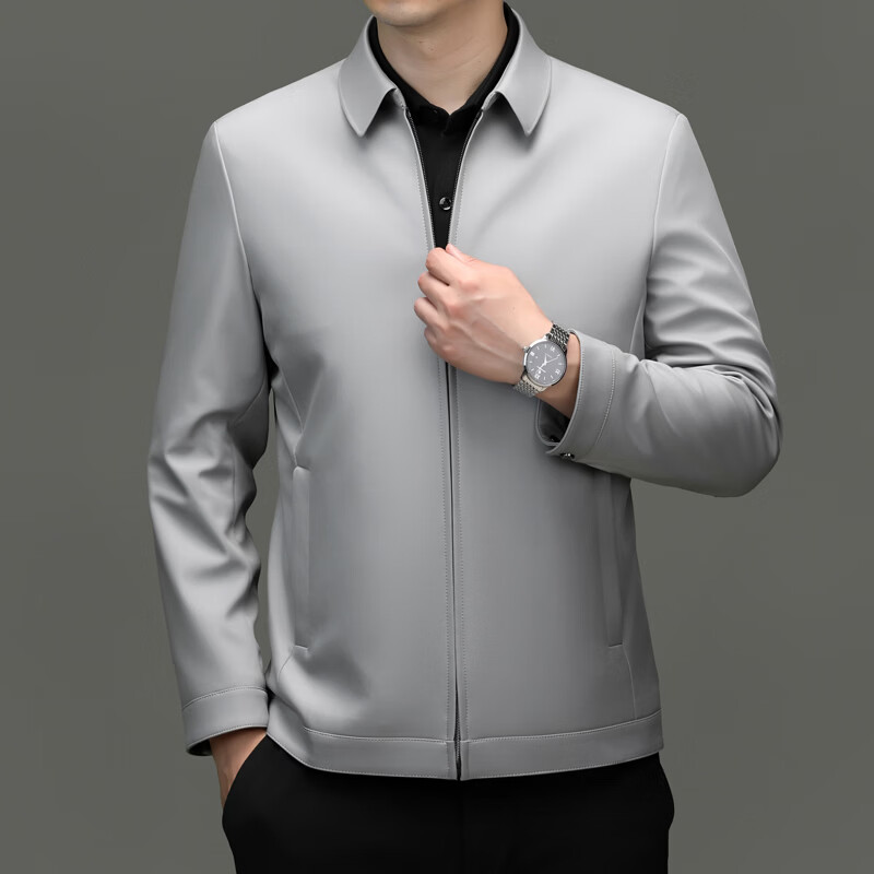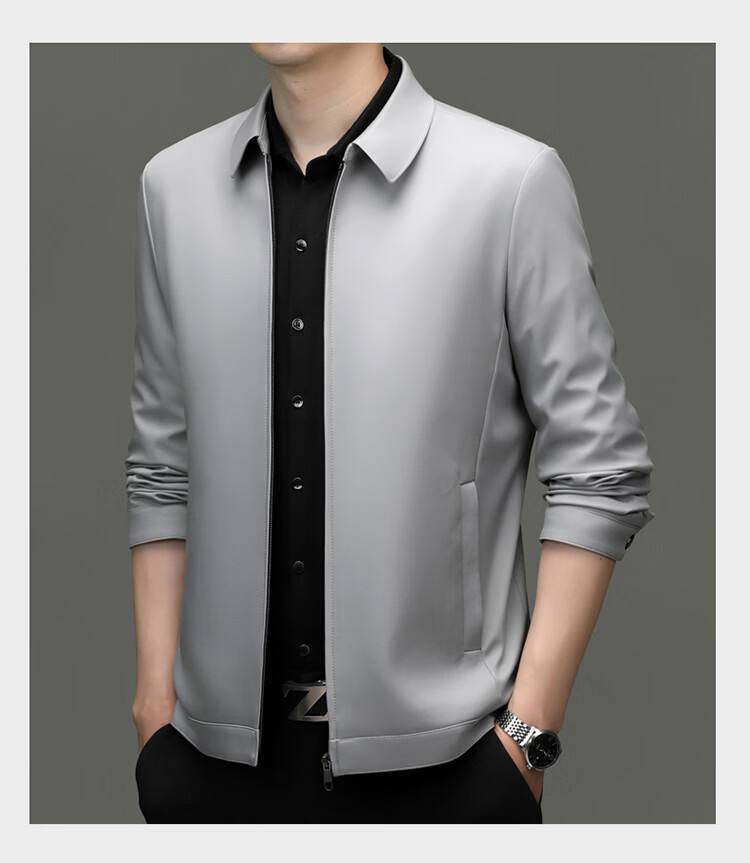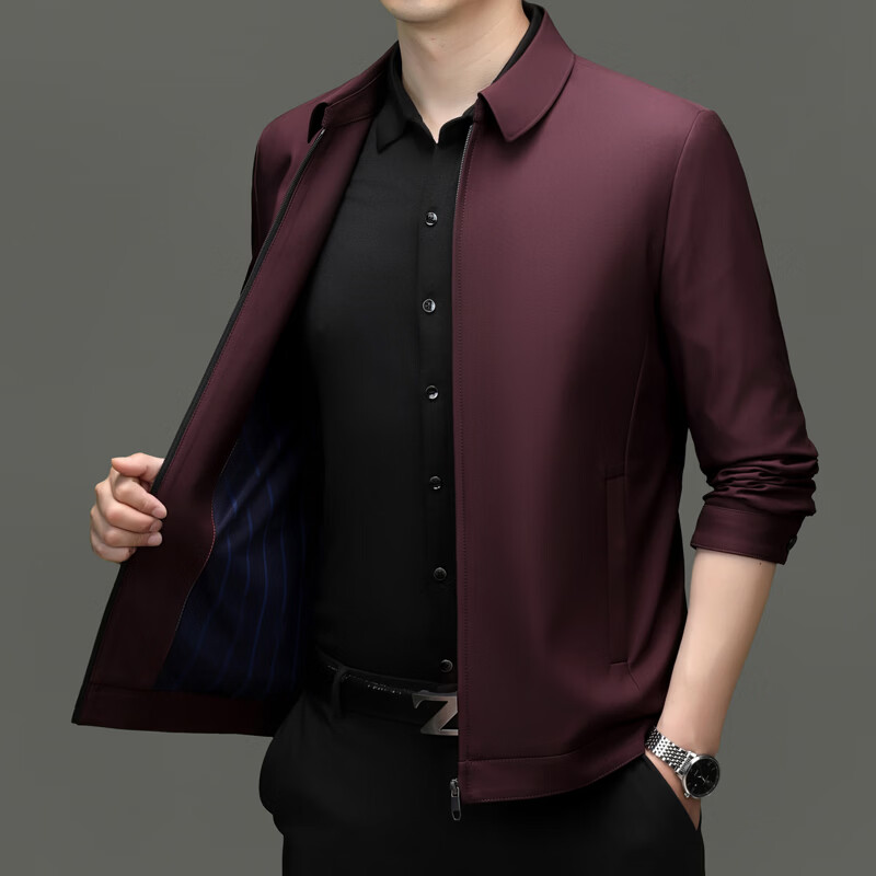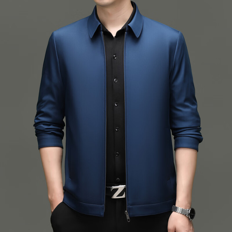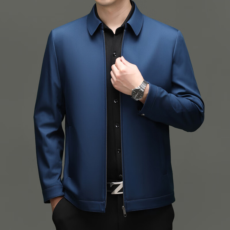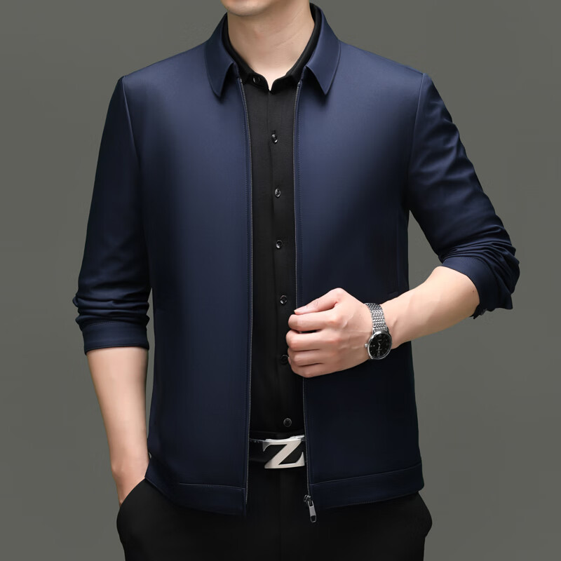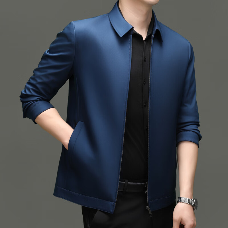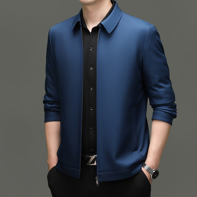 Hengyuanxiang executive jacket men's stand collar solid color business casual jacket men's loose plus fat plus size dad lapel top black M 170
