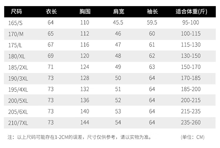 China (cm) 165 / 88-90 170 / 96-98 175 / 108-110 180 / 118-122 185 / 126-130