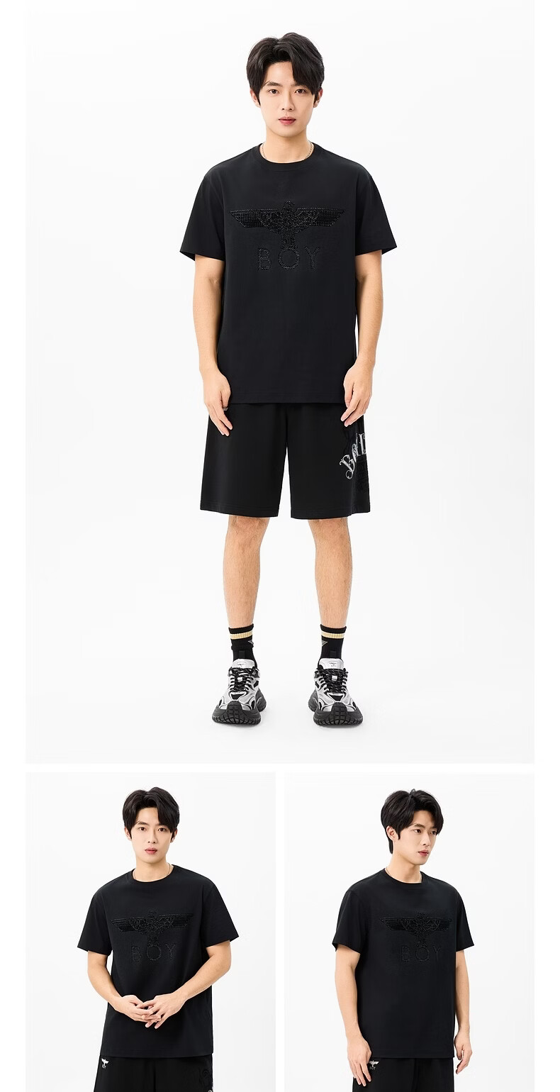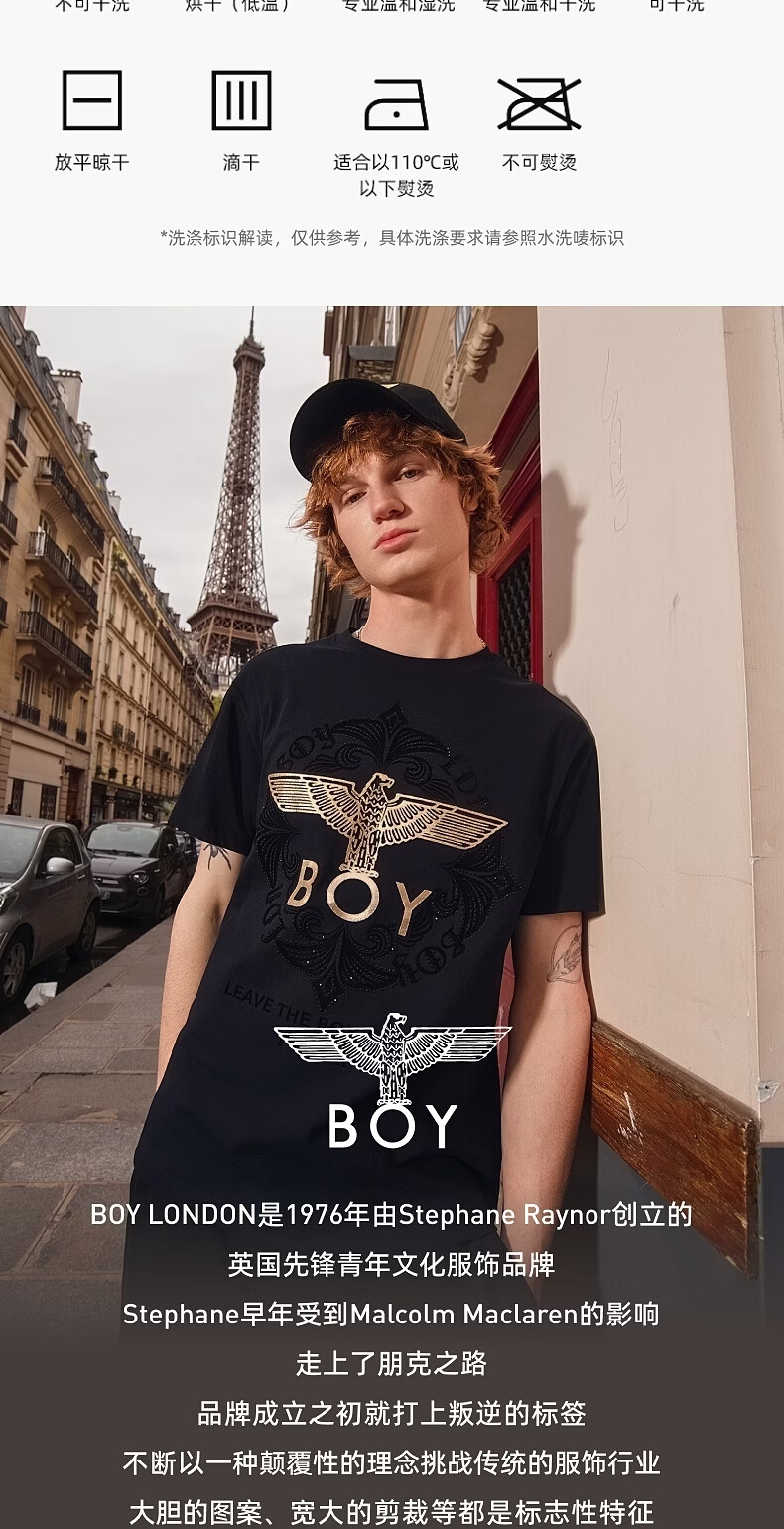 BOY LONDON round neck low-key black flocking short-sleeved men's and women's 2026 spring and summer new cool T-shirt N01080 black S