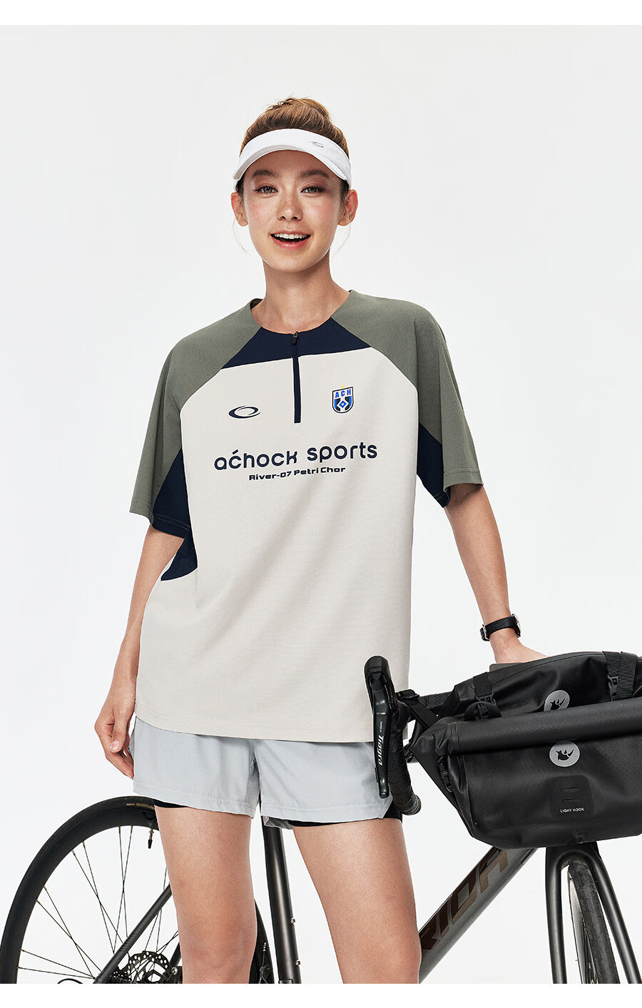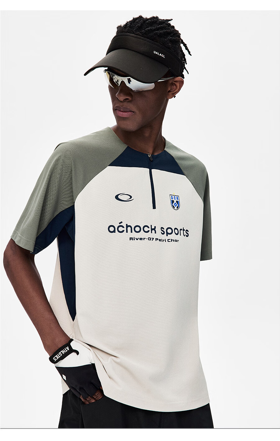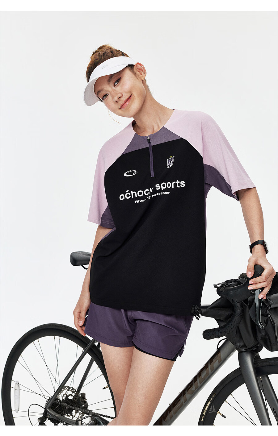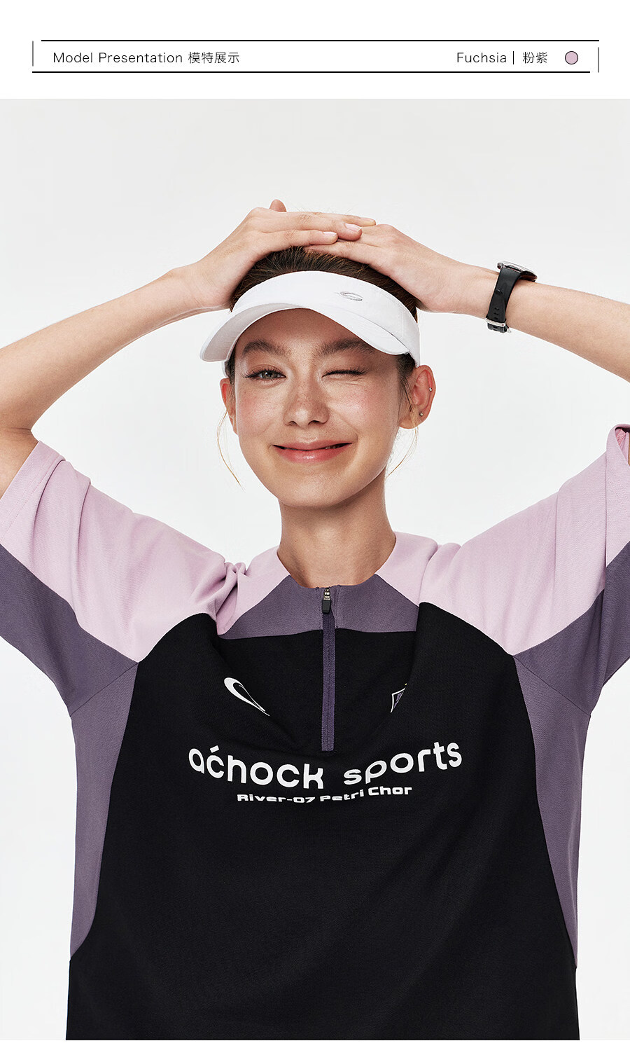 A CHOCKAchock sports summer outdoor sports half-zip negative ion 7A antibacterial leather quick-drying cool short-sleeved men's pink purple L