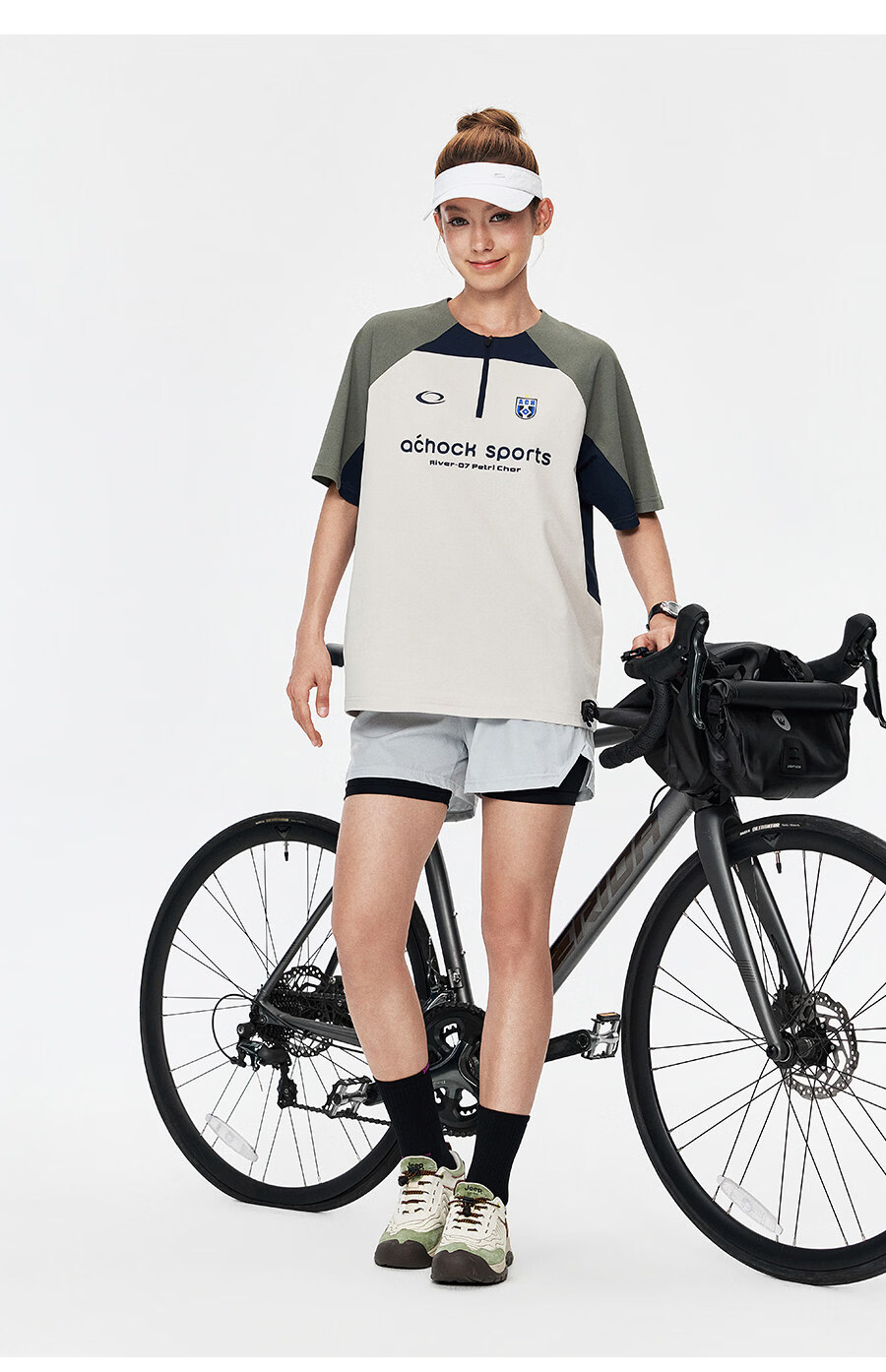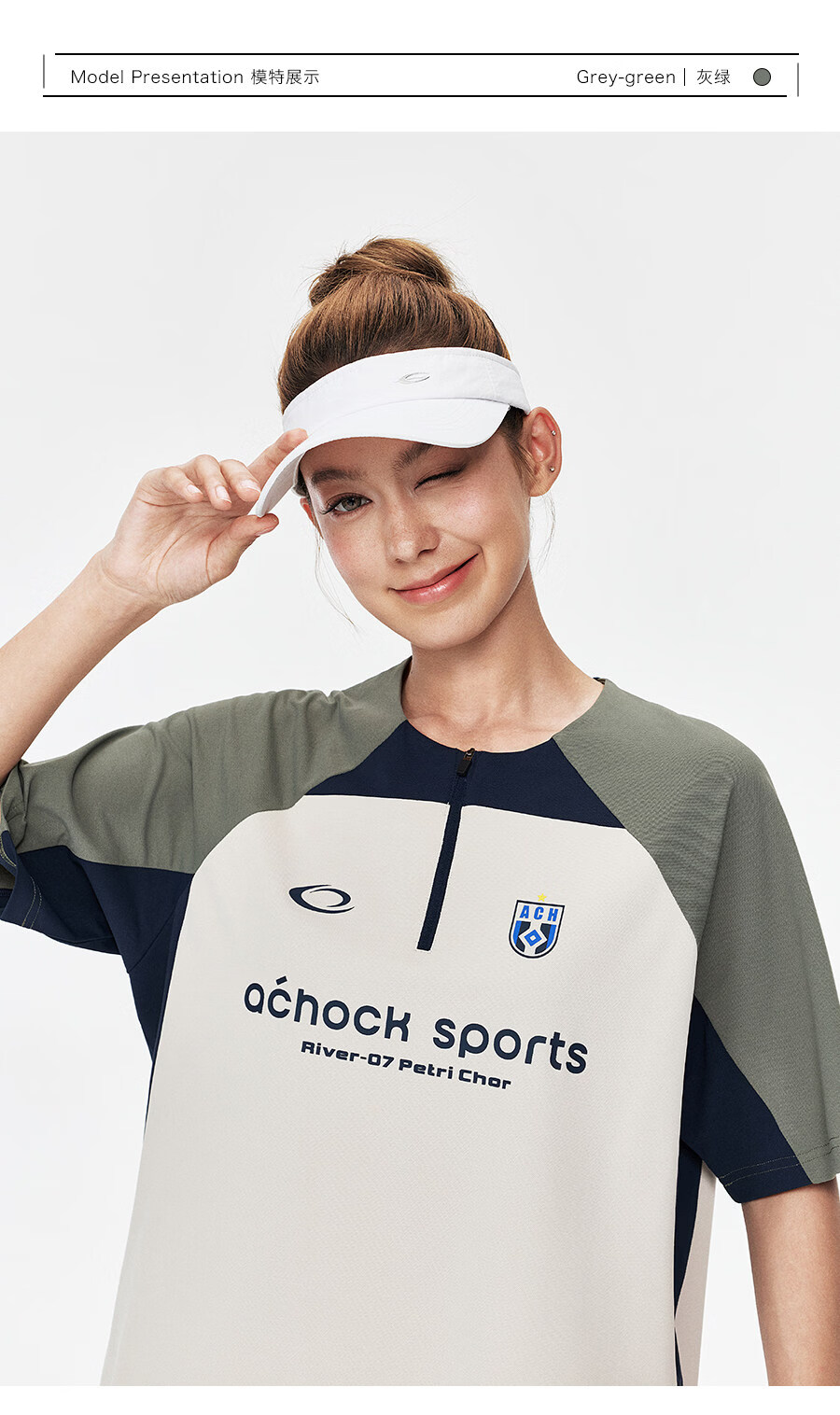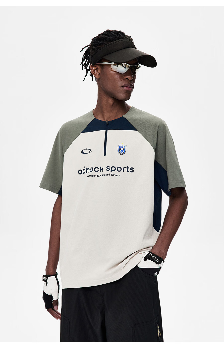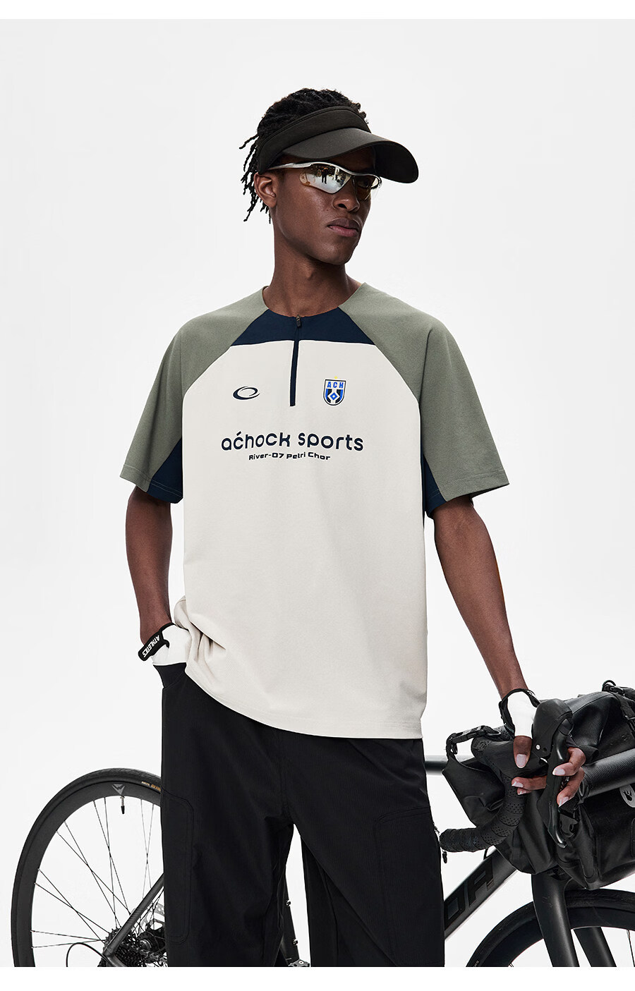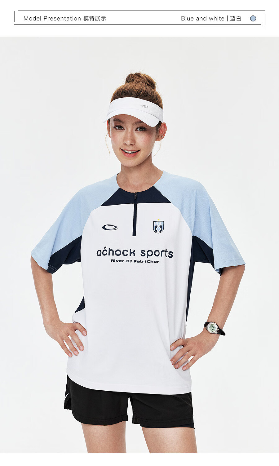 A CHOCKAchock sports summer outdoor sports half-zip negative ion 7A antibacterial leather quick-drying cool short-sleeved men's pink purple L
