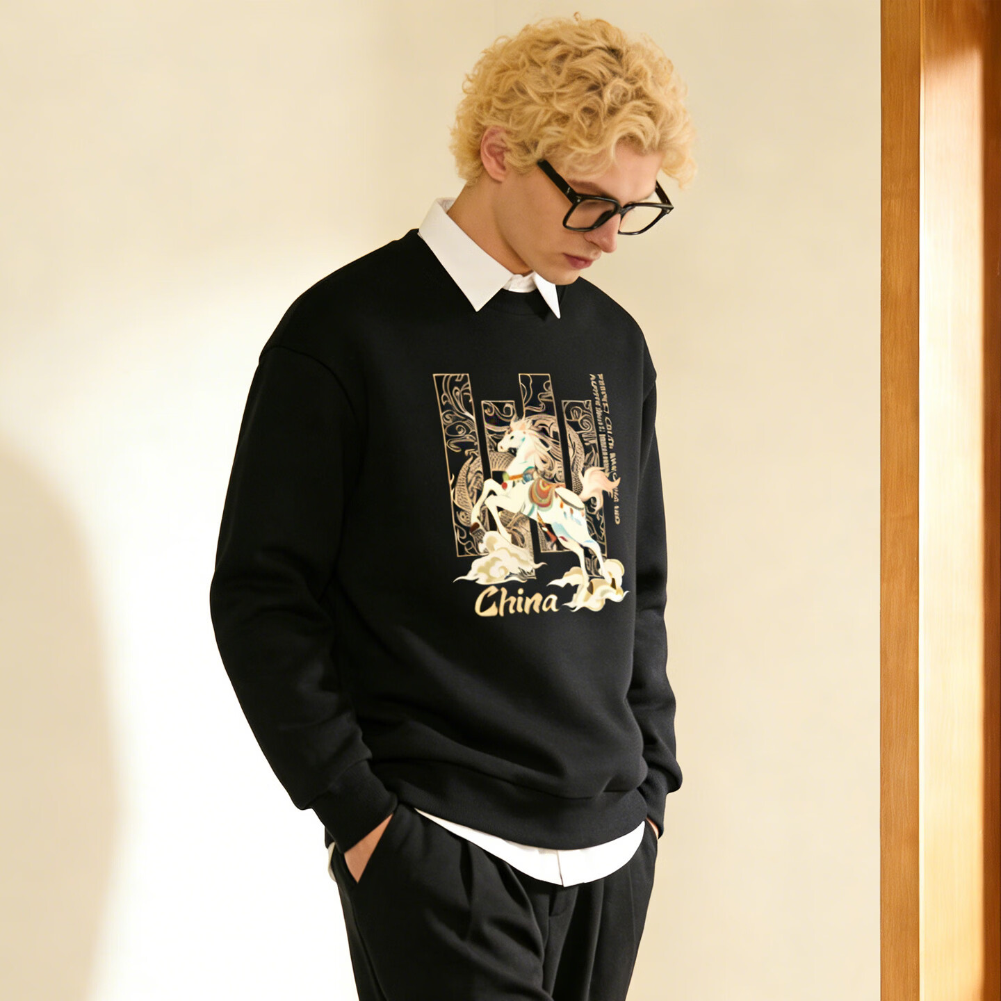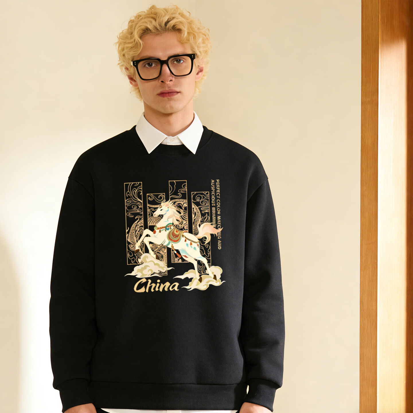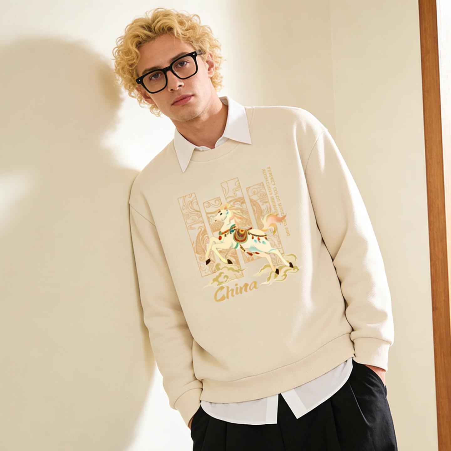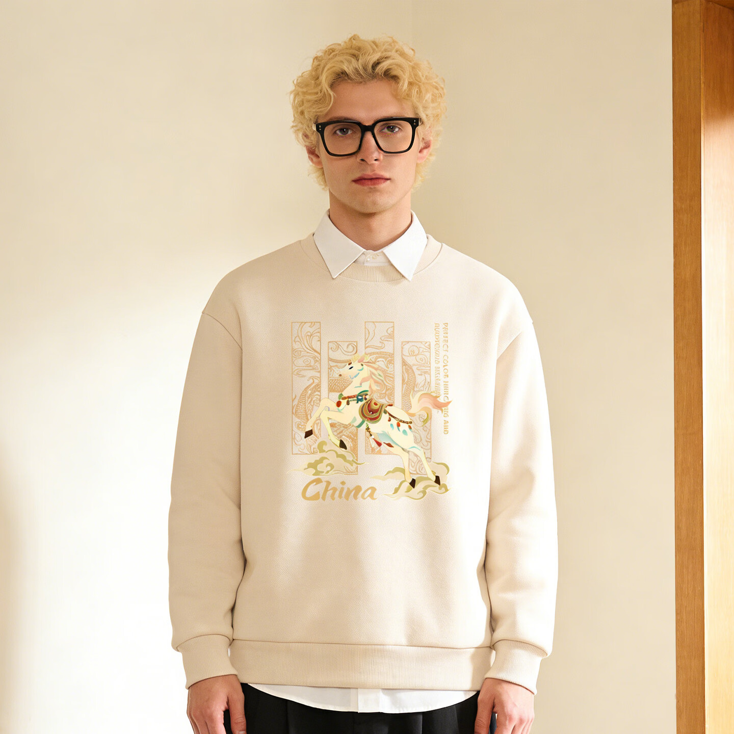 Playboy (PLAYBOY) Chinese style Shan Hai Jing sweatshirt men's 2026 spring new loose casual top trendy couple jacket apricot 3XL 160-180