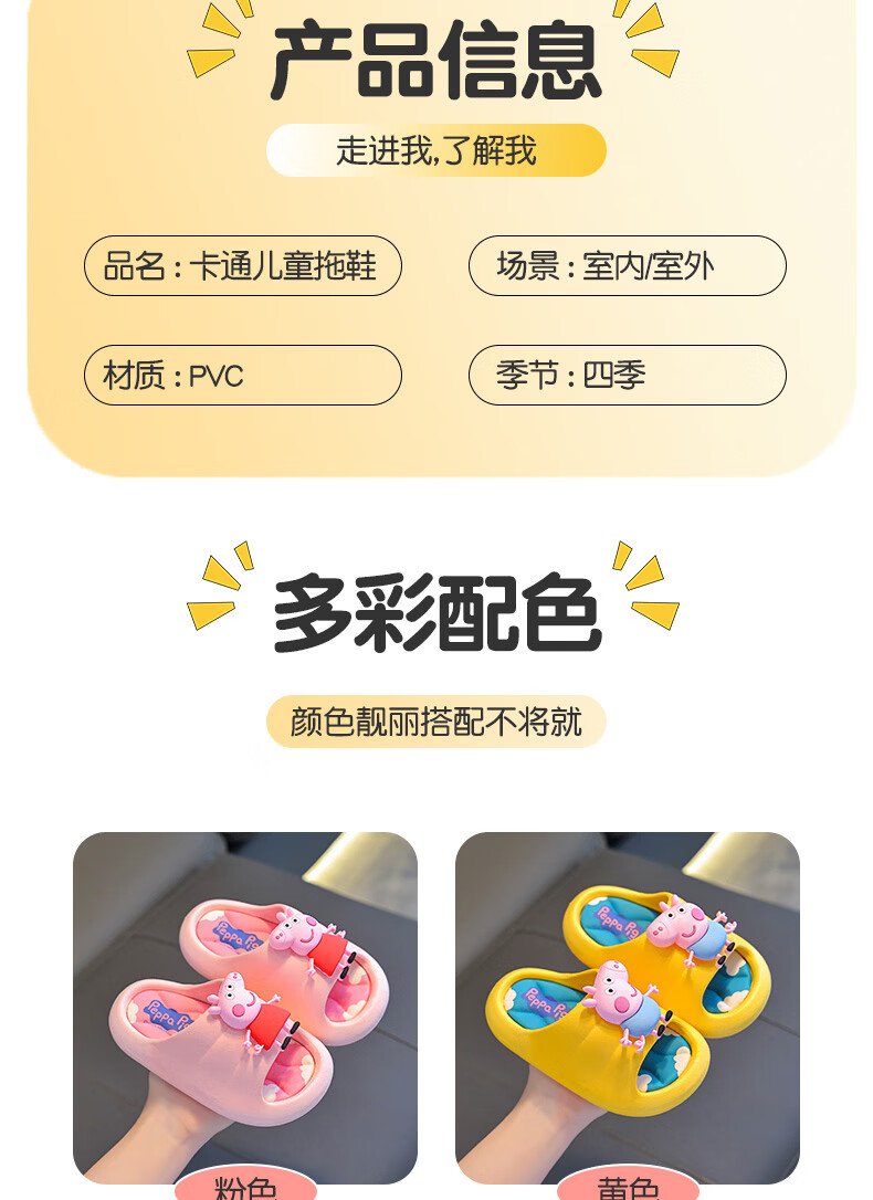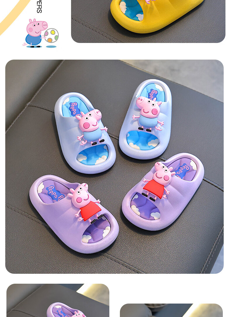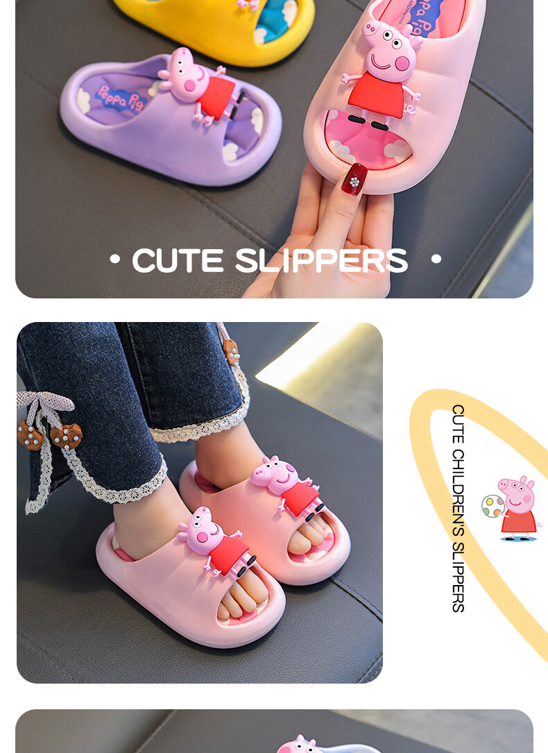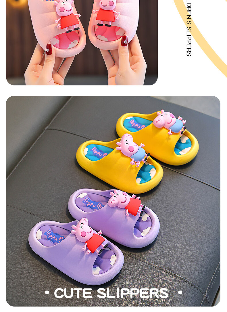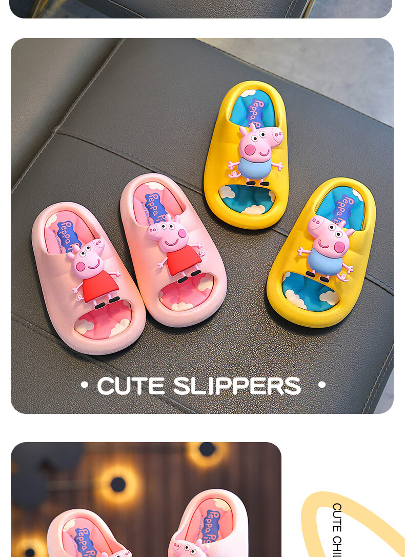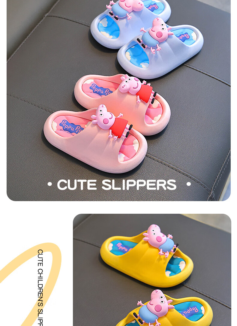 Peppa Pig children's slippers, girls' summer cartoon, cute non-slip bathing soft-soled baby slippers, yellow (upgraded environmentally friendly material) 24/25 size (shoe inner length 15, suitable for feet 14CM)
