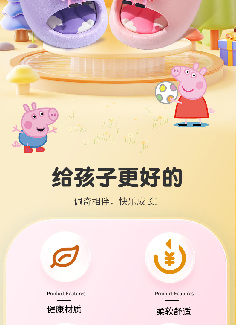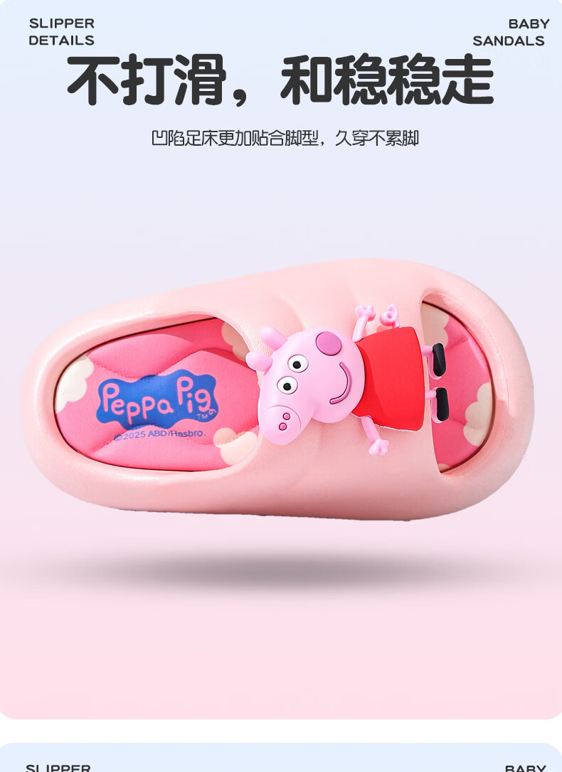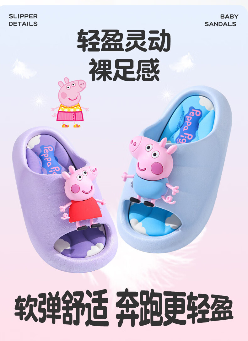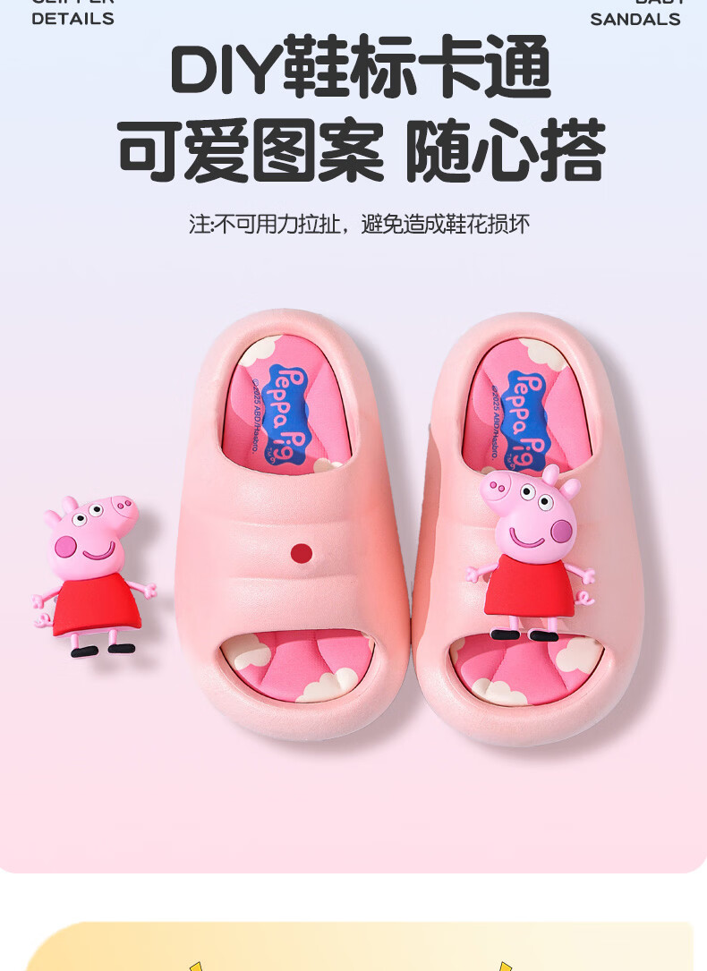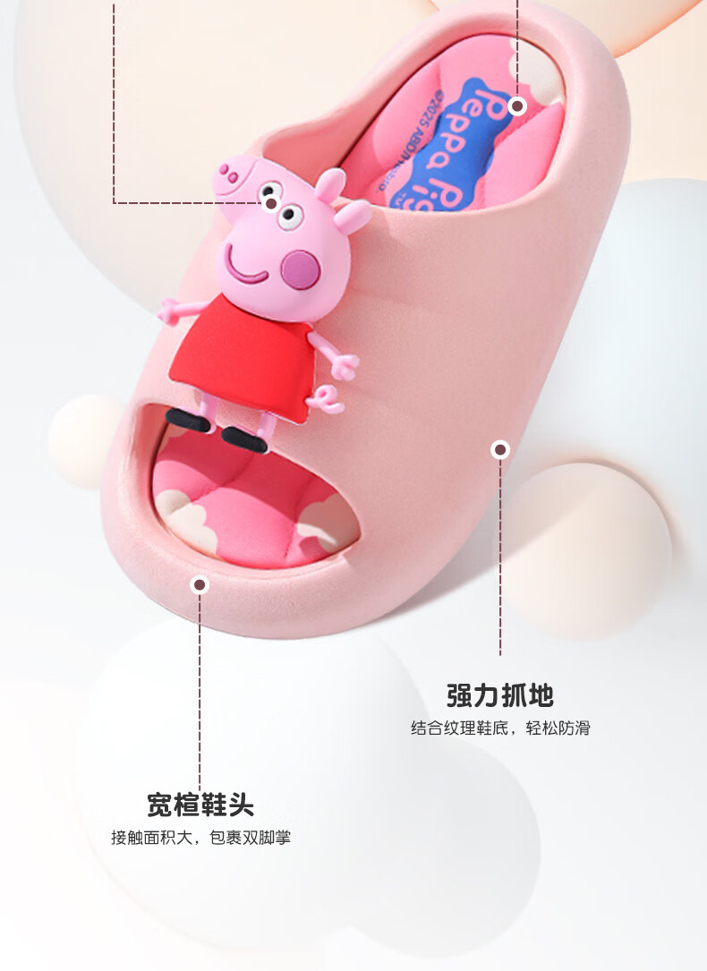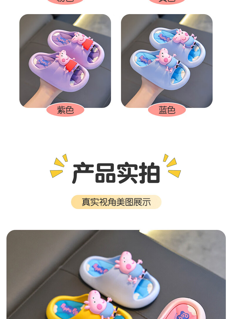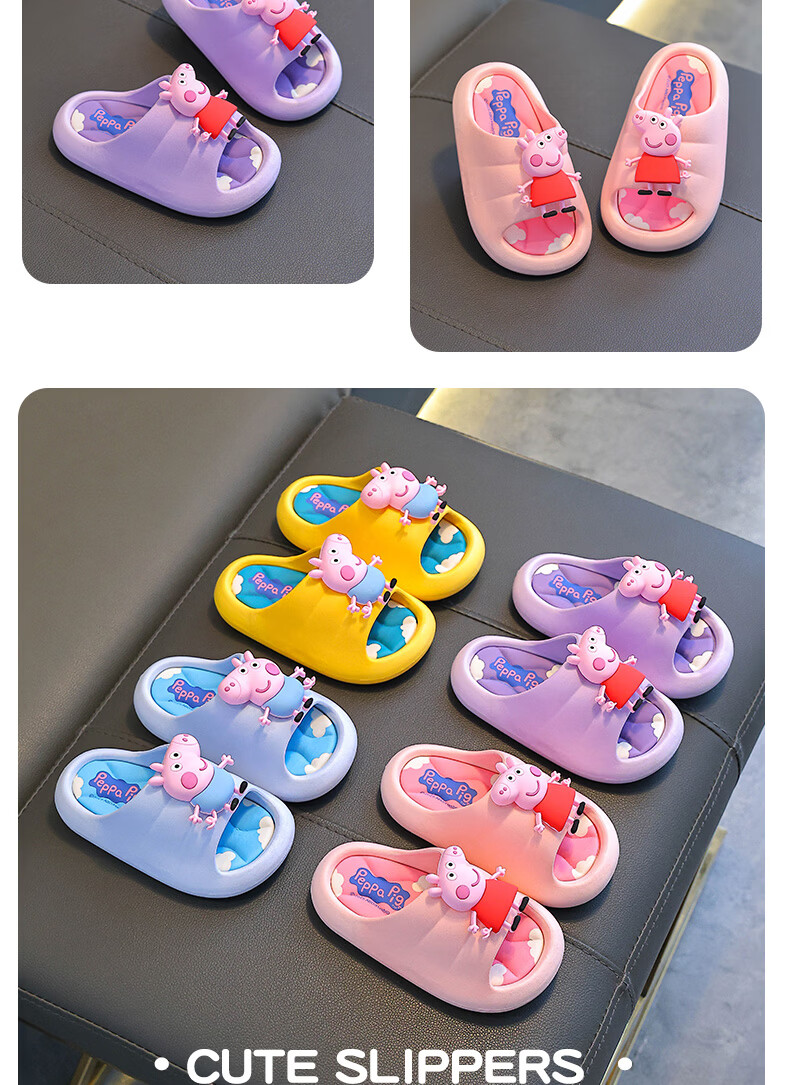 Peppa Pig children's slippers, girls' summer cartoon, cute non-slip bathing soft-soled baby slippers, yellow (upgraded environmentally friendly material) 24/25 size (shoe inner length 15, suitable for feet 14CM)