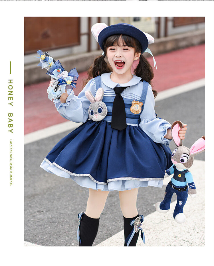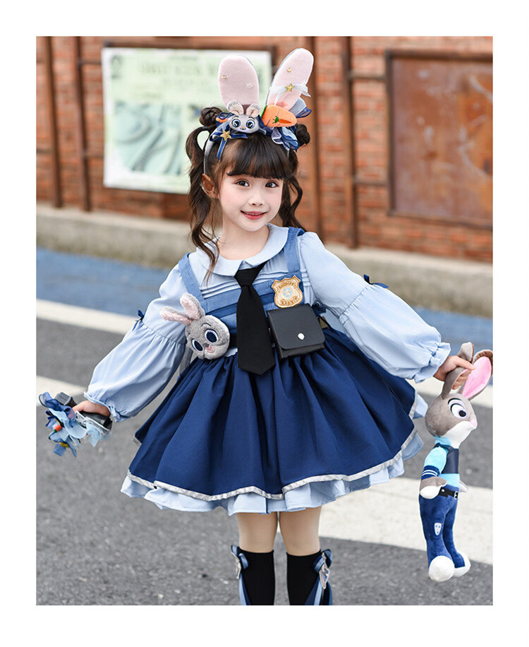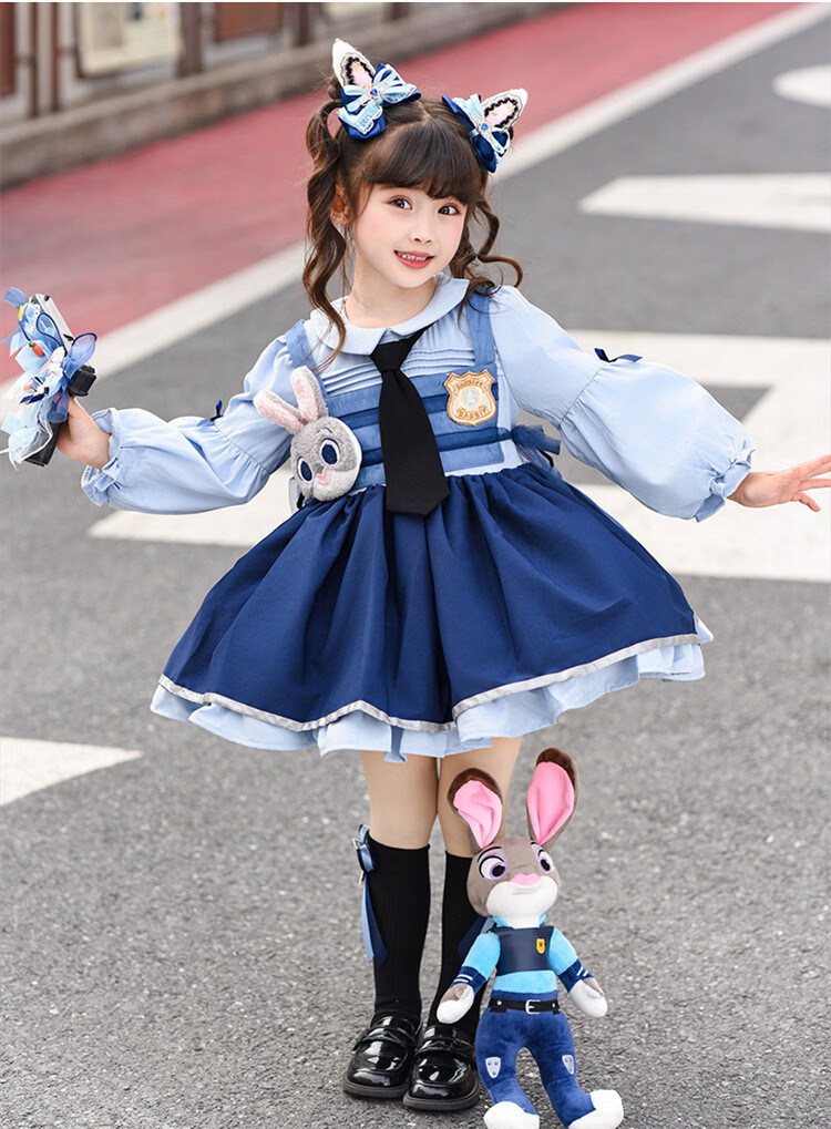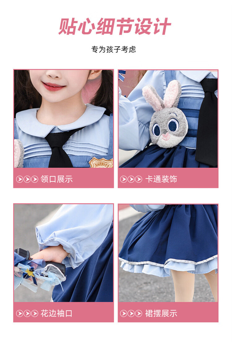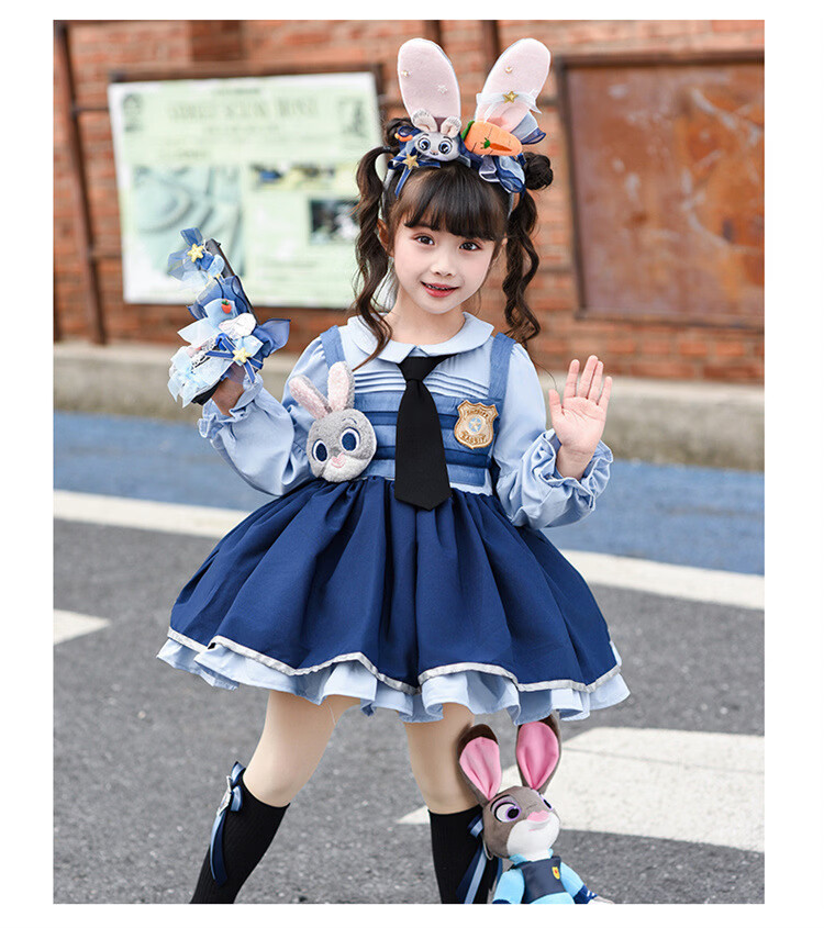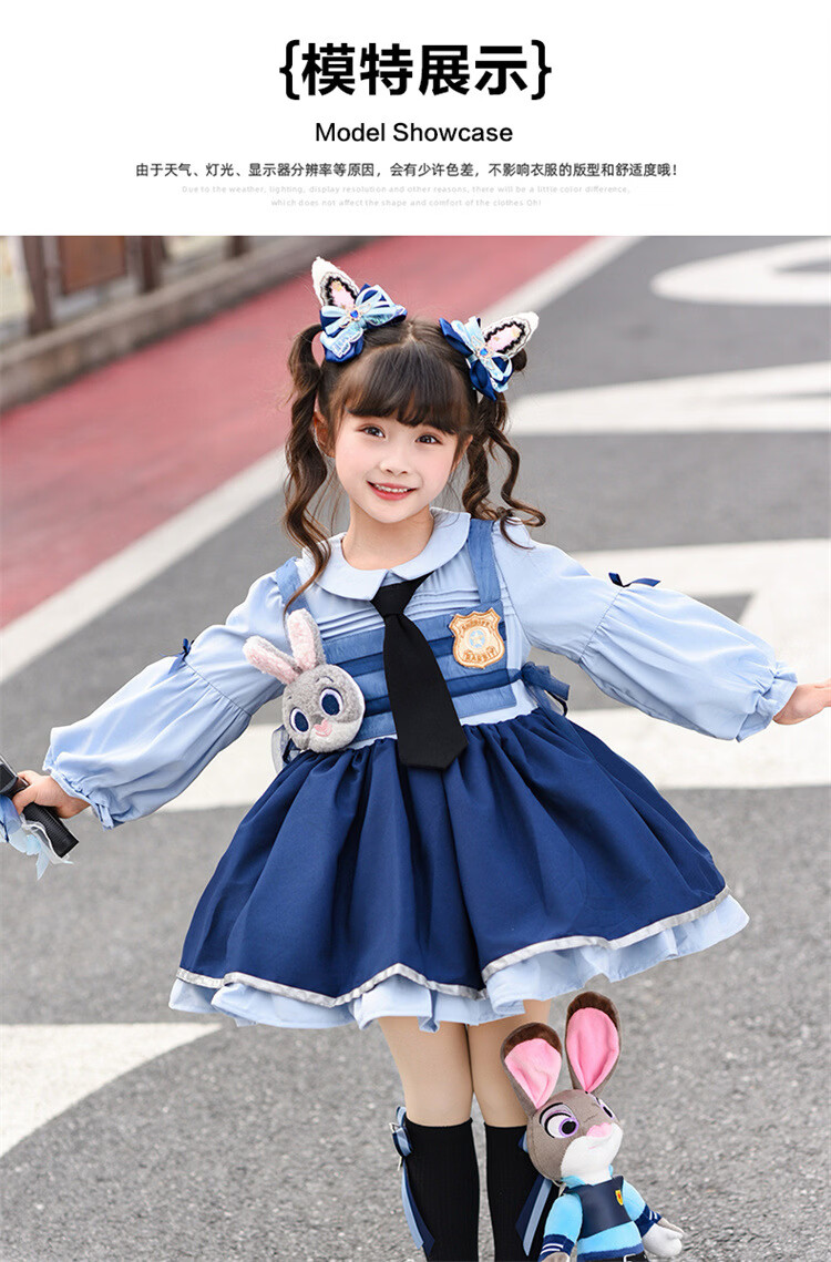 Ultraman Zootopia Rabbit Police Officer Clothes Judy Spring Clothes Children's Lolita 2025 New Spring and Autumn Girls Skirt Blue (Hair Clip) 130 cm
