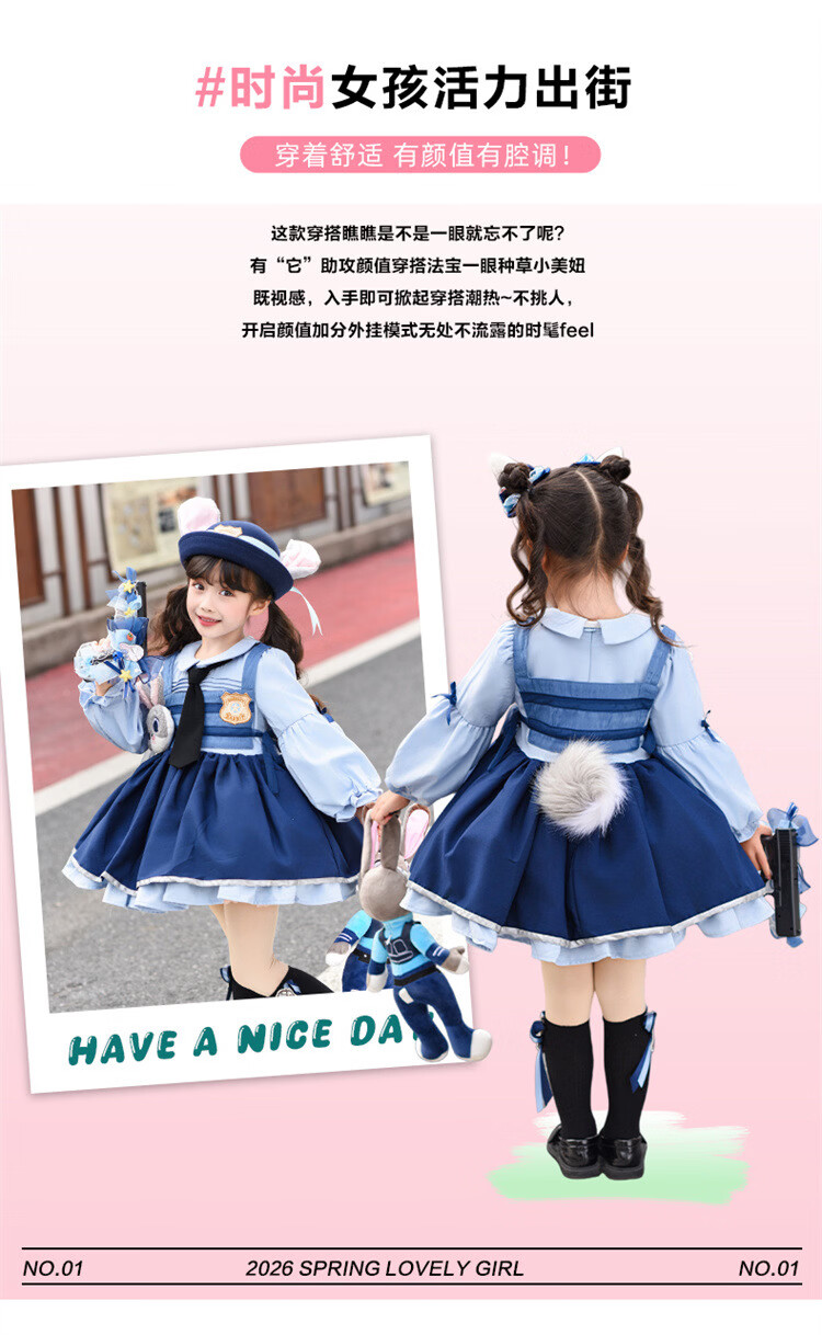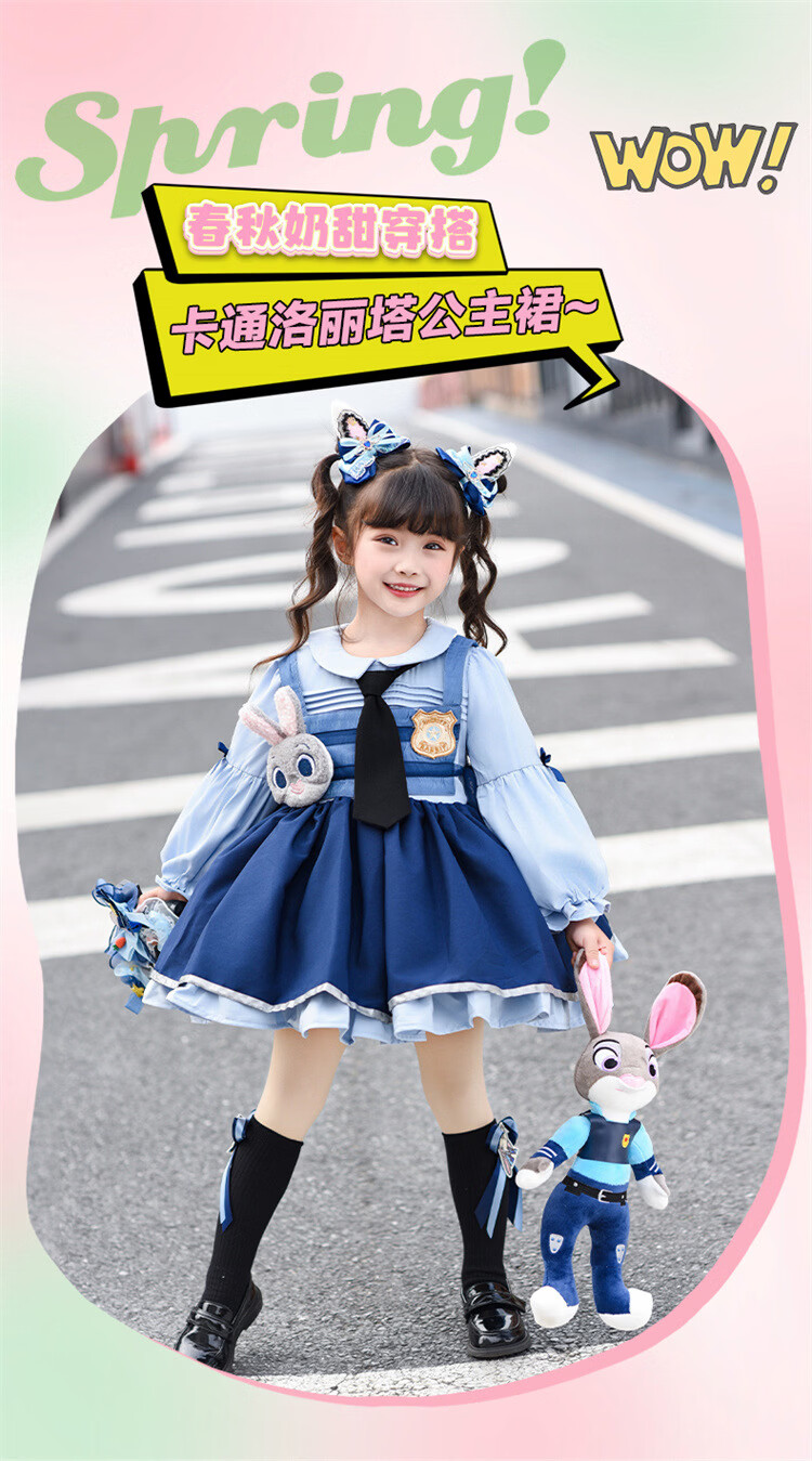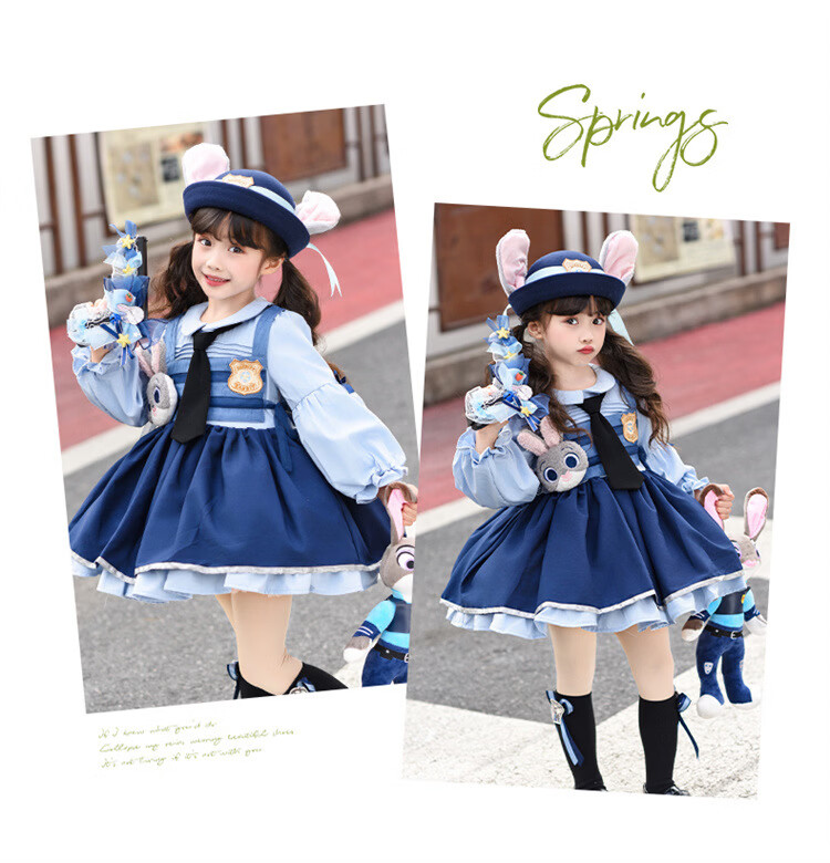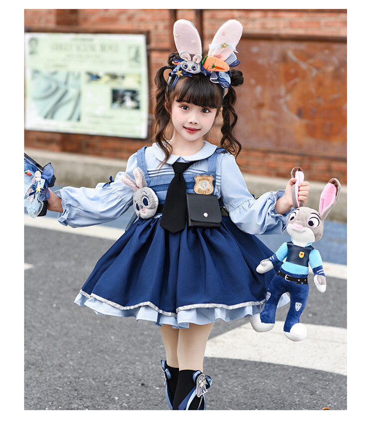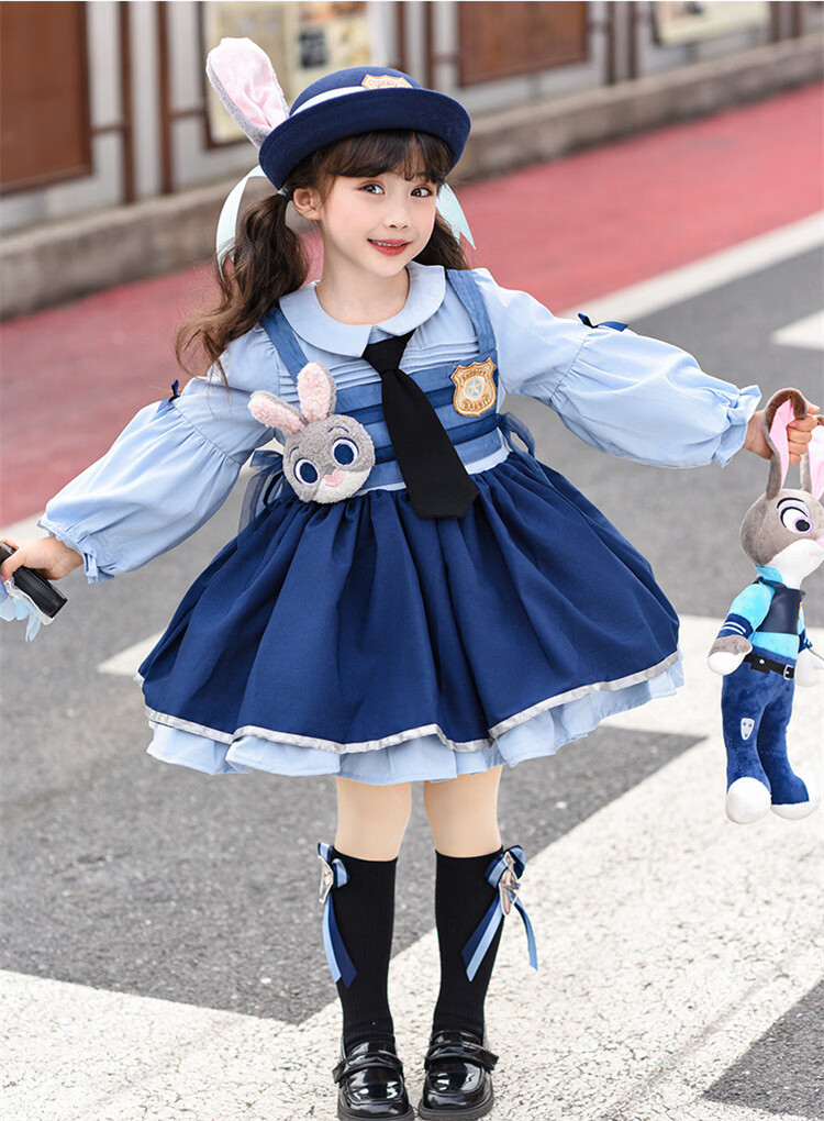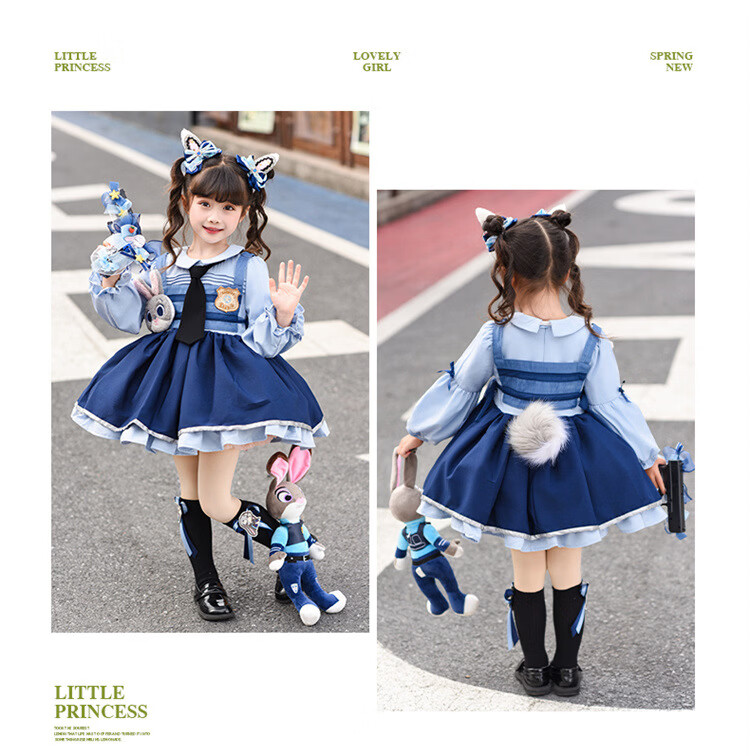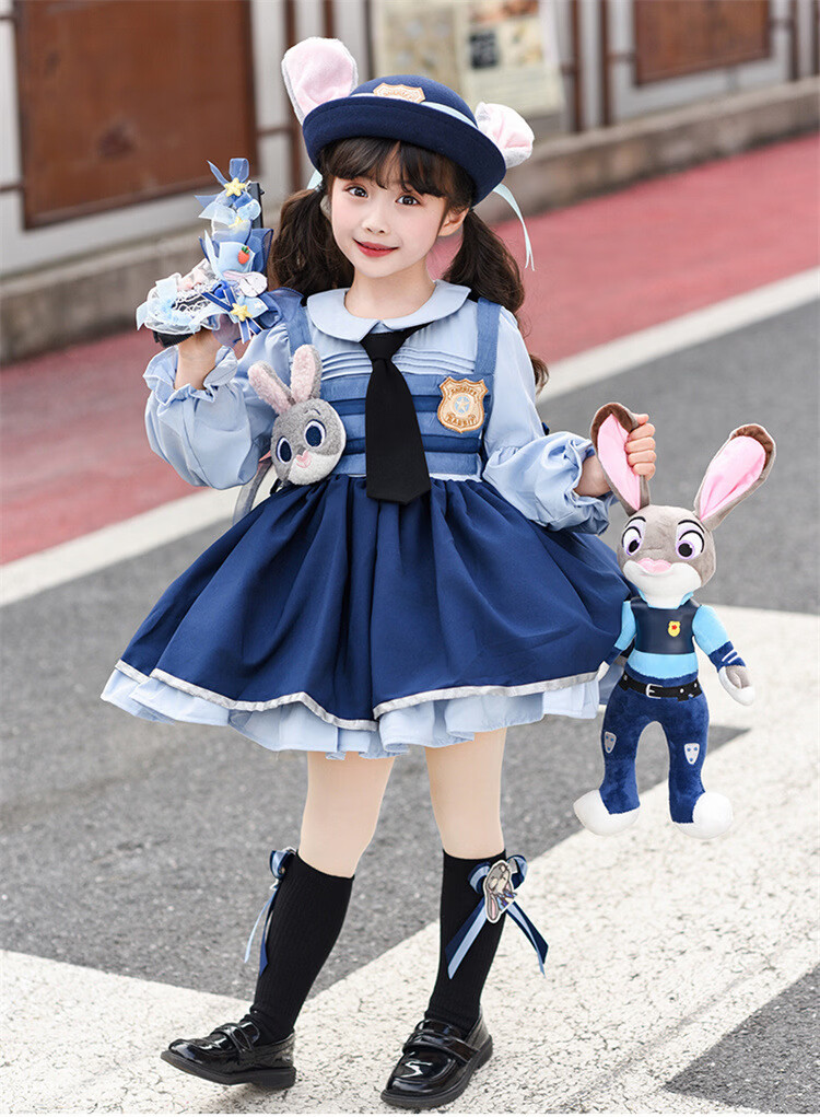 Ultraman Zootopia Rabbit Police Officer Clothes Judy Spring Clothes Children's Lolita 2025 New Spring and Autumn Girls Skirt Blue (Hair Clip) 130 cm