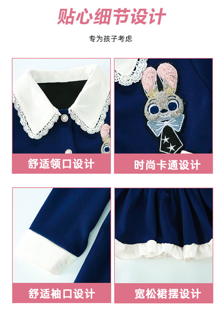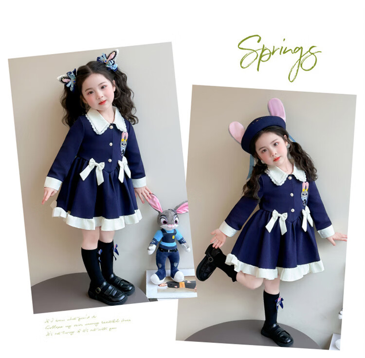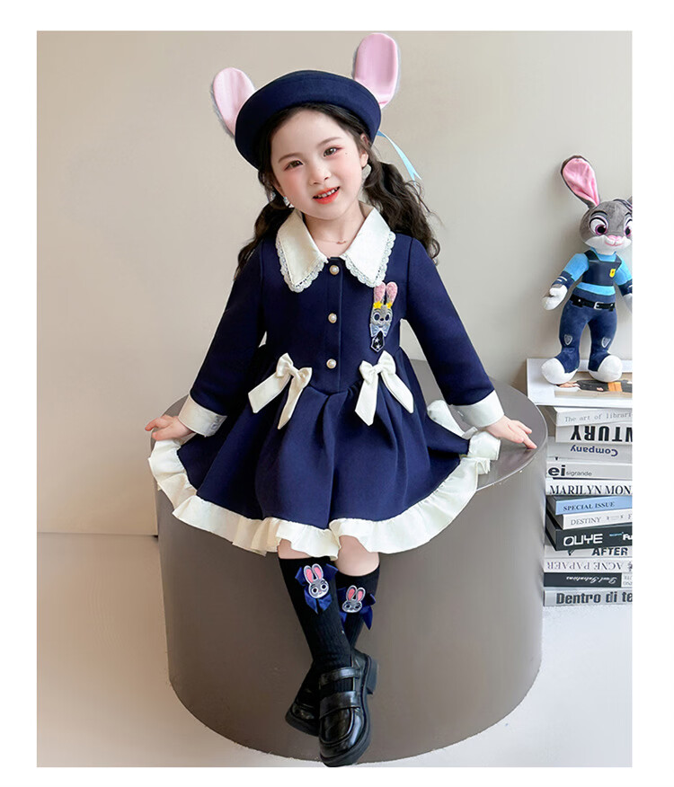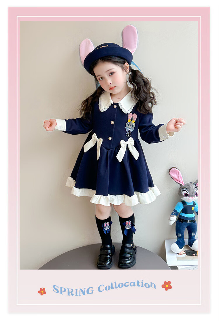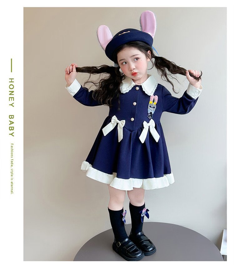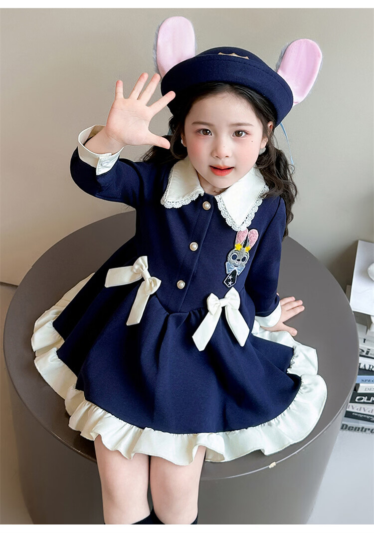 Ultraman Girls Dress Spring 2026 New Style Children's College Style Rabbit Police Officer Girls Spring and Autumn Long Sleeve Skirt Navy Blue (Single Skirt) 90 cm