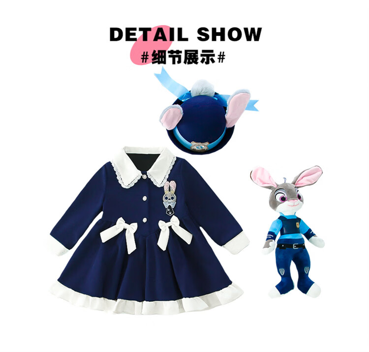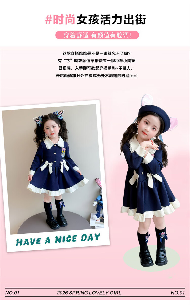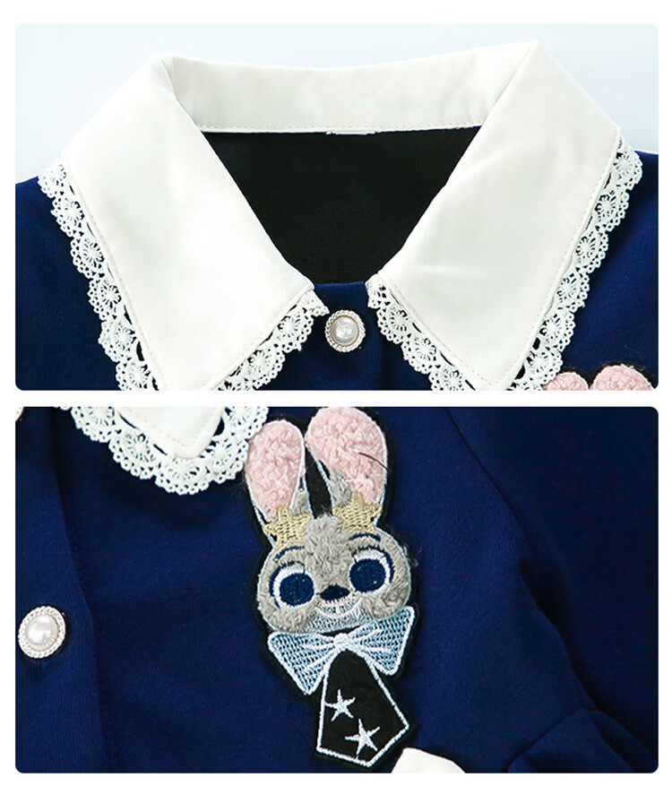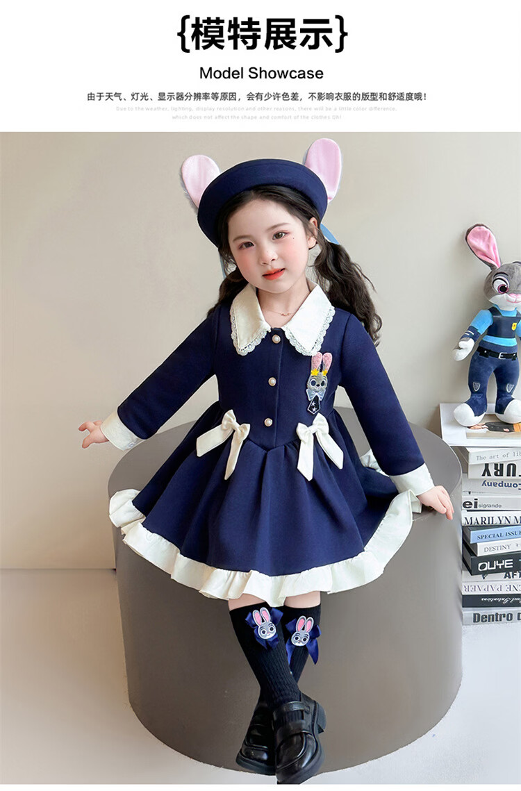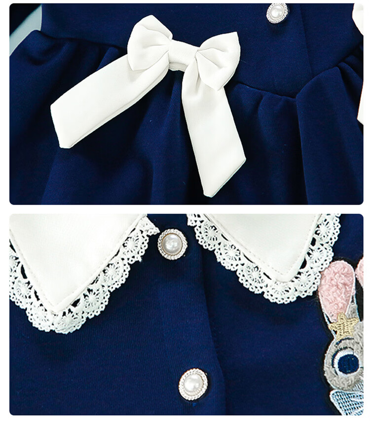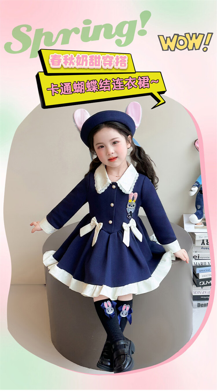 Ultraman Girls Dress Spring 2026 New Style Children's College Style Rabbit Police Officer Girls Spring and Autumn Long Sleeve Skirt Navy Blue (Single Skirt) 90 cm