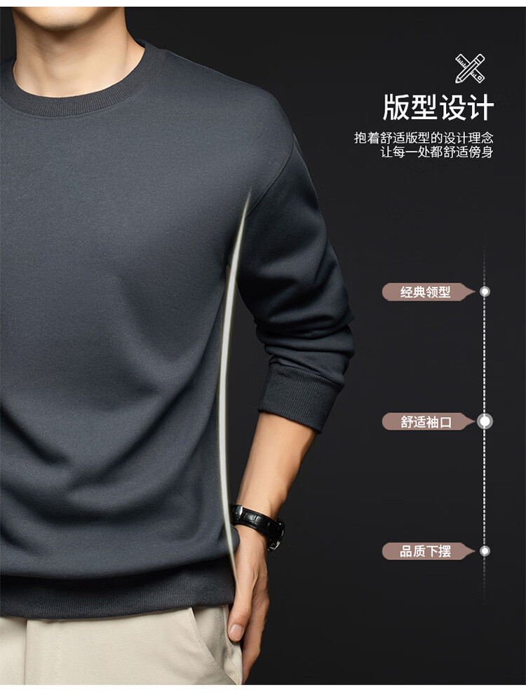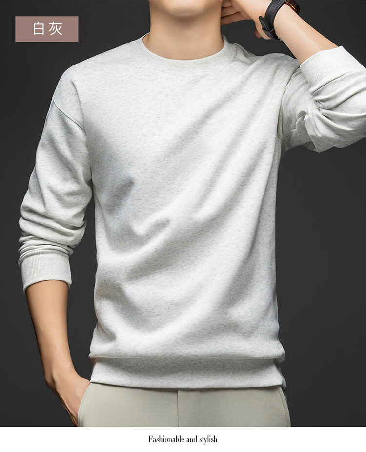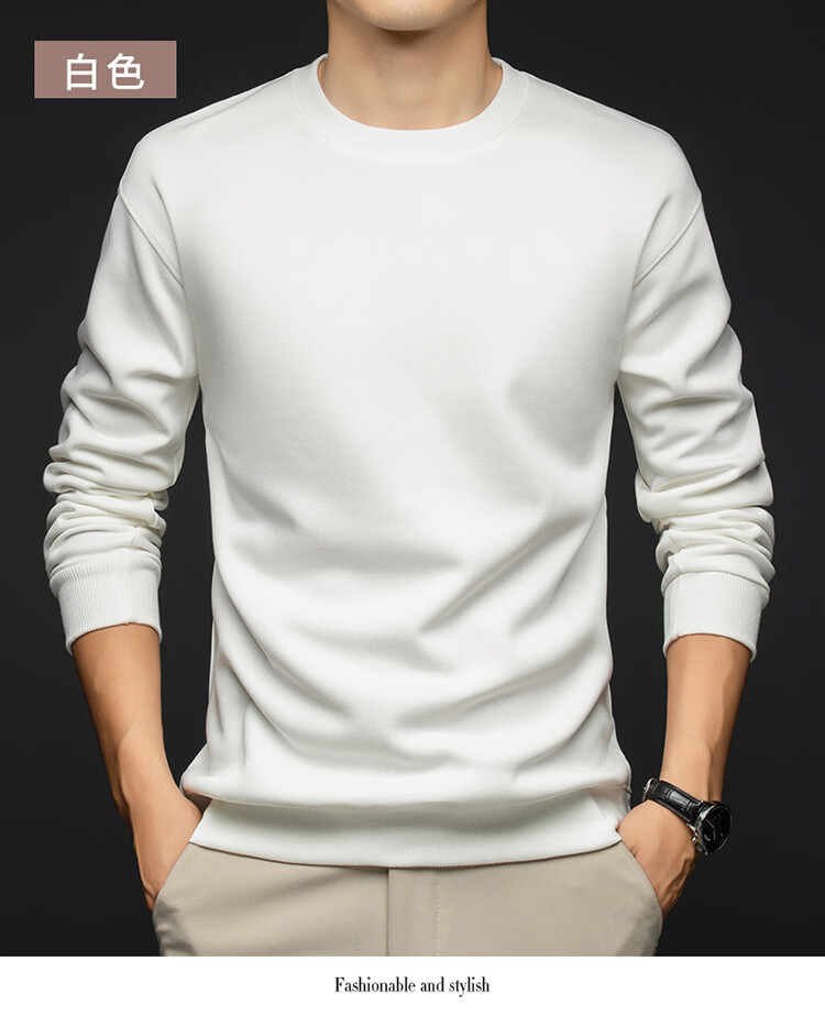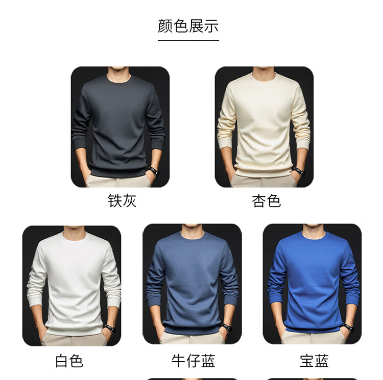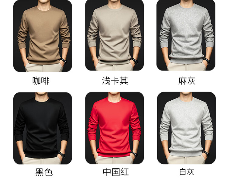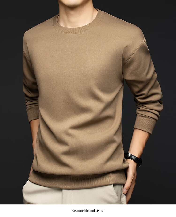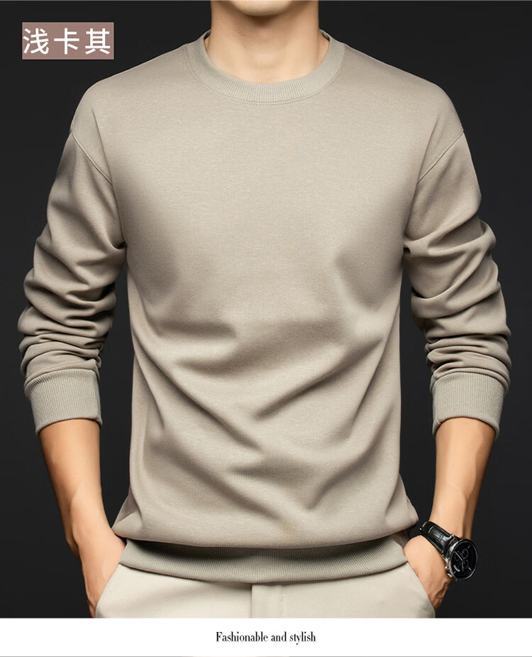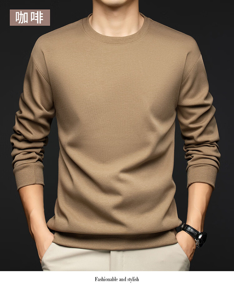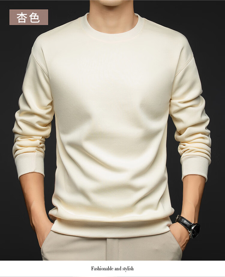 NASAOVER high-end light luxury men's cotton long-sleeved T-shirt thick 2026 spring and autumn new round neck sweatshirt loose large size bottoming shirt for men apricot (gift box) XL (recommended 130-150Jin Jin equals 0.5 kg)