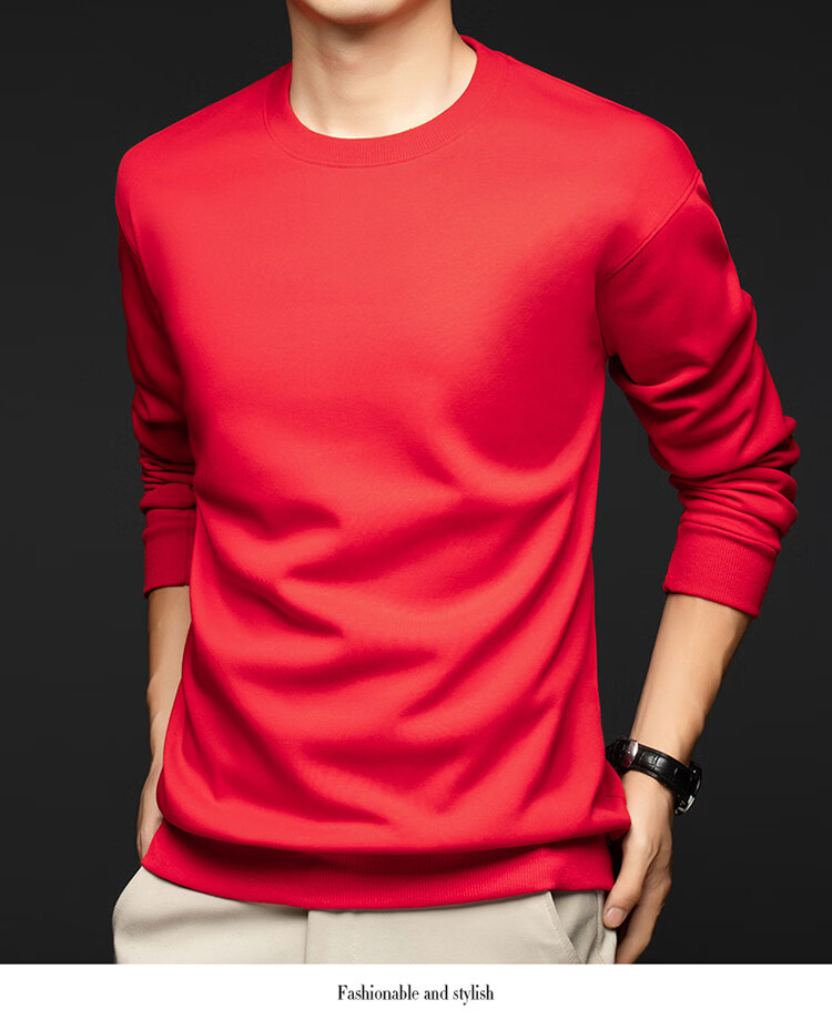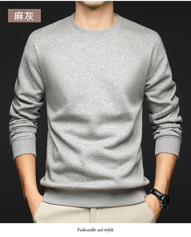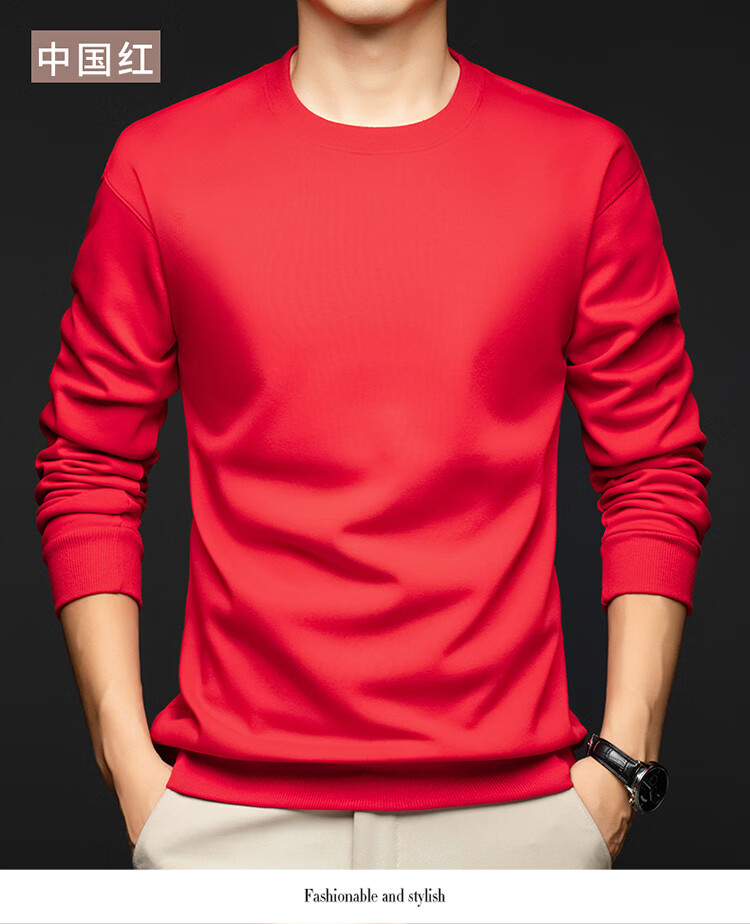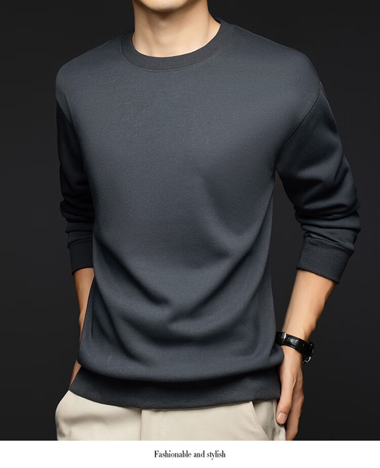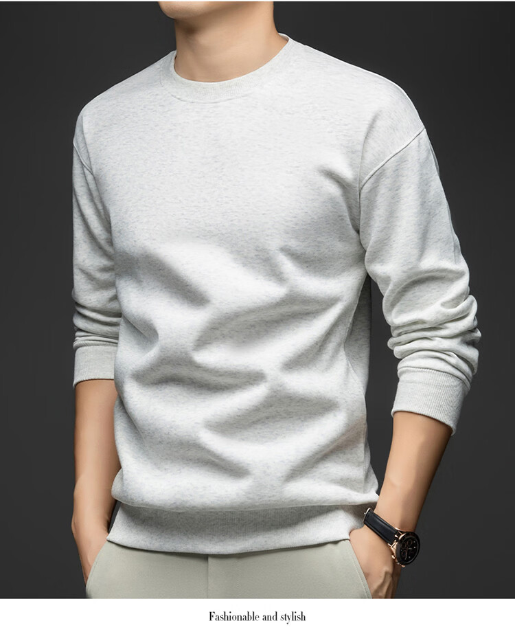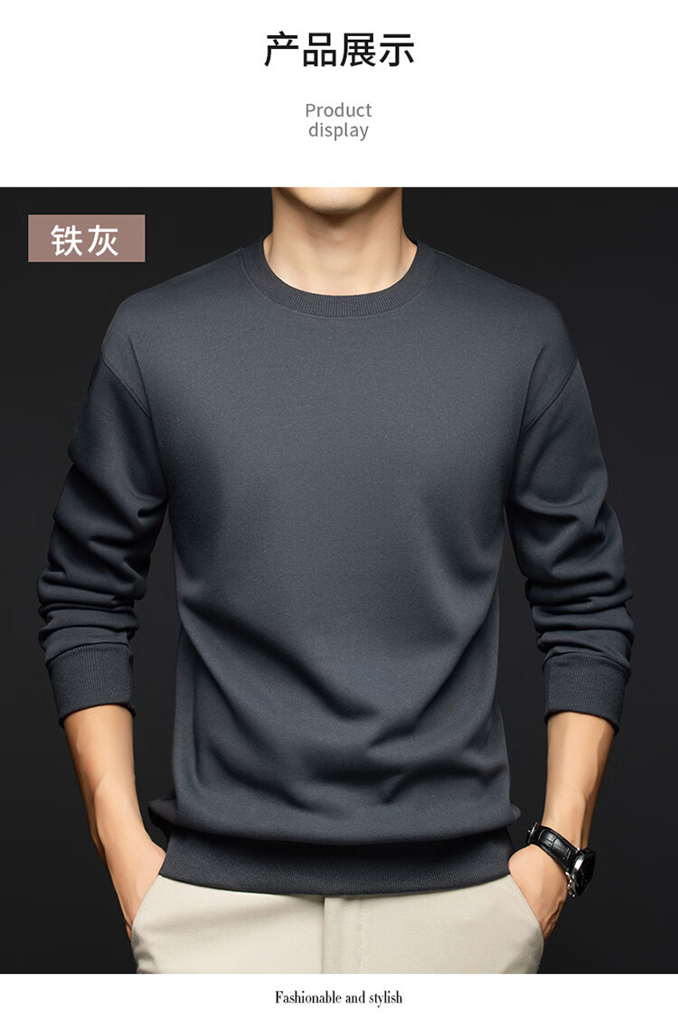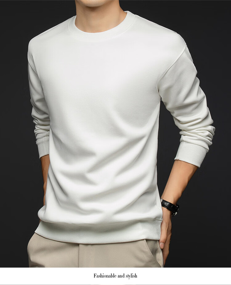 NASAOVER high-end light luxury men's cotton long-sleeved T-shirt thick 2026 spring and autumn new round neck sweatshirt loose large size bottoming shirt for men apricot (gift box) XL (recommended 130-150Jin Jin equals 0.5 kg)
