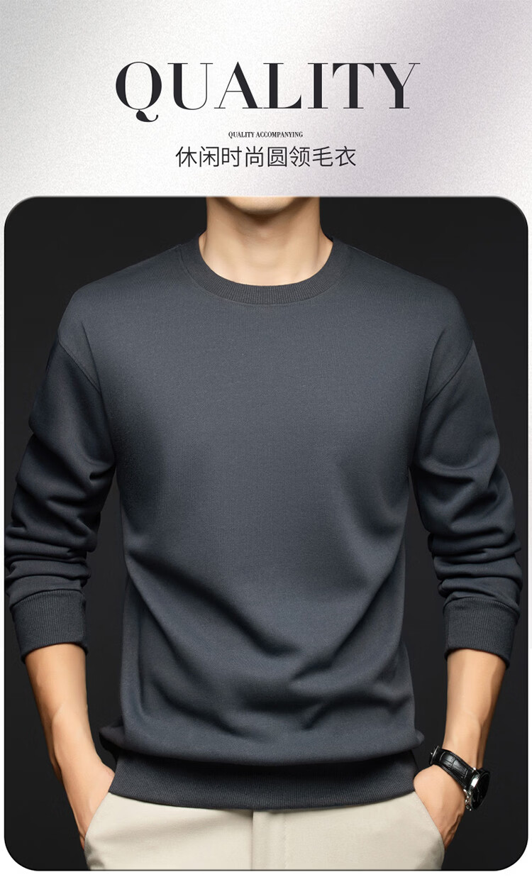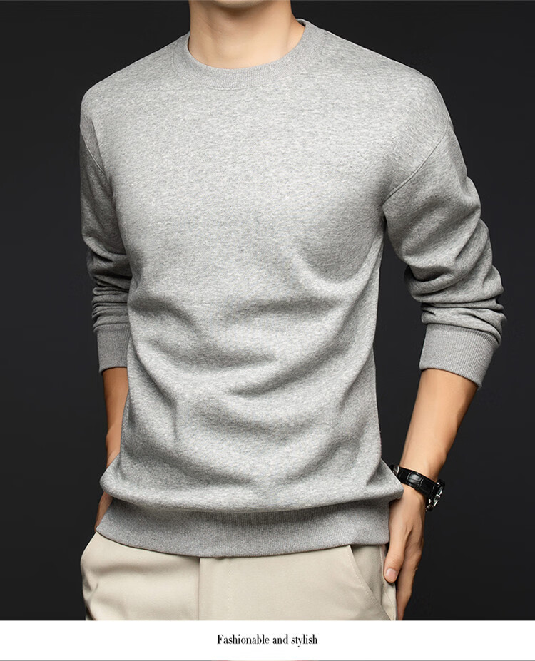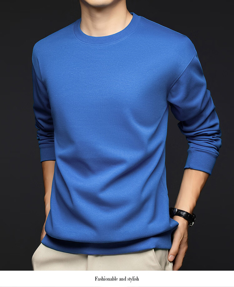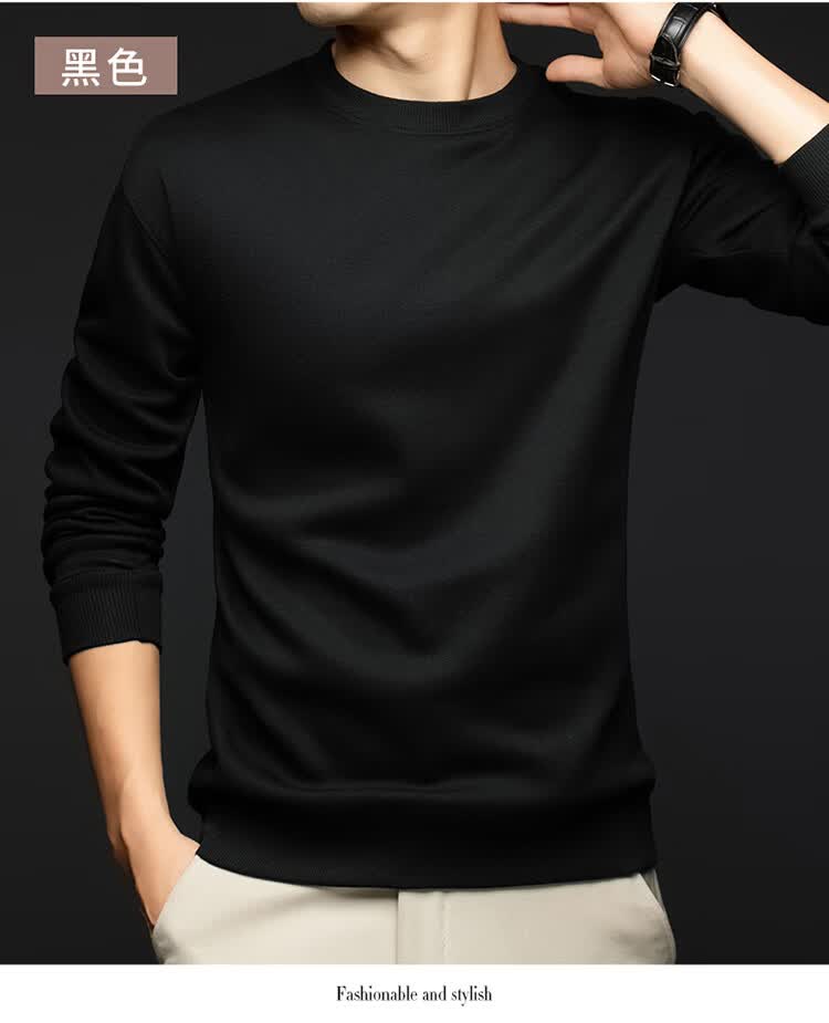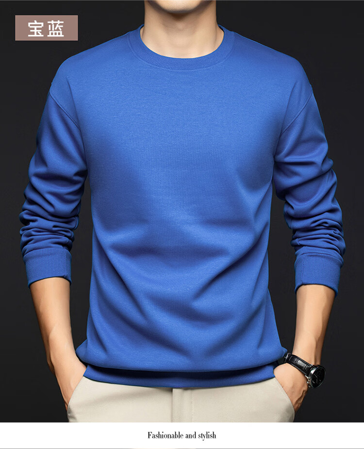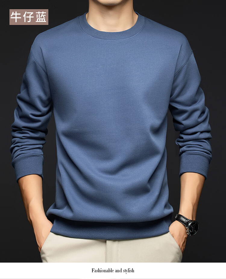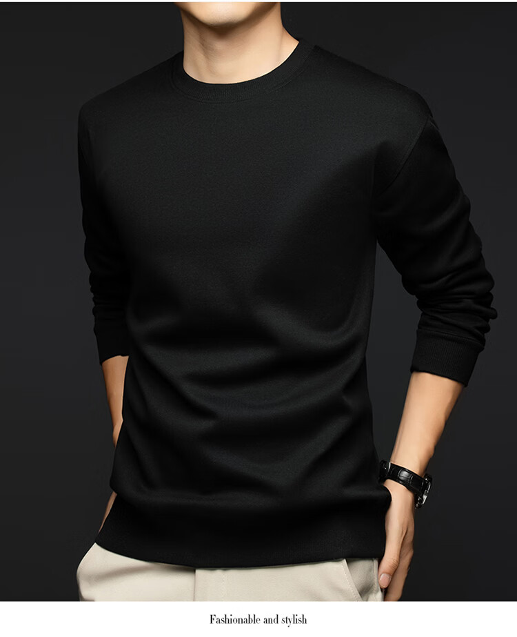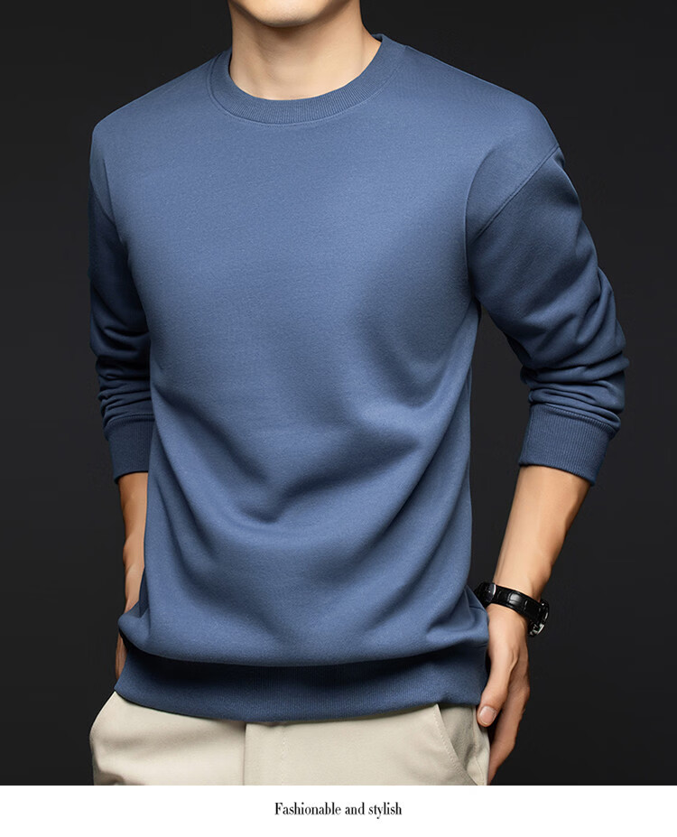 NASAOVER high-end light luxury men's cotton long-sleeved T-shirt thick 2026 spring and autumn new round neck sweatshirt loose large size bottoming shirt for men apricot (gift box) XL (recommended 130-150Jin Jin equals 0.5 kg)