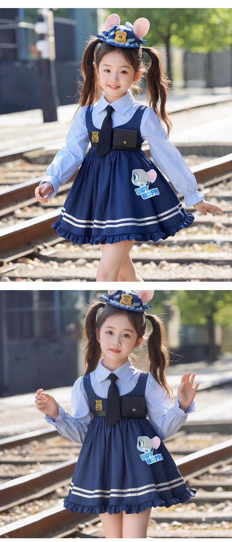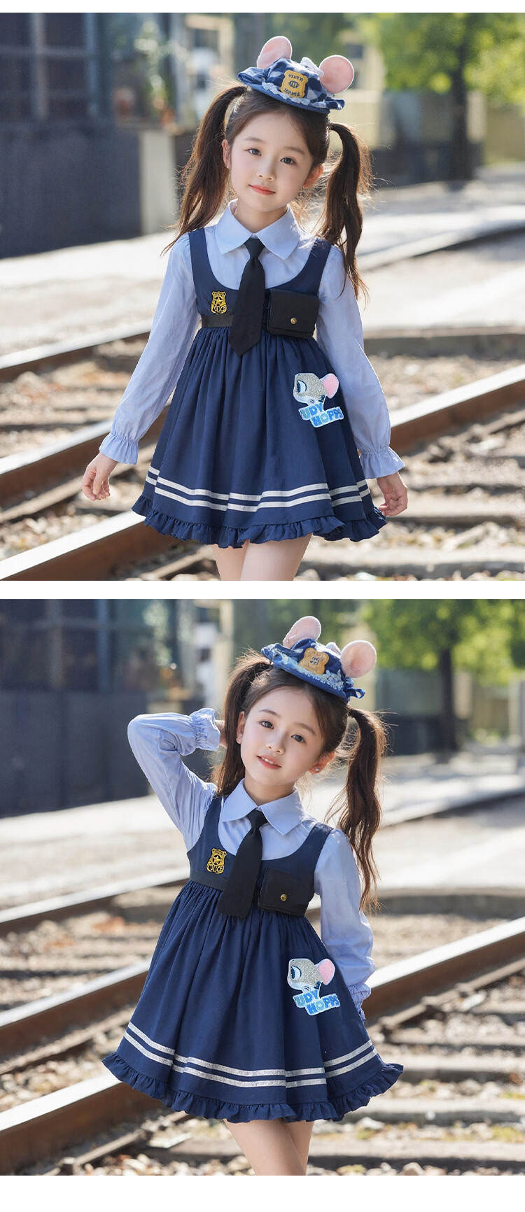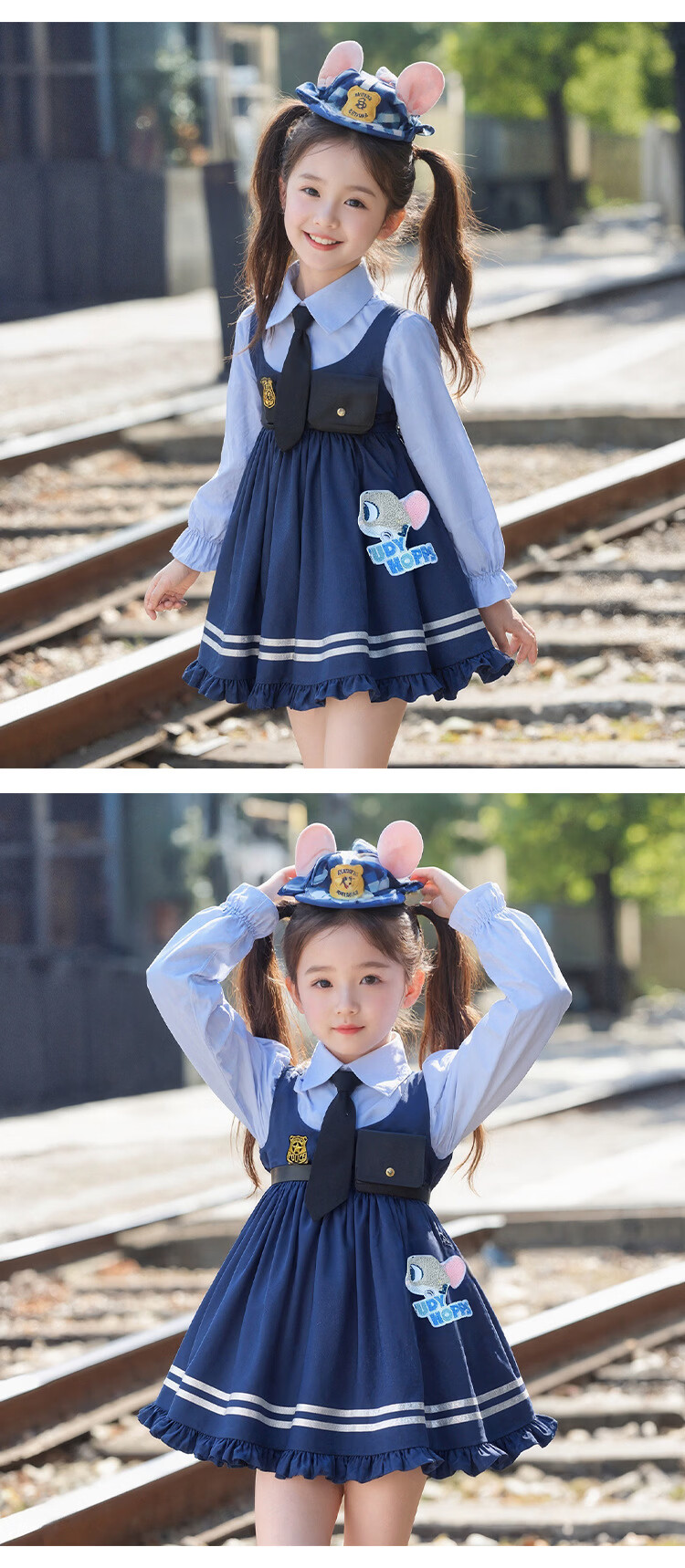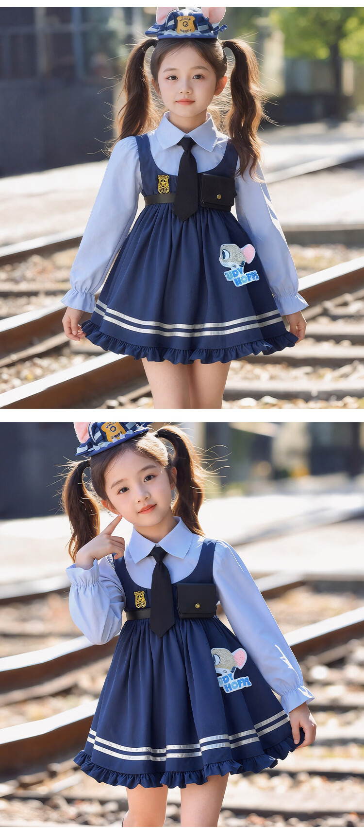 Ultraman Girls Zootopia Rabbit Police Officer Lolita Princess Dress 2026 Spring and Autumn New Girl Judy Dress Blue (Free Tie) 90 cm