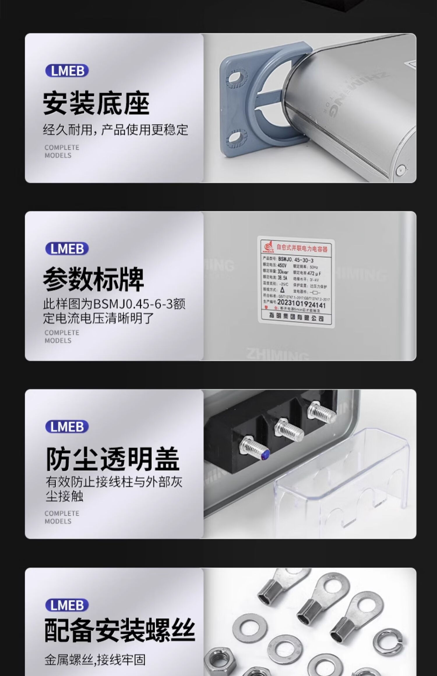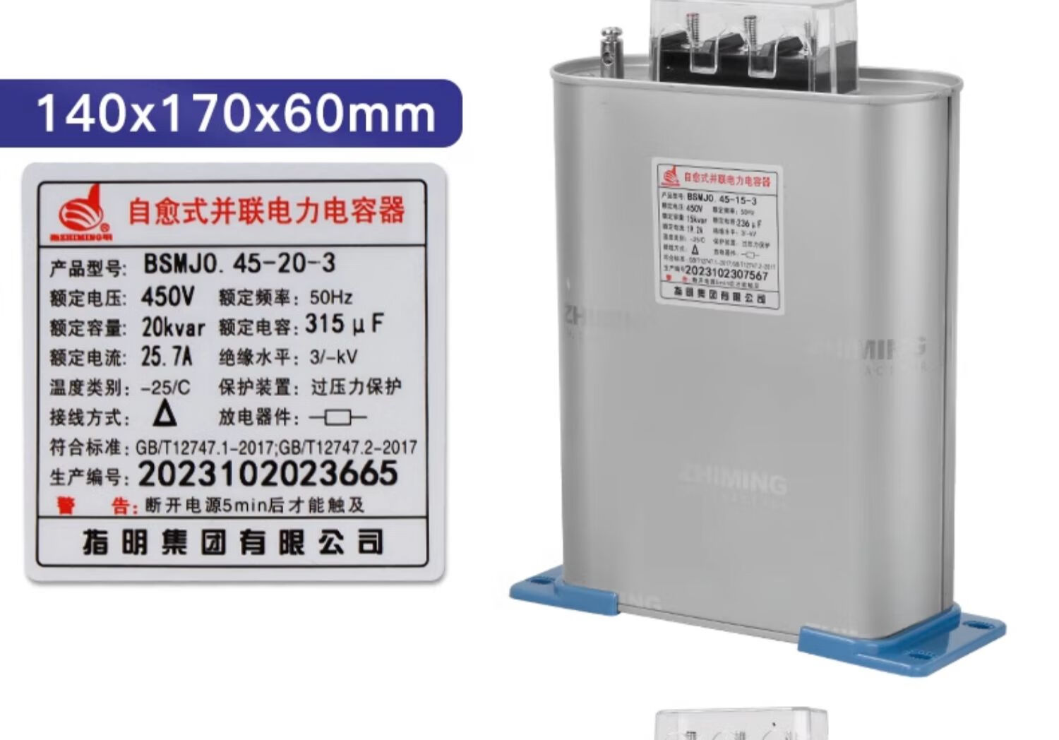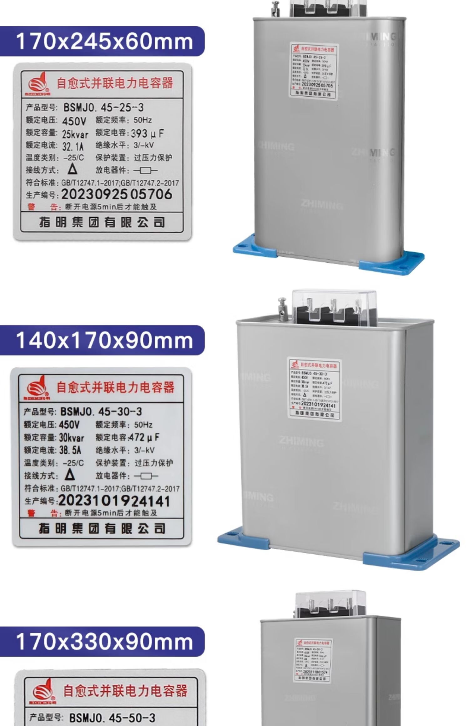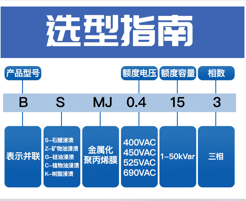 Specified self-healing low-voltage shunt capacitor BSMJ0.45 withstand voltage 450v three-phase power reactive power compensator specified BSMJ0.45-16-3