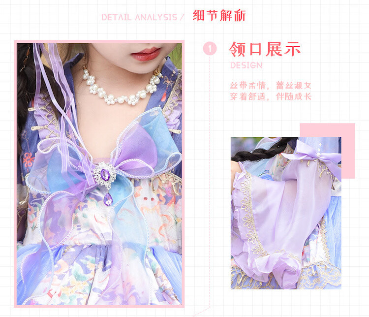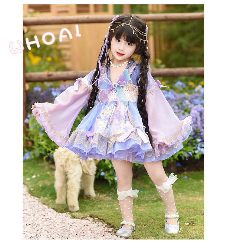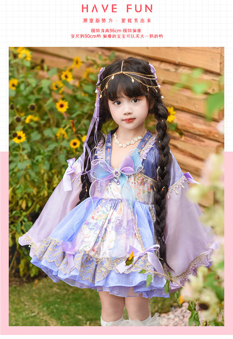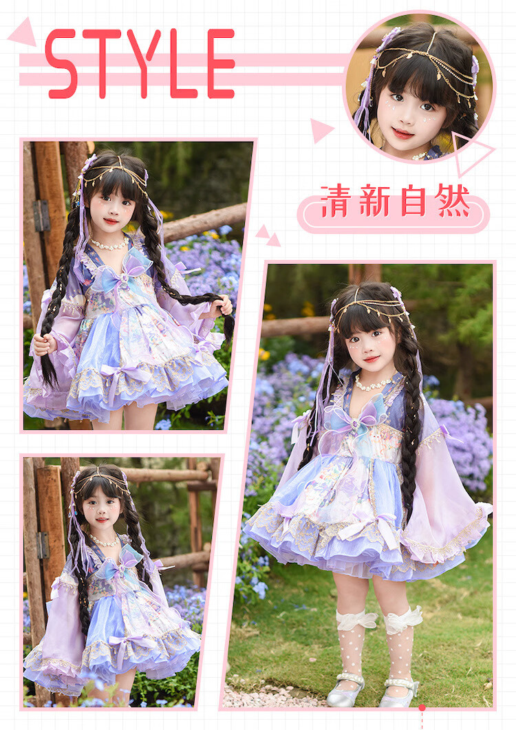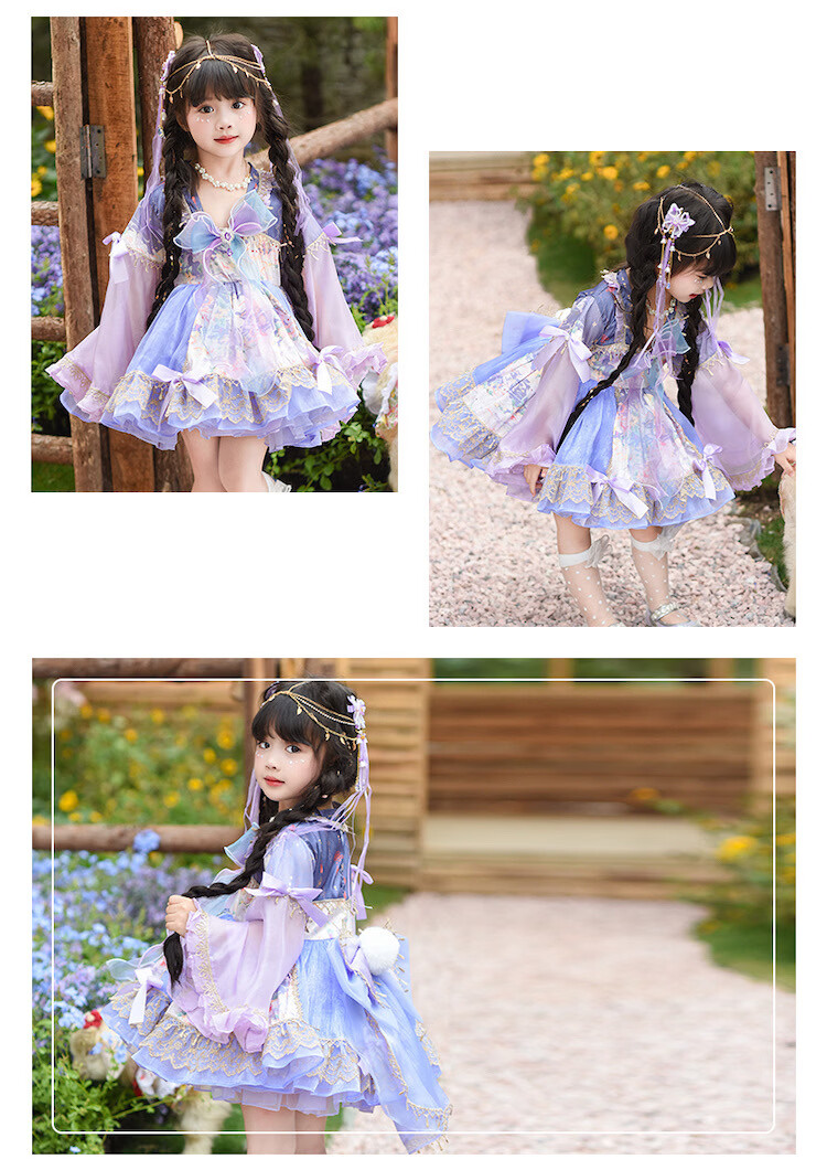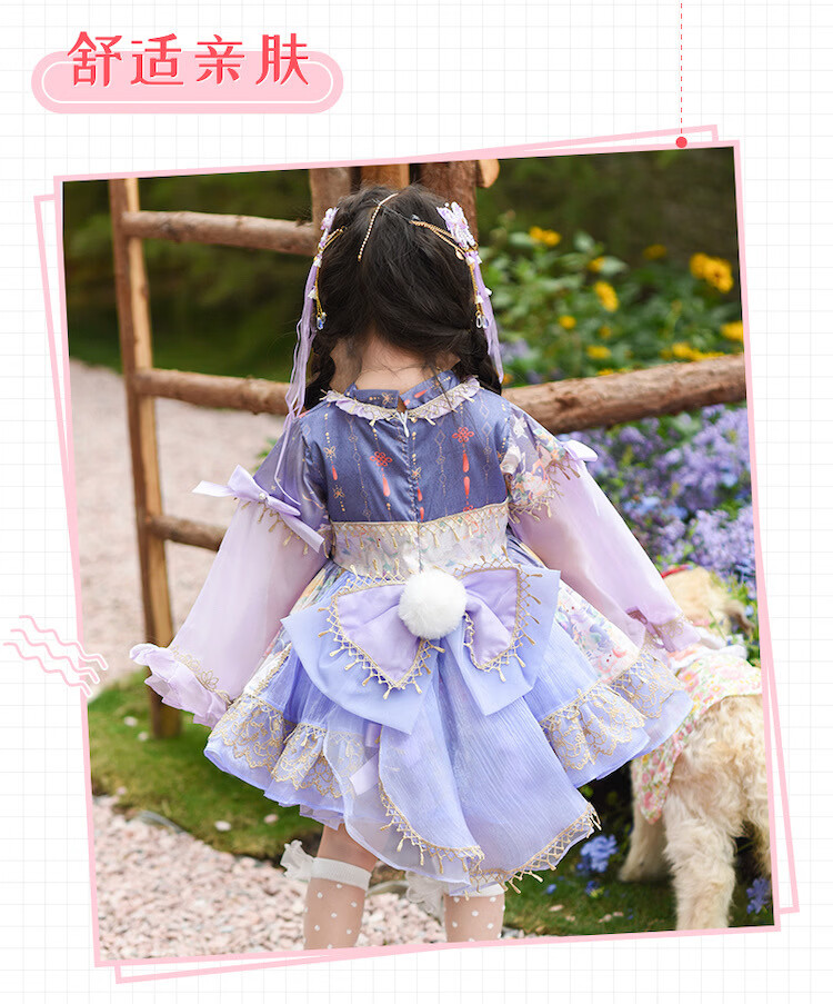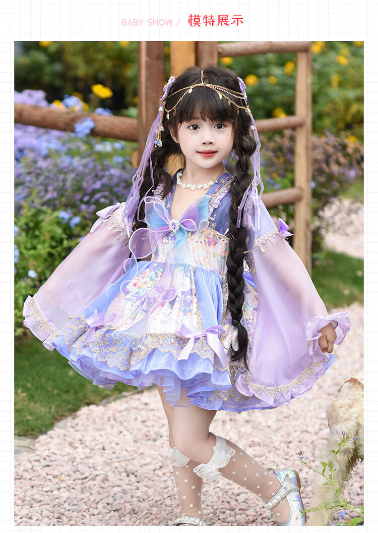 Ultraman Lolita Girls Princess Dress Spring and Autumn Children's Lolita Puff Skirt Little Girl New Chinese Dress Purple (skirt comes with tail) 100 cm