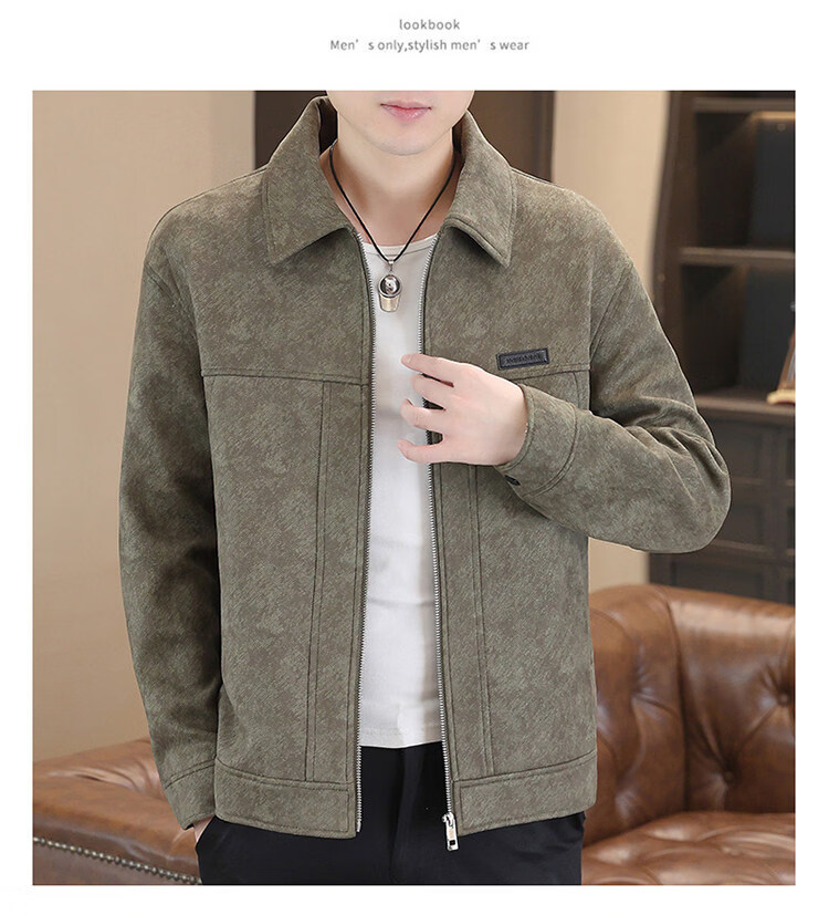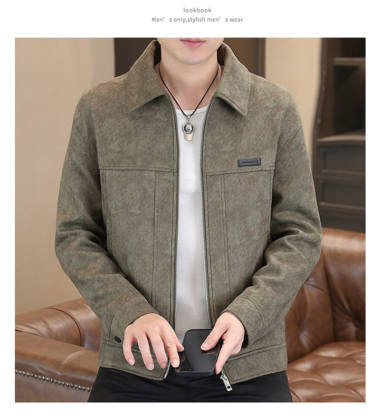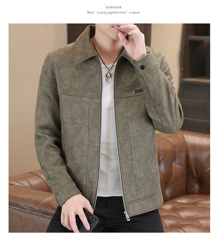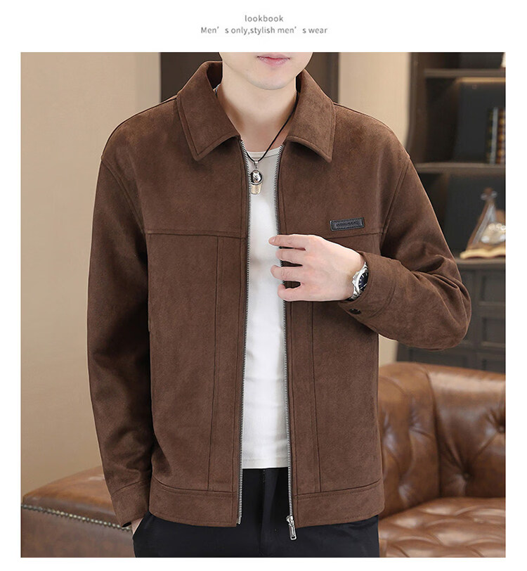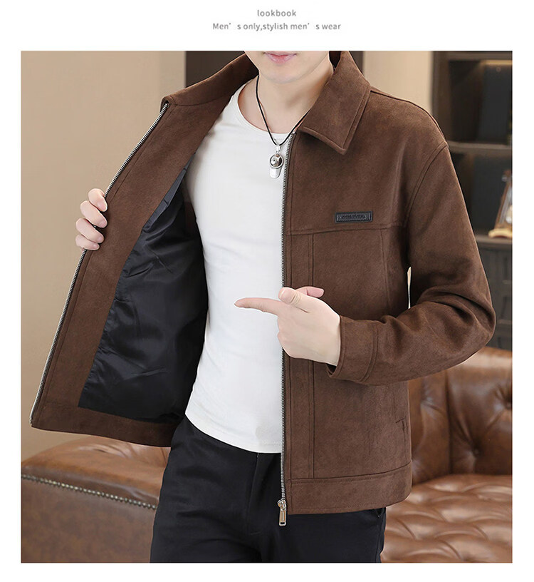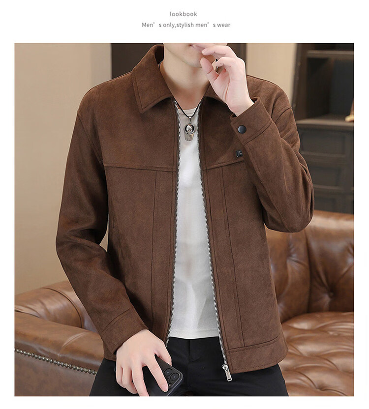 ROMON autumn and winter jacket men's casual simple lapel jacket trendy and handsome men's short windbreaker new product caramel color 2669 XL