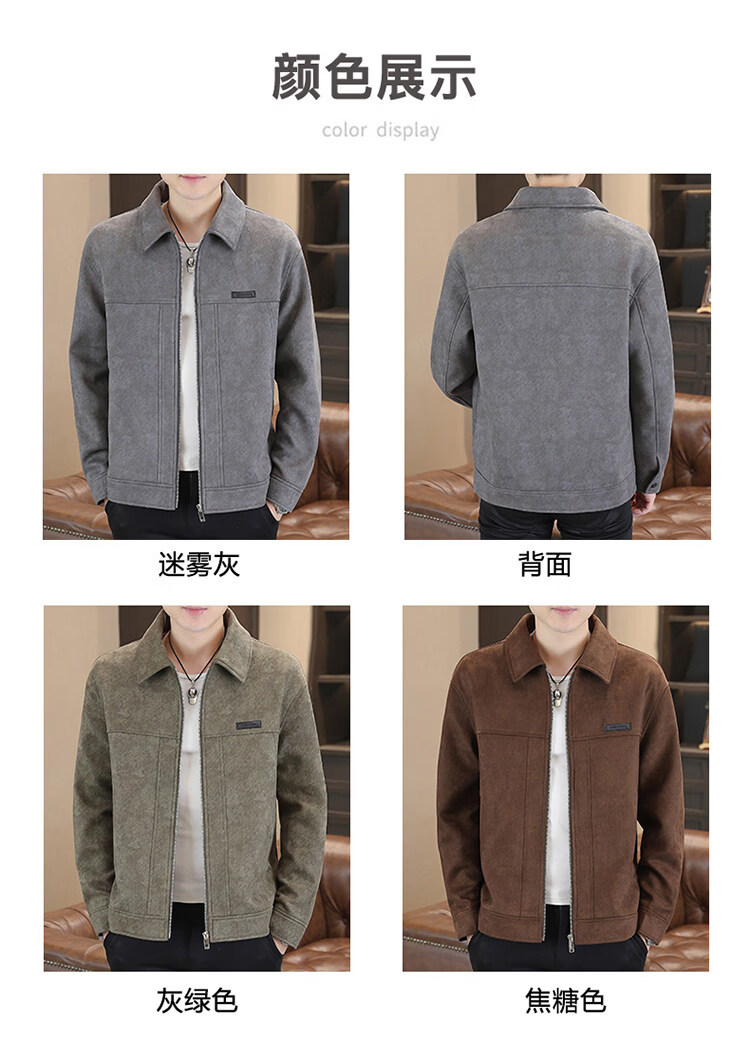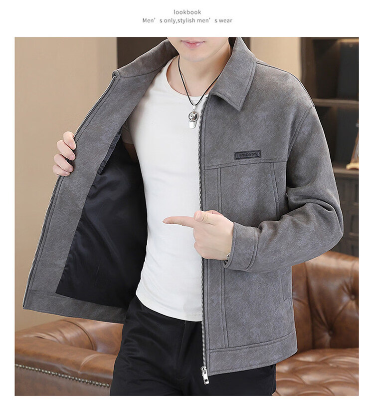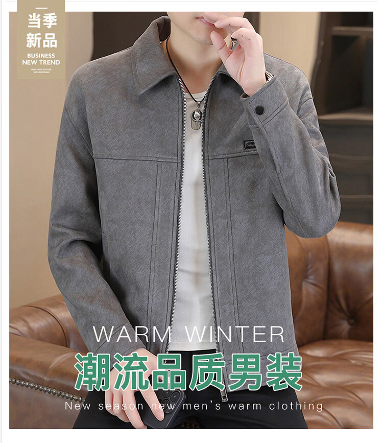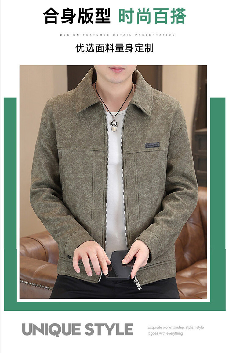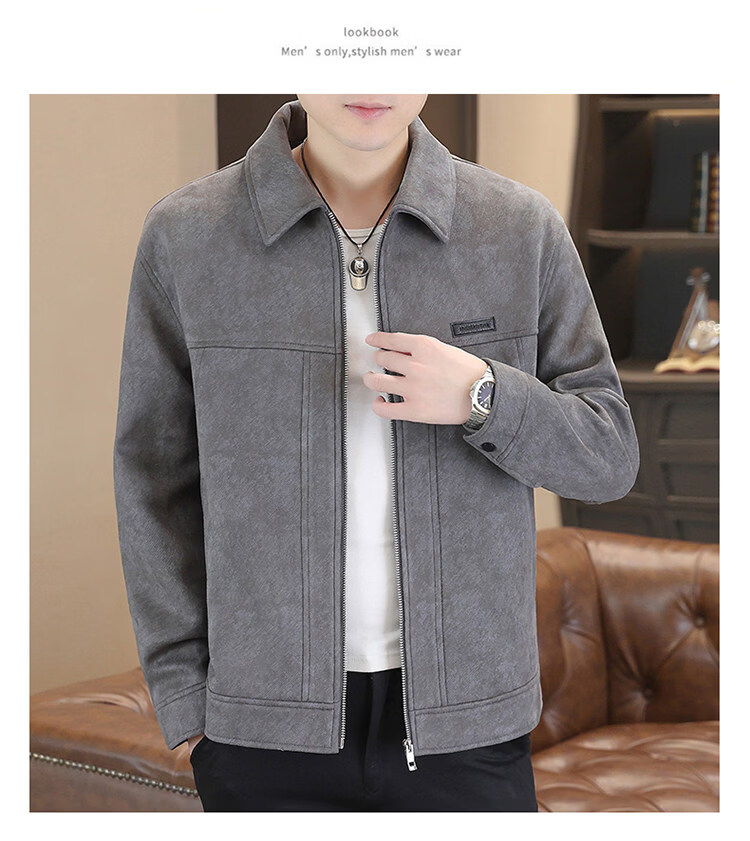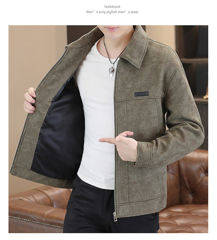 ROMON autumn and winter jacket men's casual simple lapel jacket trendy and handsome men's short windbreaker new product caramel color 2669 XL