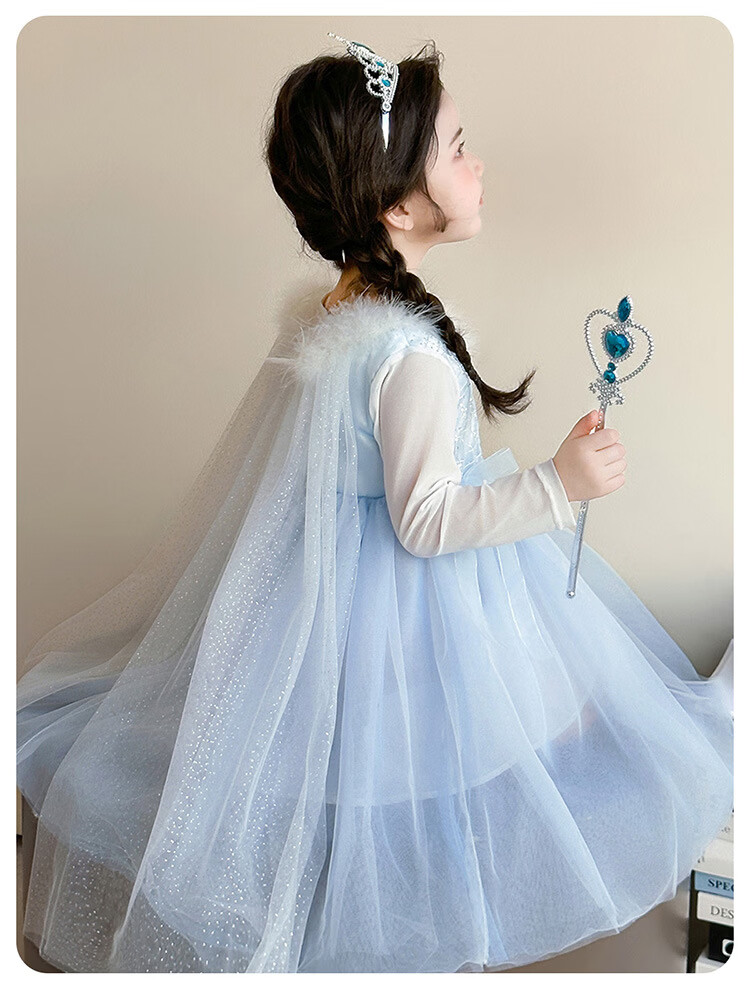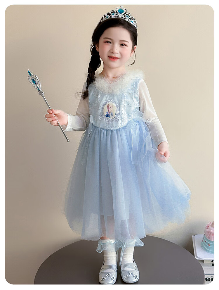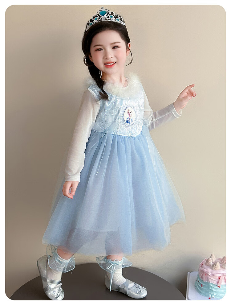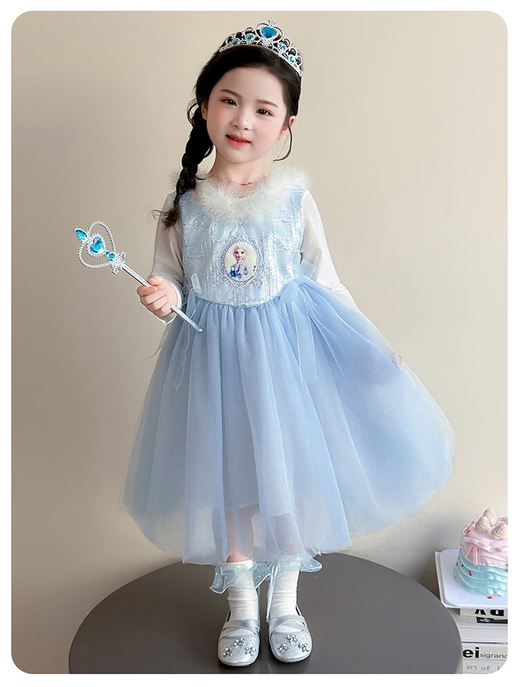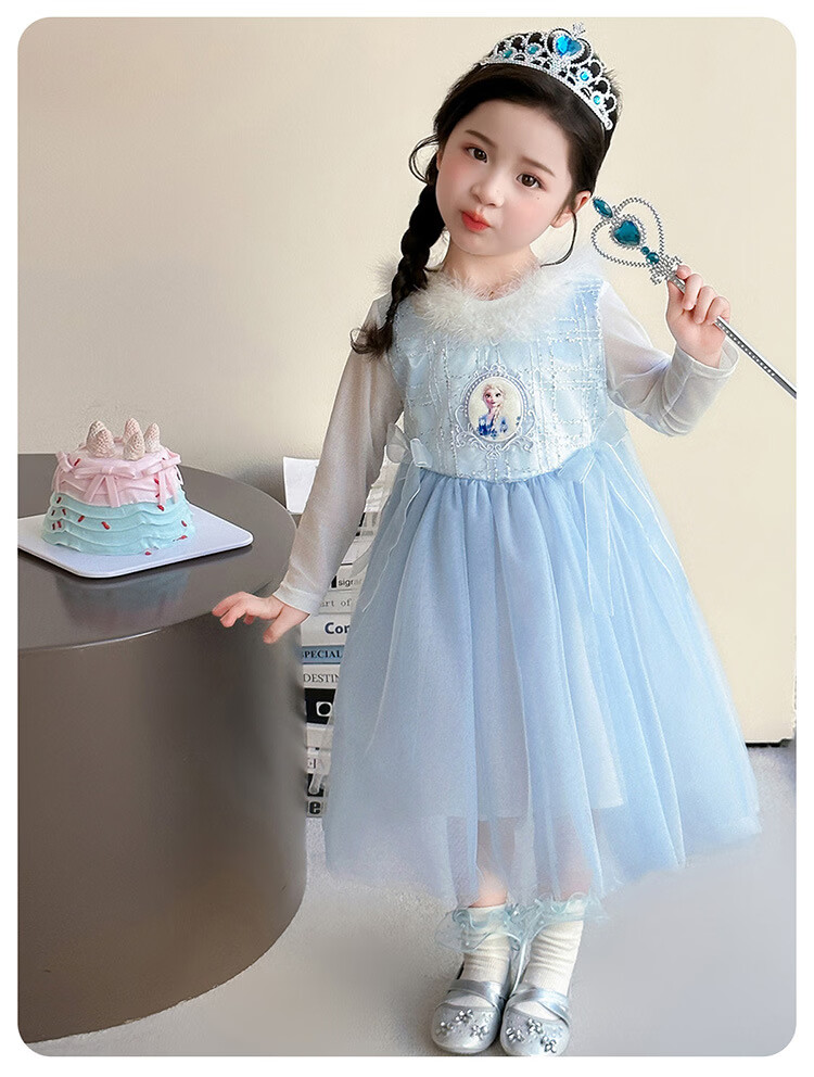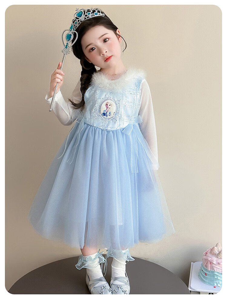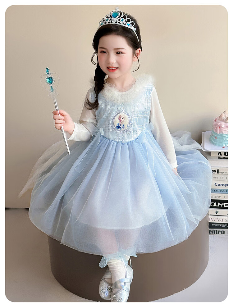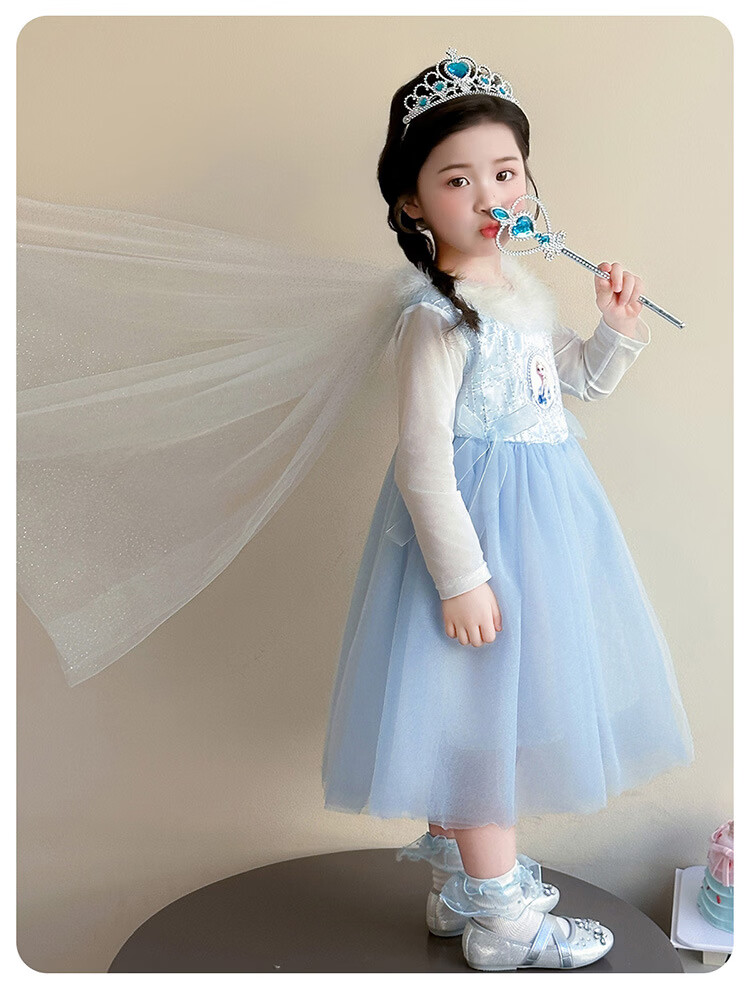 Ultraman Girls Dress Spring and Autumn New 2025 Western Style Baby Girl Mesh Skirt Birthday Dress Frozen Princess Dress Blue (Skirt + Crown Magic Wand 90 cm