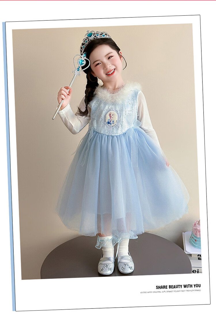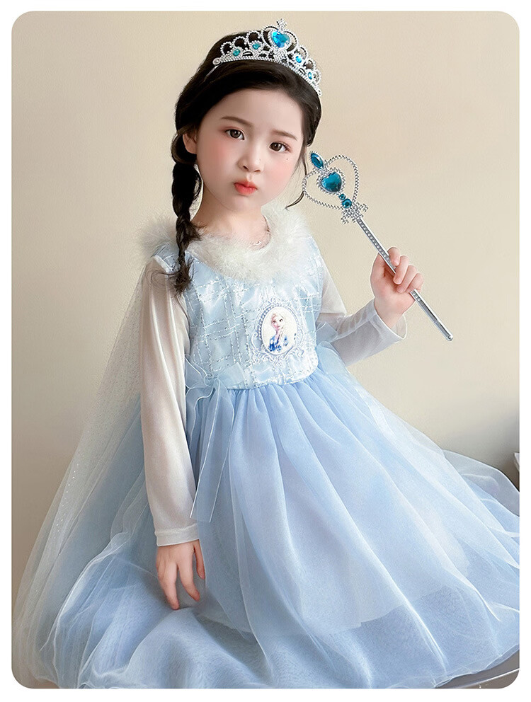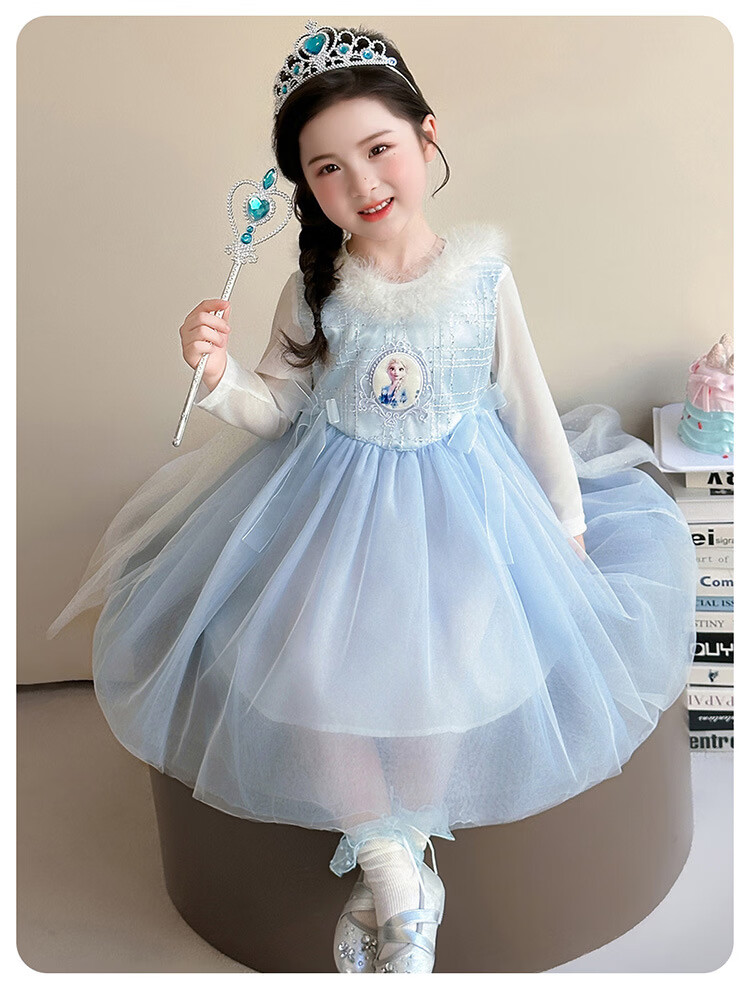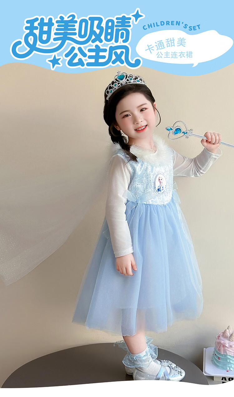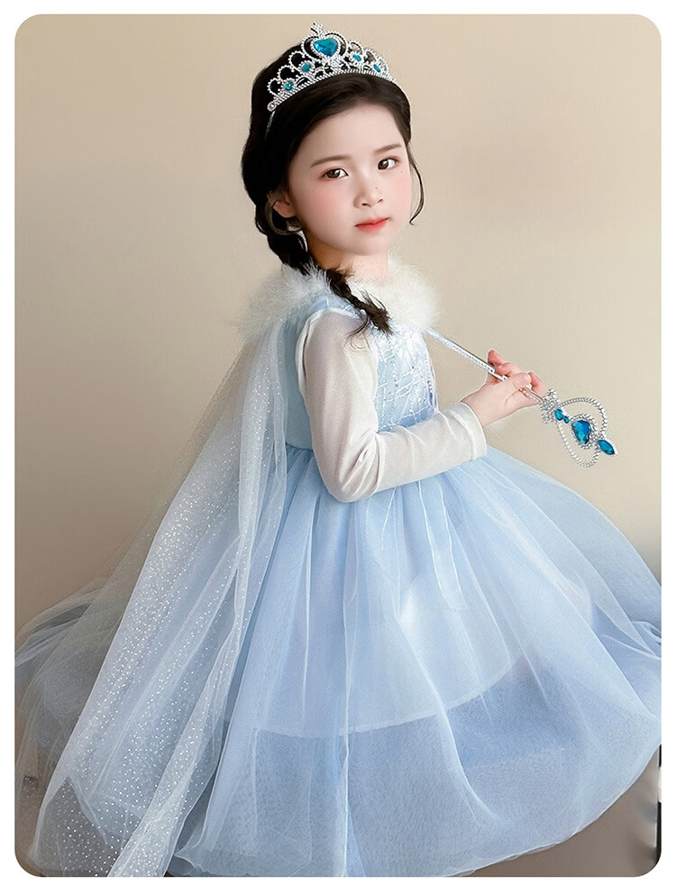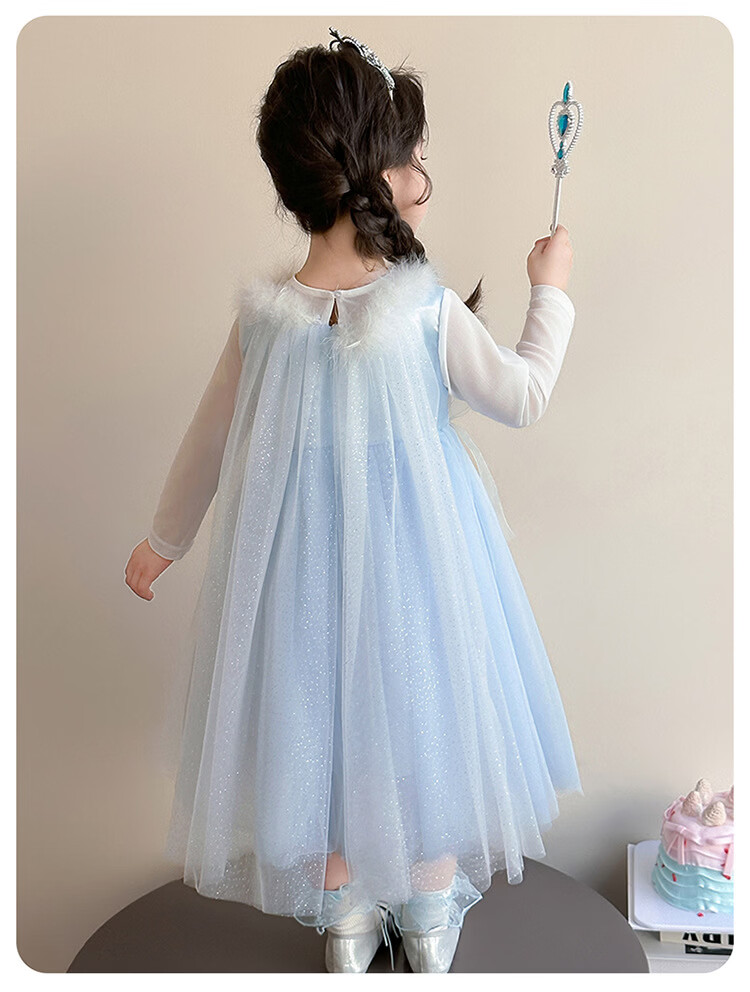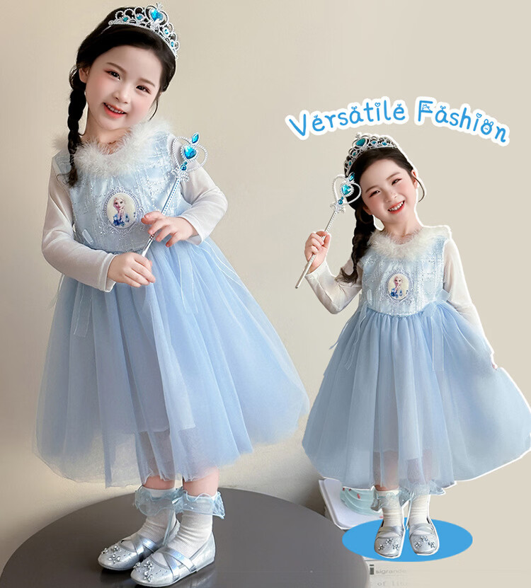 Ultraman Girls Dress Spring and Autumn New 2025 Western Style Baby Girl Mesh Skirt Birthday Dress Frozen Princess Dress Blue (Skirt + Crown Magic Wand 90 cm