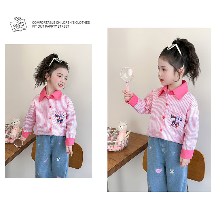Ultraman Girls Spring Casual Shirt 2026 New Little Girl Korean Top Spring and Autumn Baby Fashionable Jacket Pink 90 cm