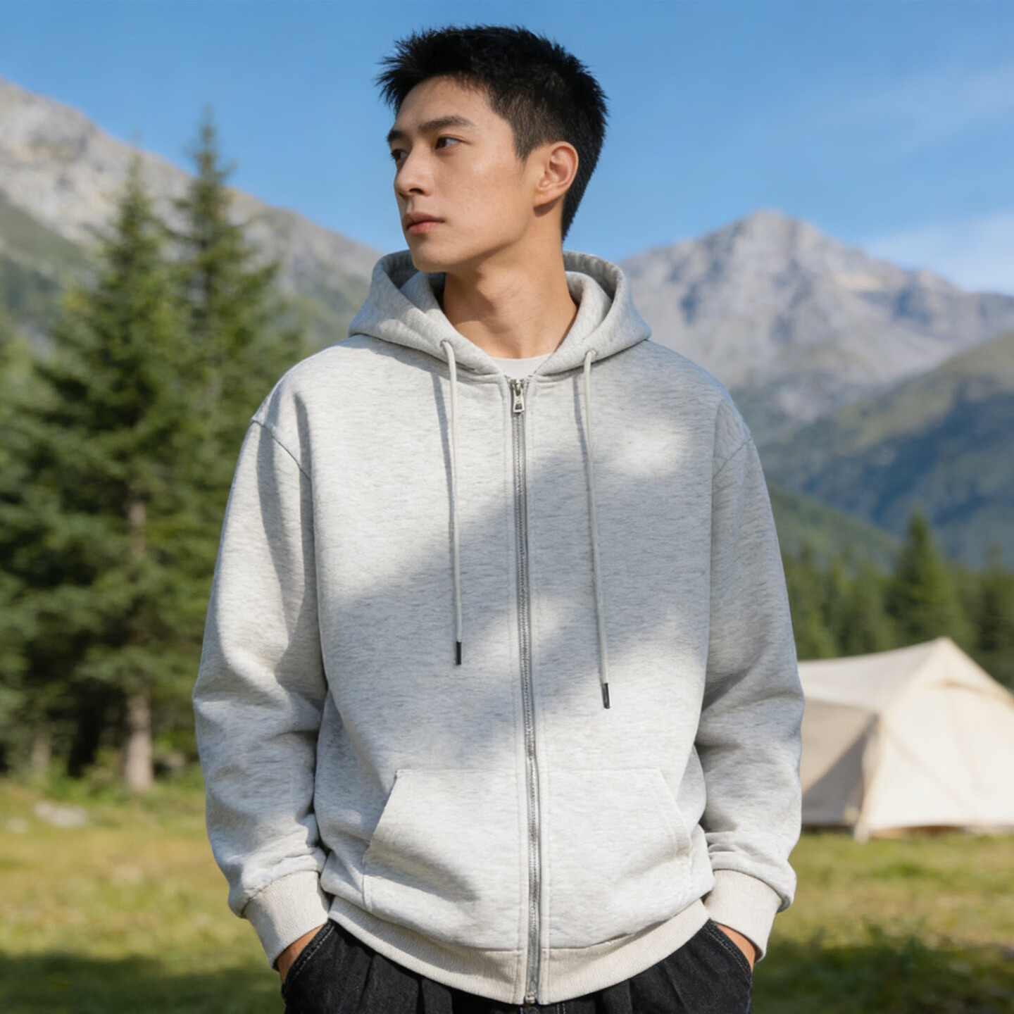 JEEP SPIRIT Jeep zipper hooded sweatshirt for men 2026 spring new solid color cardigan sweatshirt for men casual sports jacket for men gray 3XL 160 -180 Jin Jin is equal to 0.5 kg