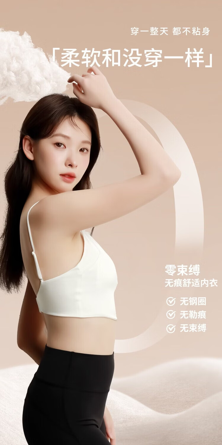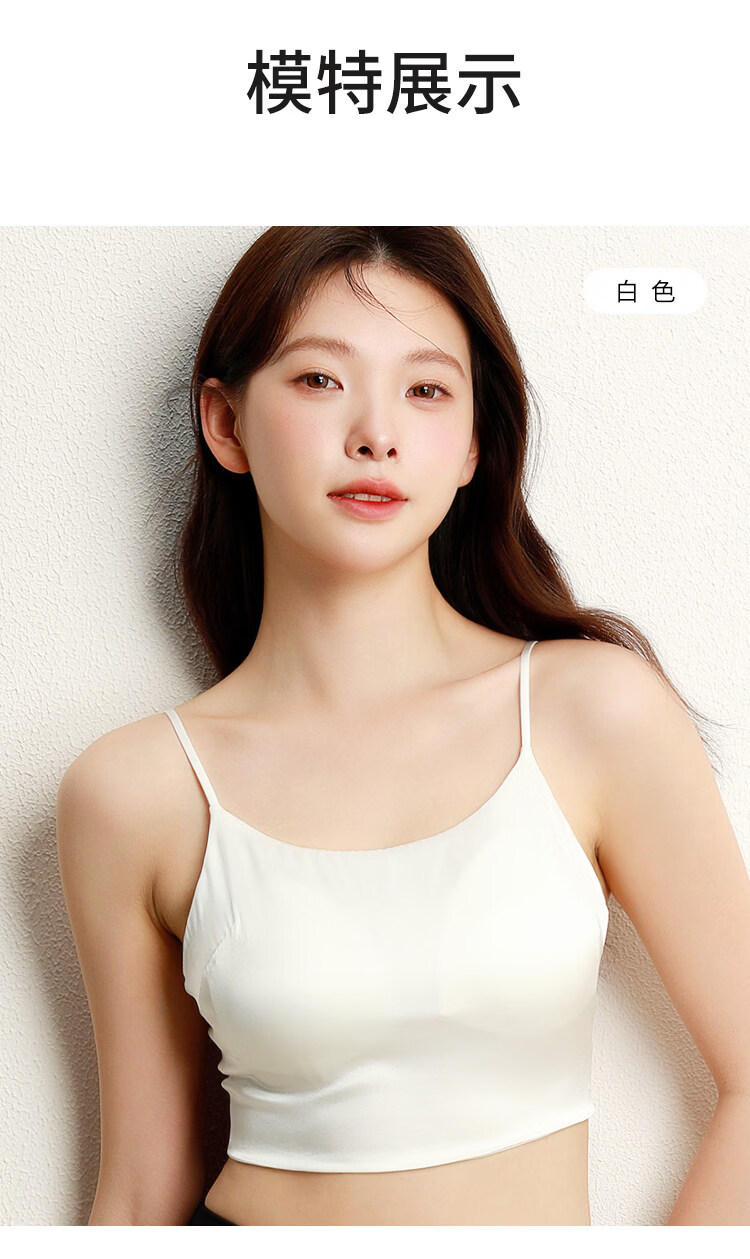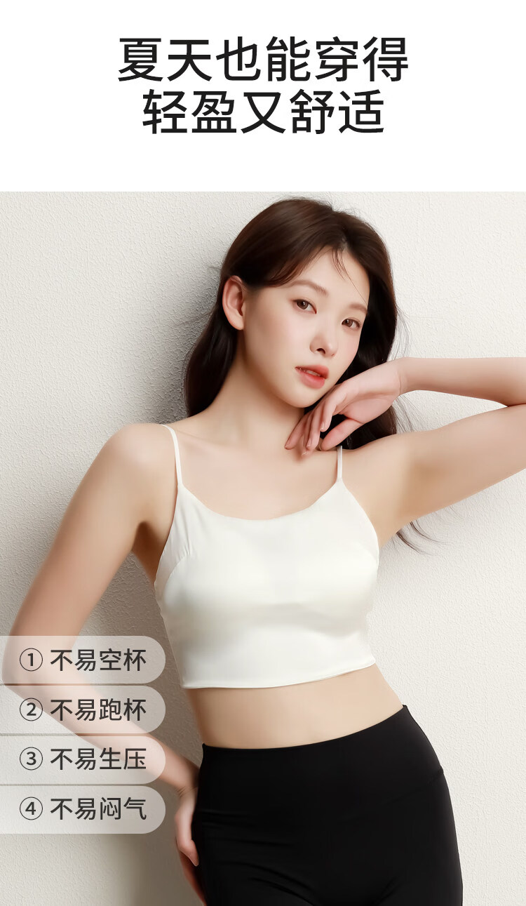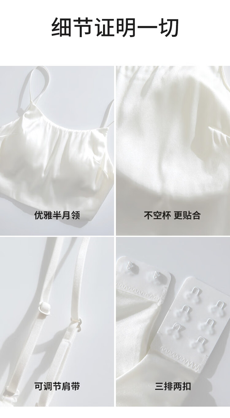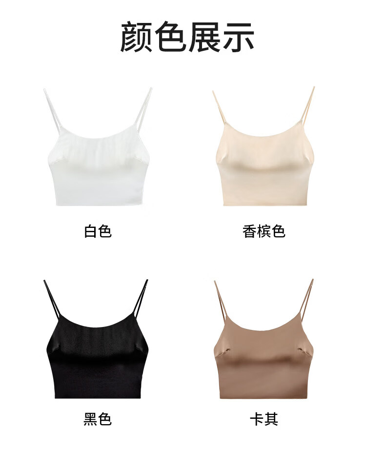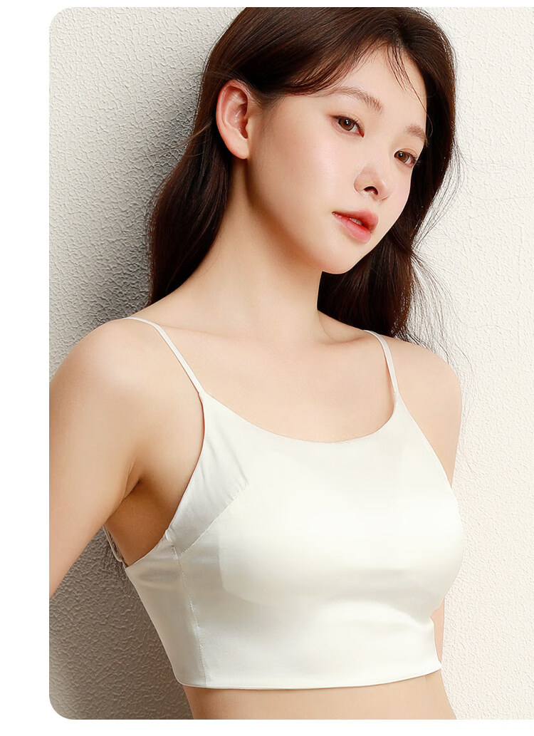 MOXTOC mulberry silk anti-exposure tube top with beautiful back silk underwear for women with no empty cups and small breasts push up to look bigger bra Khaki M