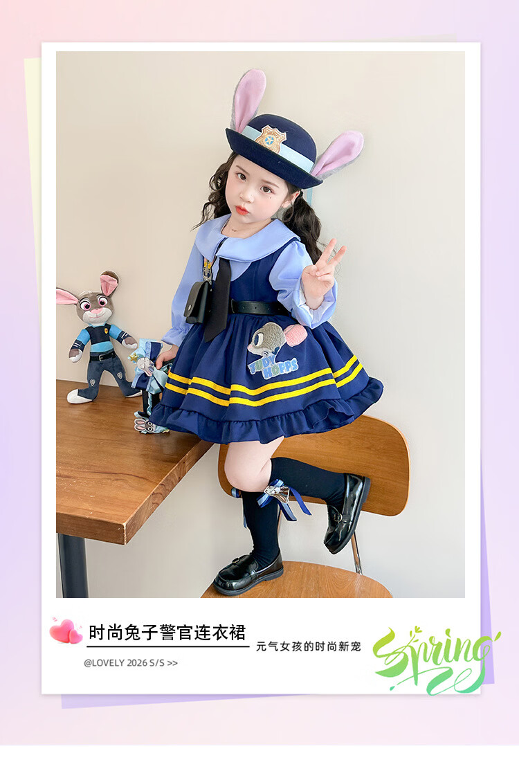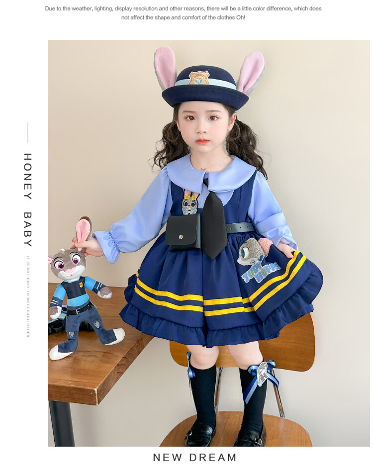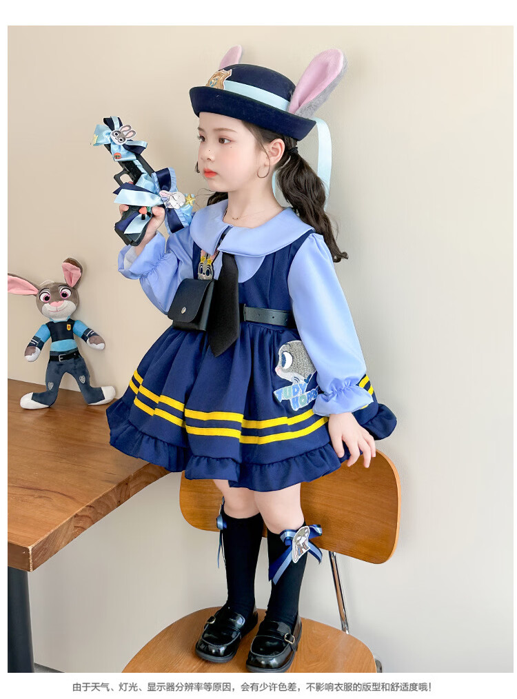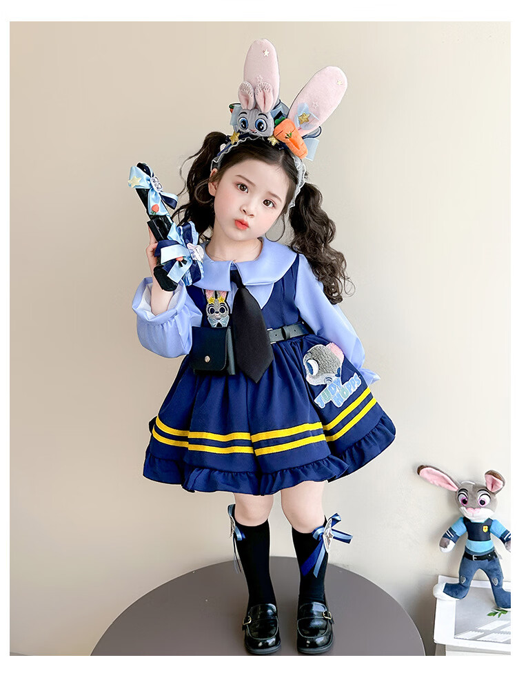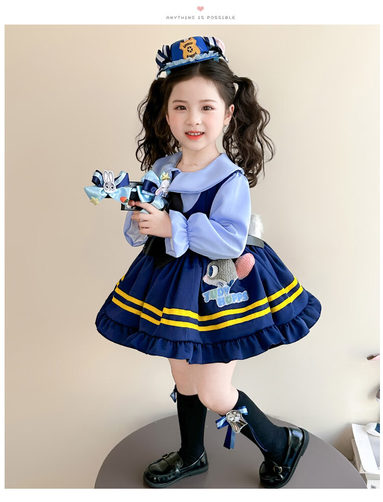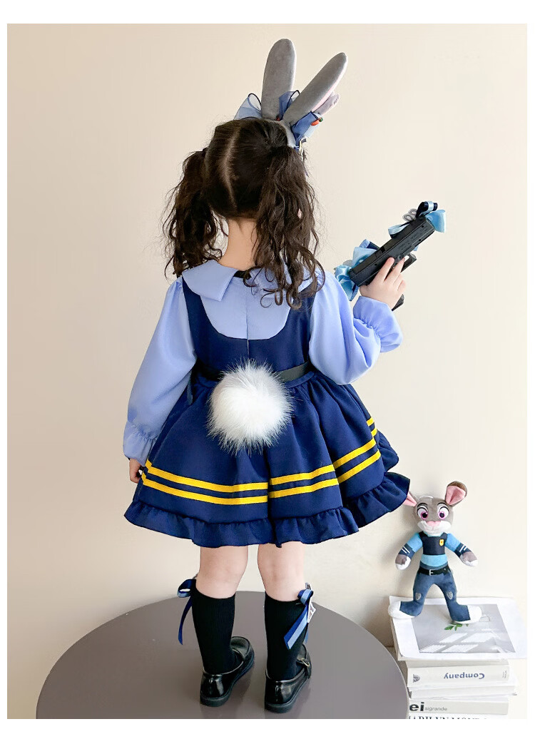 Ultraman Girls Judy Rabbit Police Officer Children's Clothes Long Sleeve Fake Two-piece Skirt Spring and Autumn Lolita Princess Skirt White (Pinline) 90 cm
