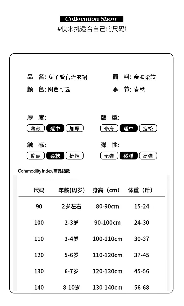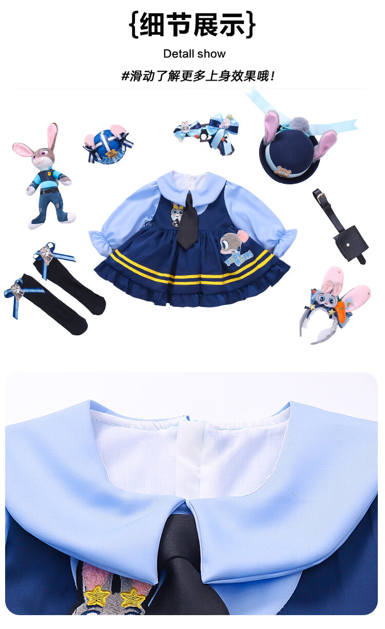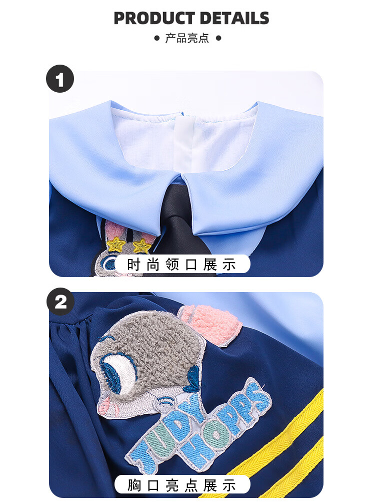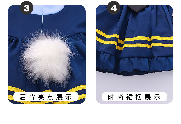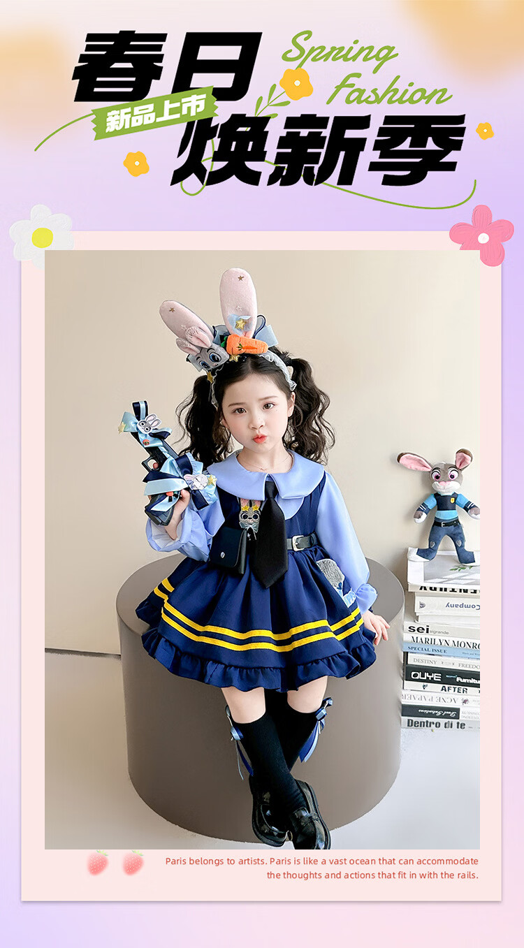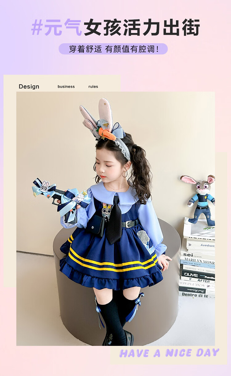 Ultraman Girls Judy Rabbit Police Officer Children's Clothes Long Sleeve Fake Two-piece Skirt Spring and Autumn Lolita Princess Skirt White (Pinline) 90 cm