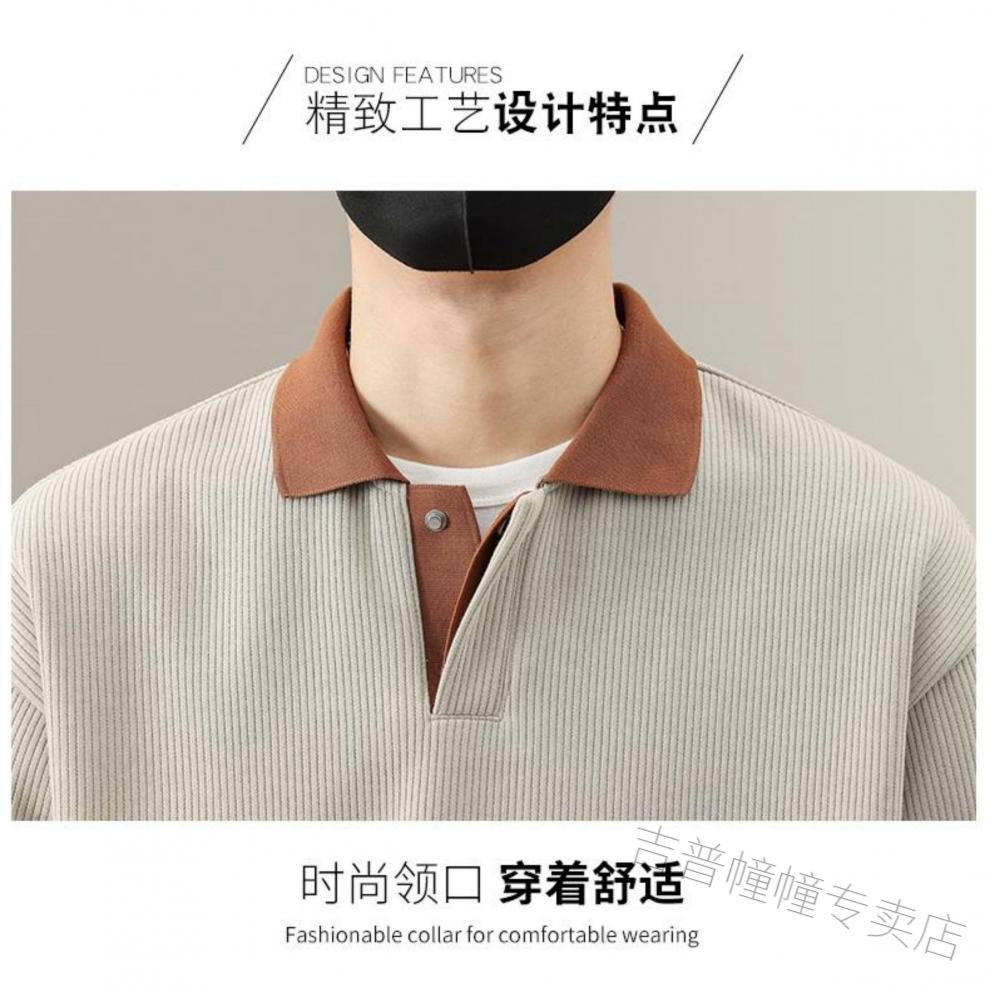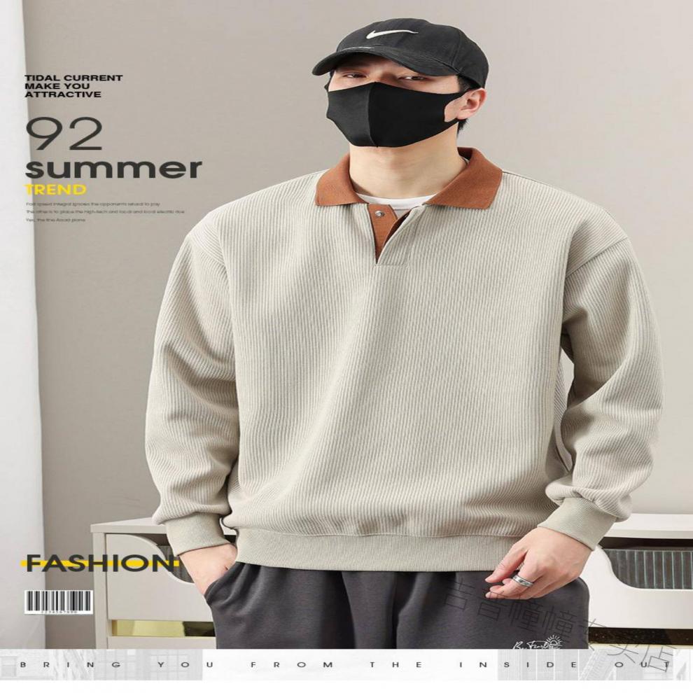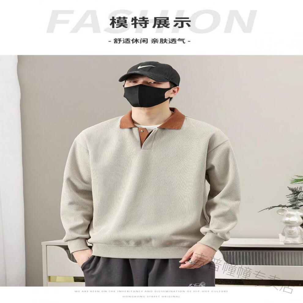 JEEP SPIRIT spring fat guy extra large size polo shirt collar design sweatshirt men's trendy V-neck high-end fattened casual men's shirt apricot 6XL recommended 225-255Jin Jin equals about 0.5 kg