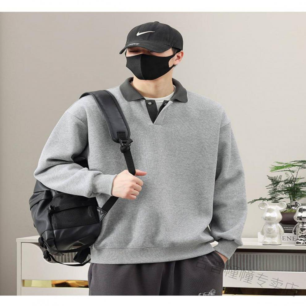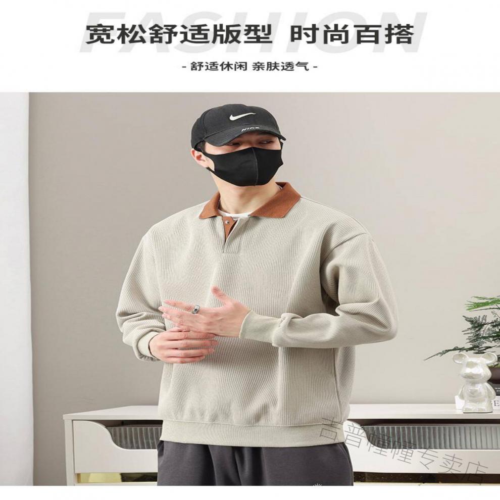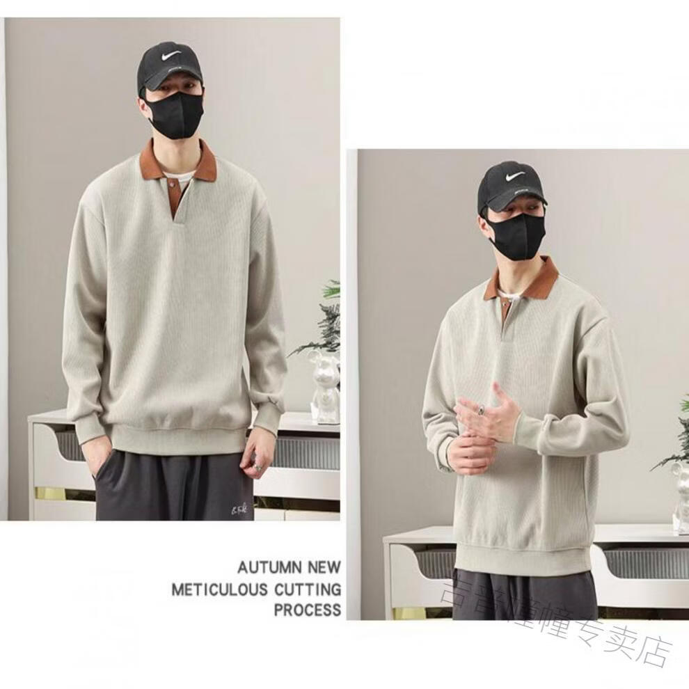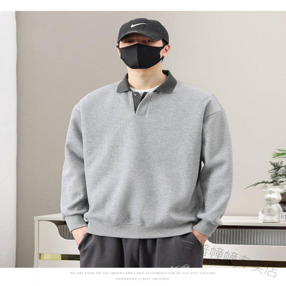 JEEP SPIRIT spring fat guy extra large size polo shirt collar design sweatshirt men's trendy V-neck high-end fattened casual men's shirt apricot 6XL recommended 225-255Jin Jin equals about 0.5 kg