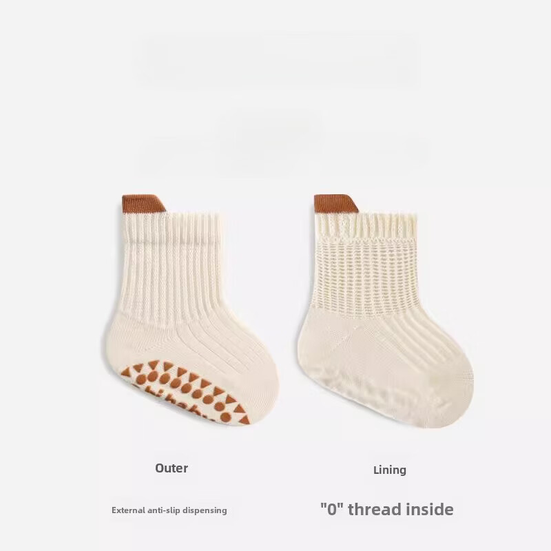 MiiOW Baby Toddler Socks Spring and Autumn Thin Baby Socks Indoor Cooling Anti-Slip Pink Set 3 Pairs 0-1 Years Old S Size (Suitable for Foot Length 9-11cm)