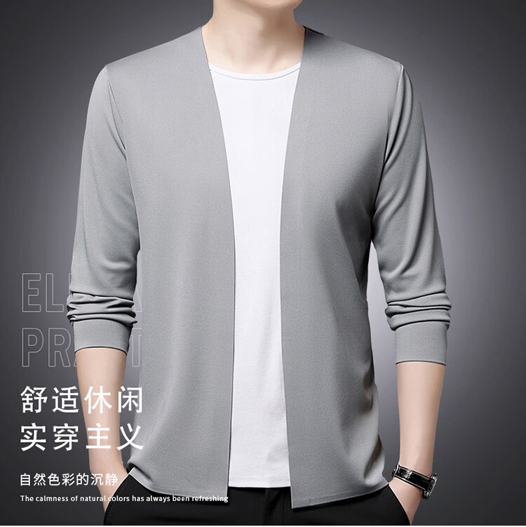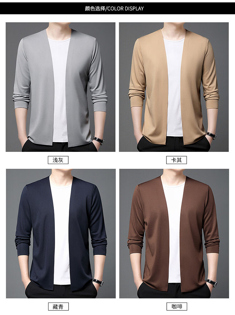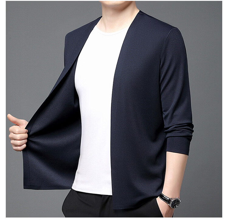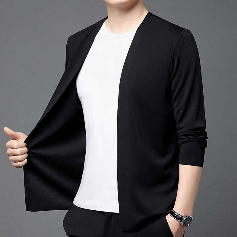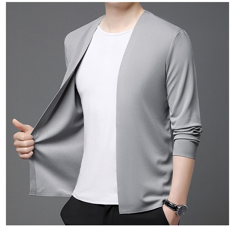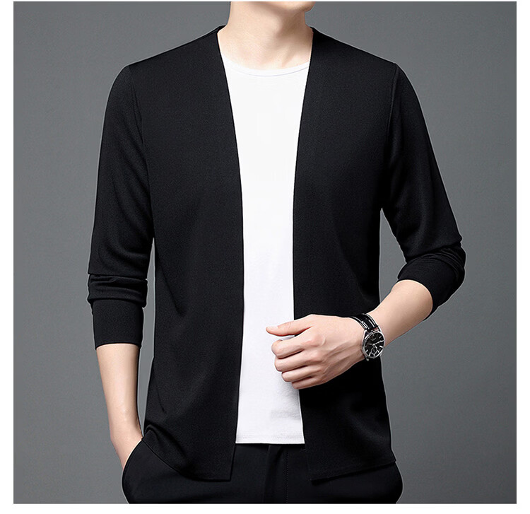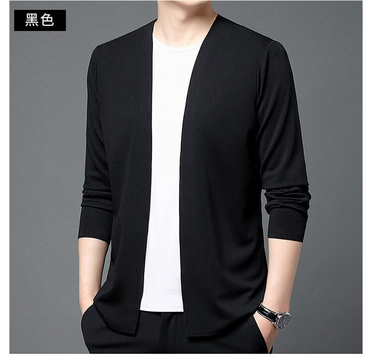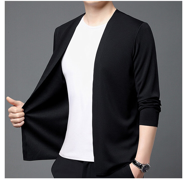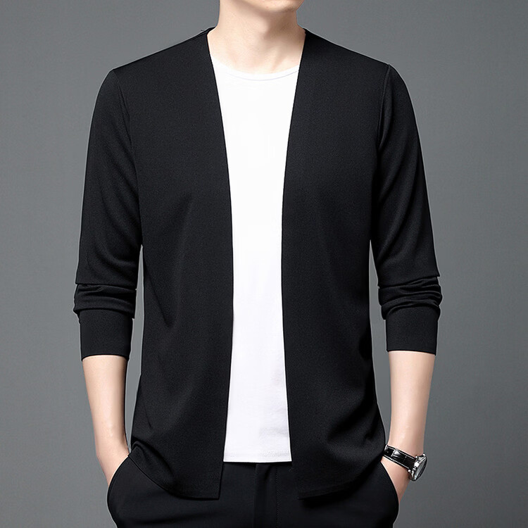 Playboy (PLAYBOY) solid color men's ice silk jacket new middle-aged iron-free seamless sweater business casual cardigan long-sleeved T-shirt for men black S 165