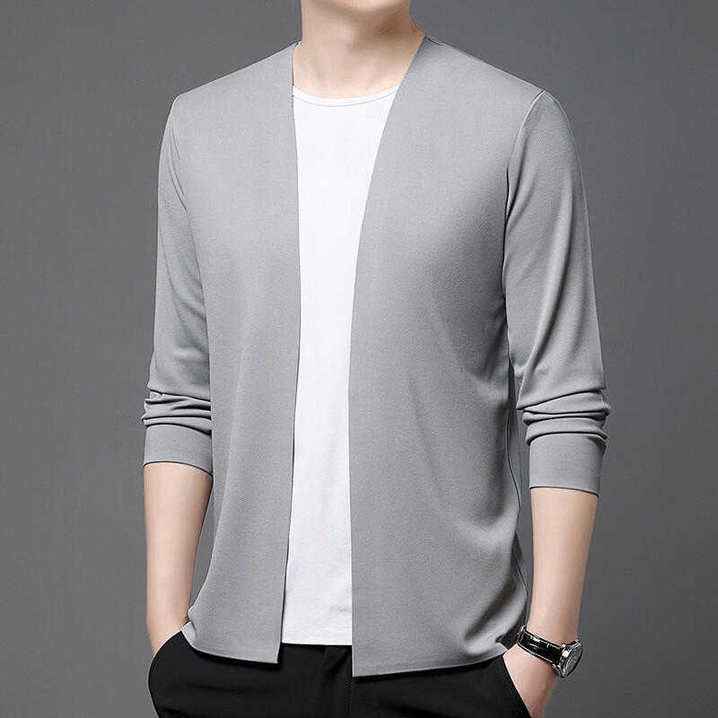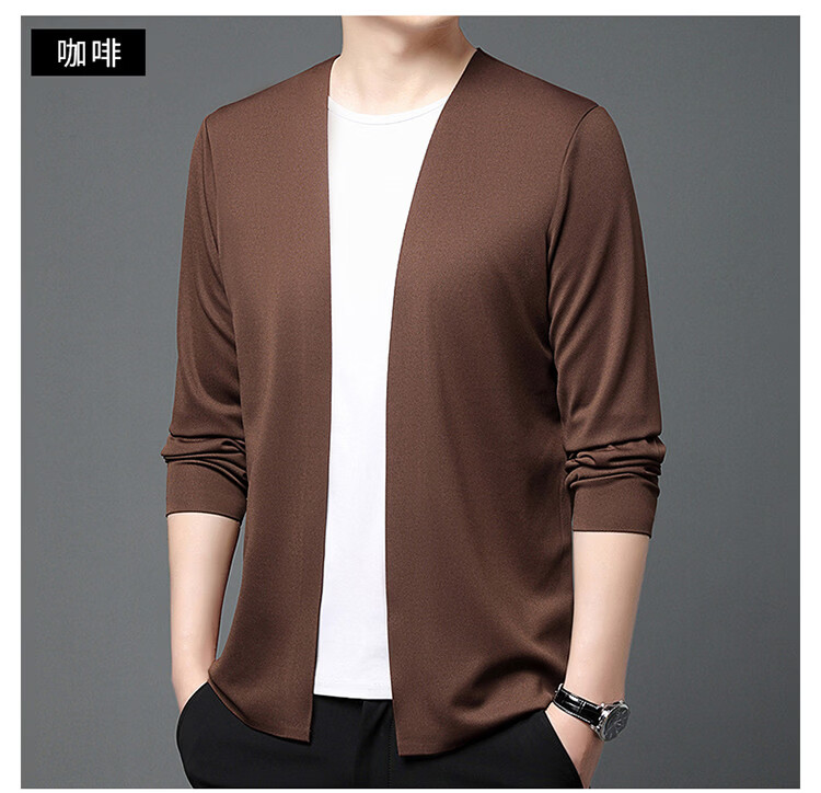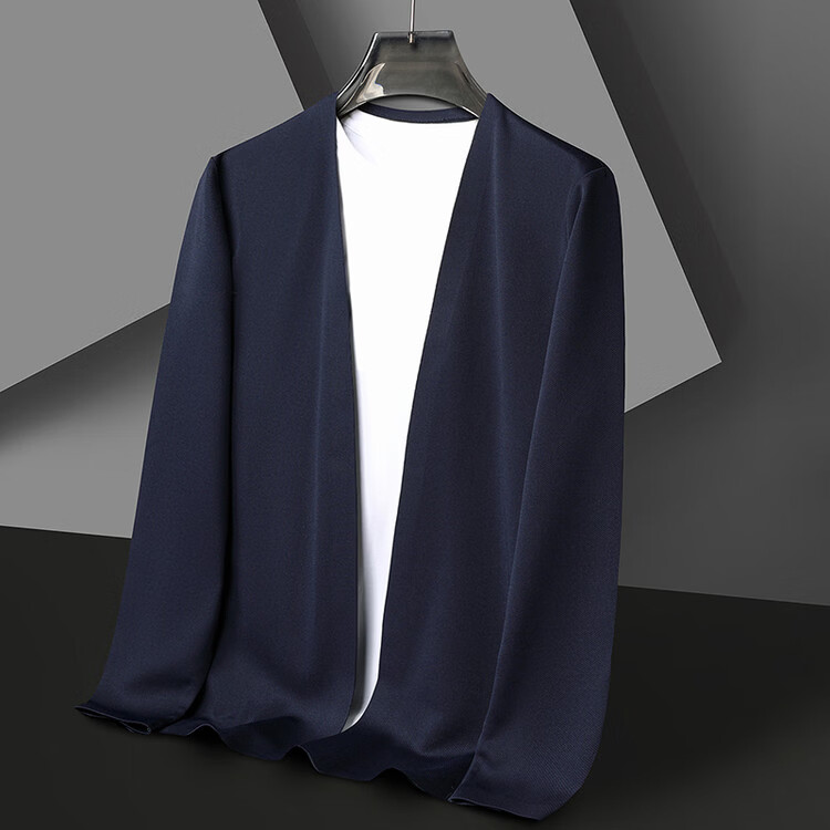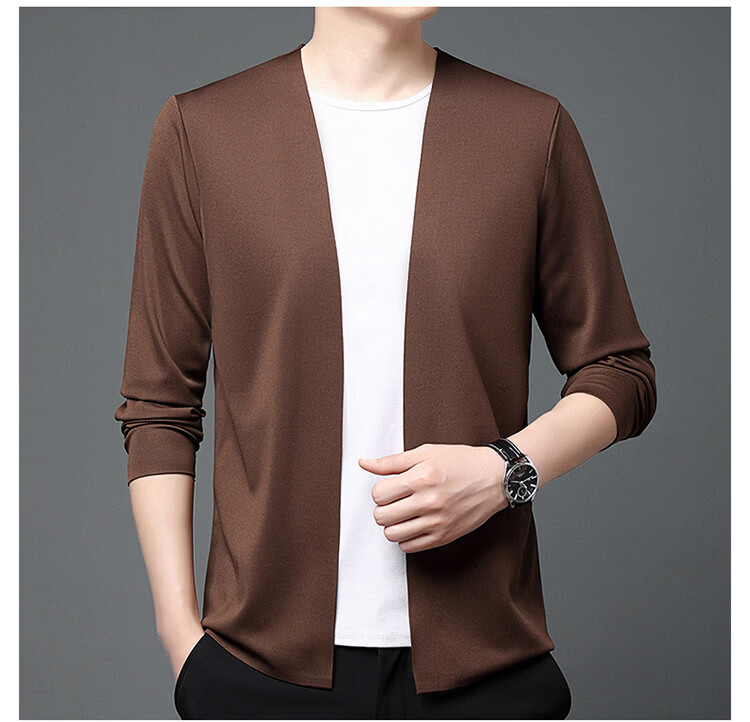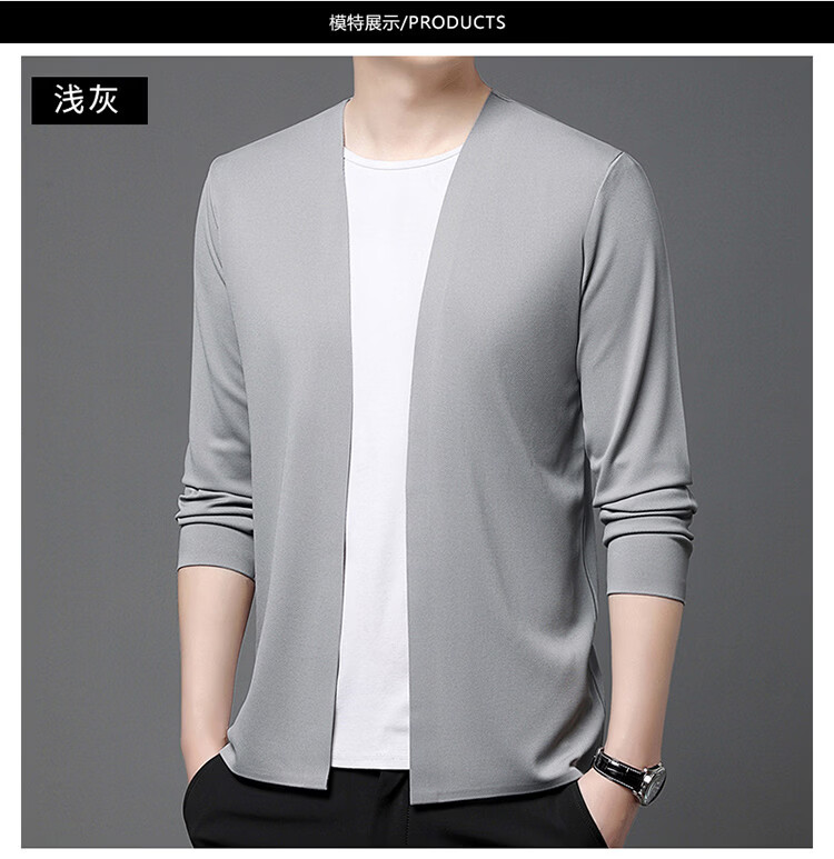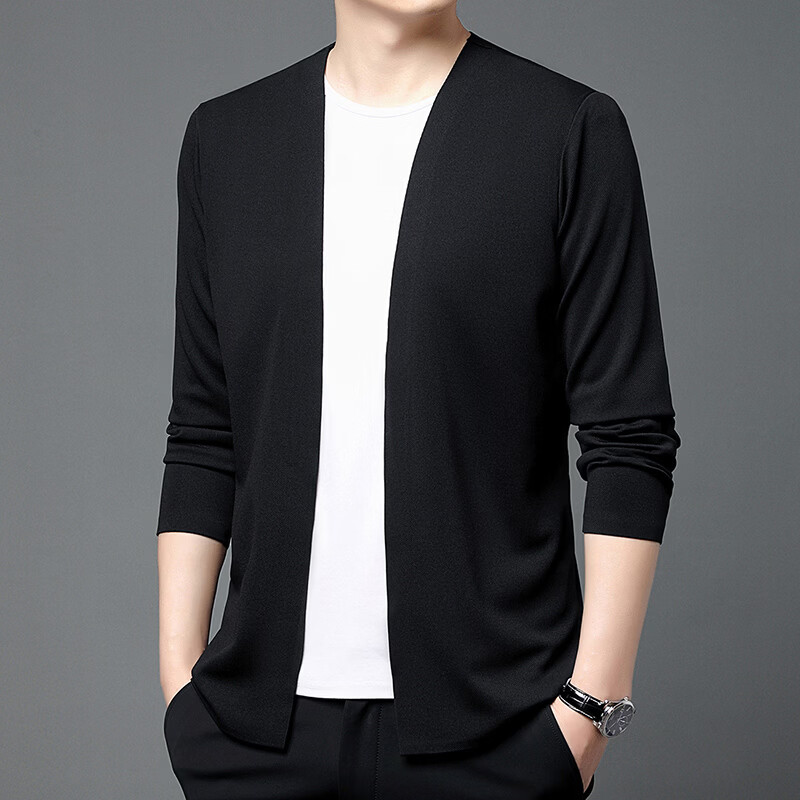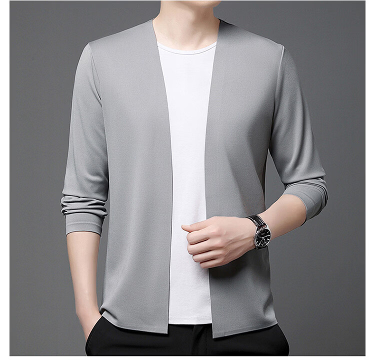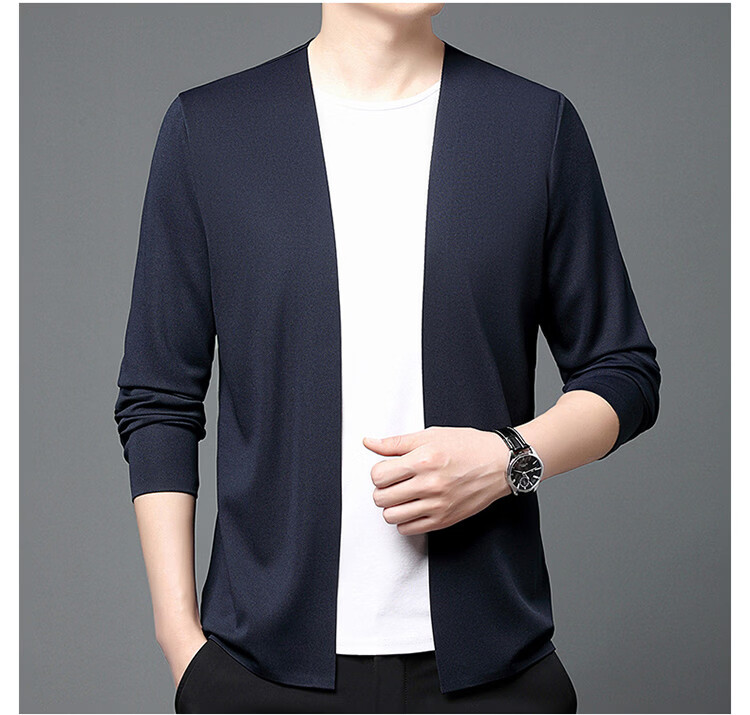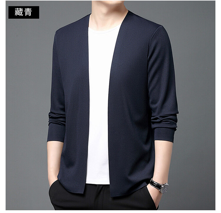 Playboy (PLAYBOY) solid color men's ice silk jacket new middle-aged iron-free seamless sweater business casual cardigan long-sleeved T-shirt for men black S 165