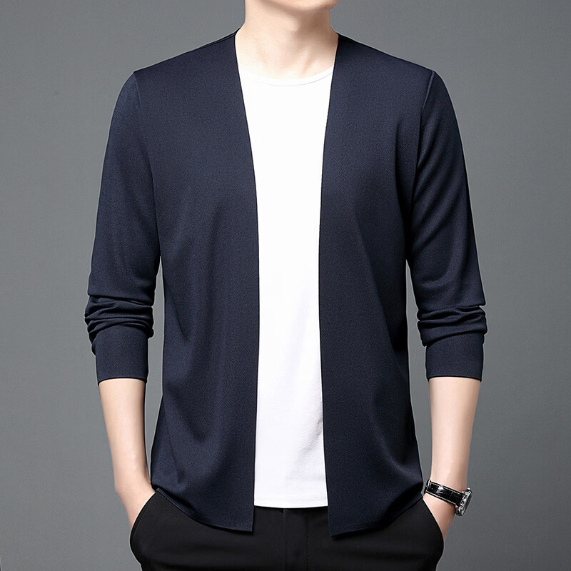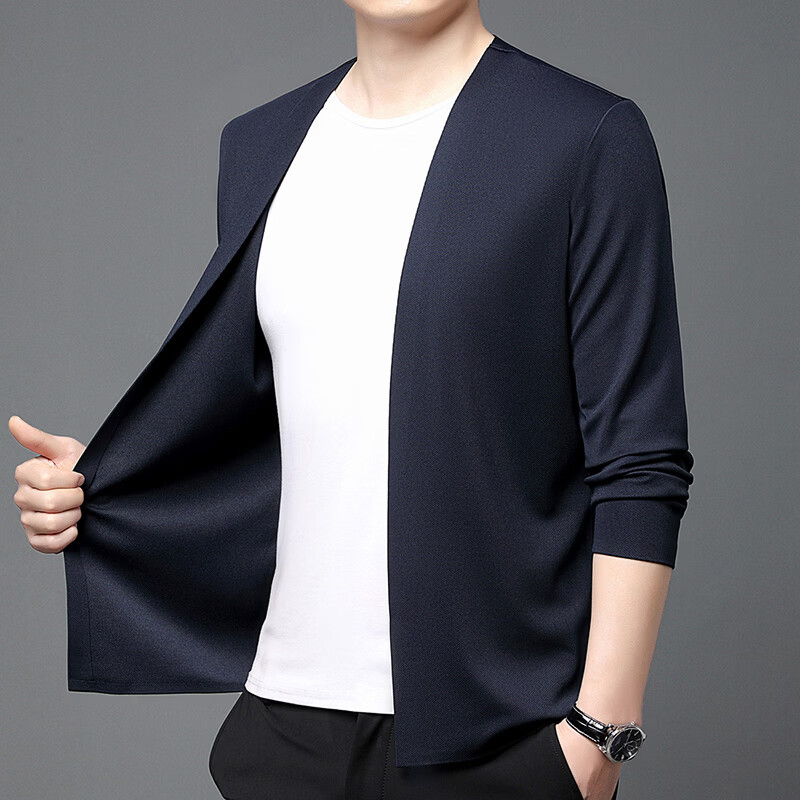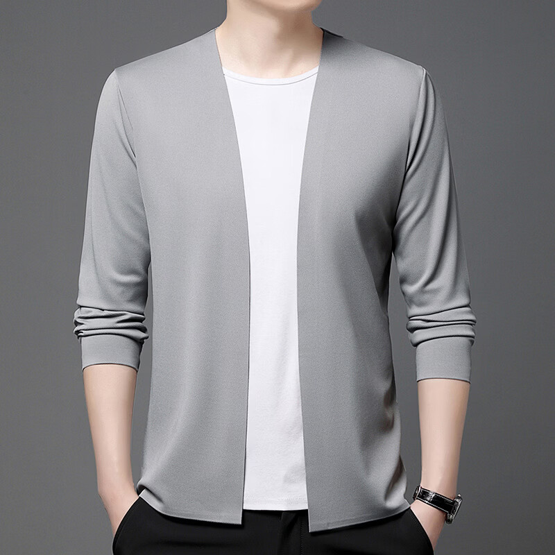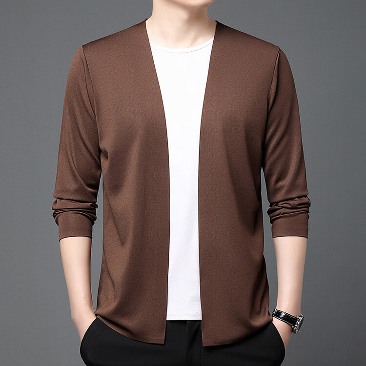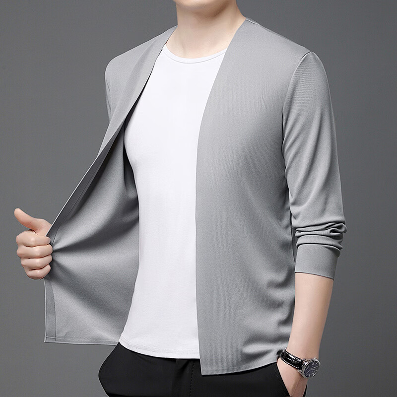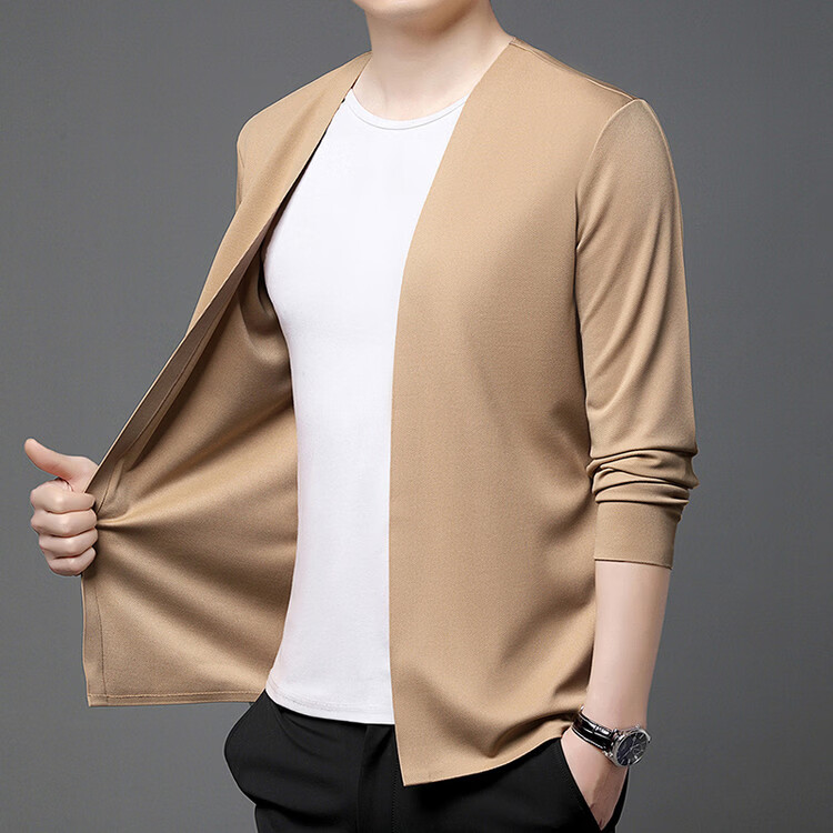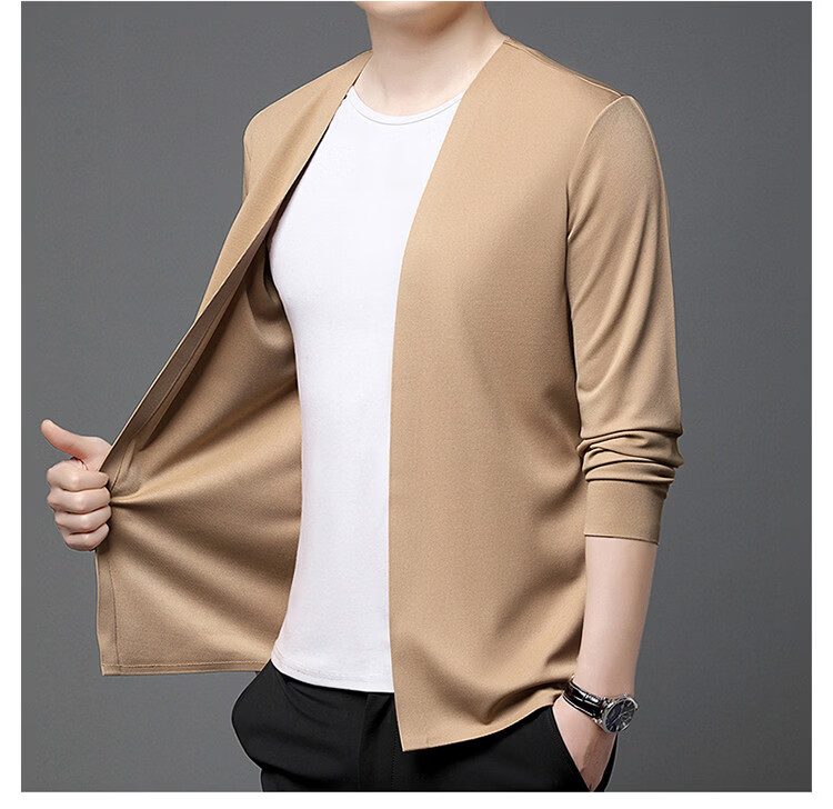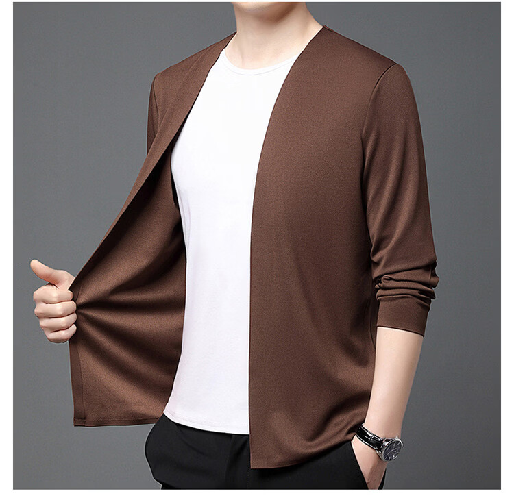 Playboy (PLAYBOY) solid color men's ice silk jacket new middle-aged iron-free seamless sweater business casual cardigan long-sleeved T-shirt for men black S 165