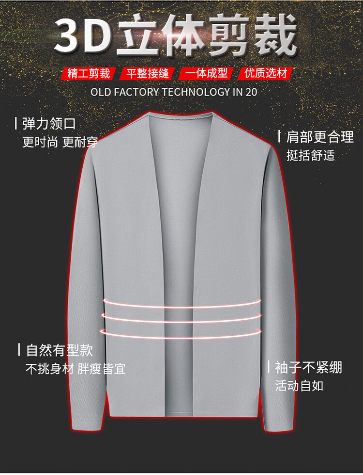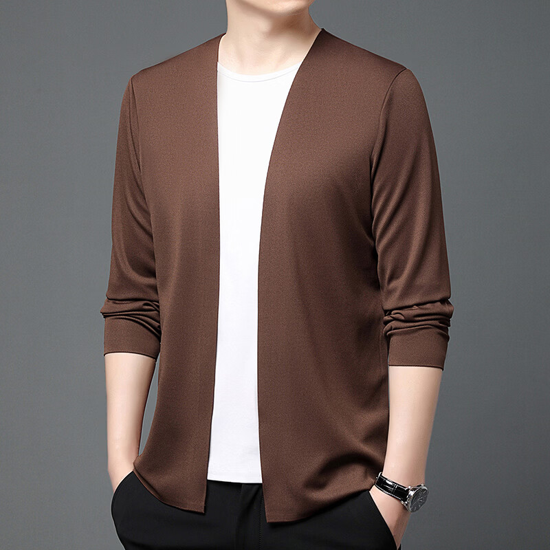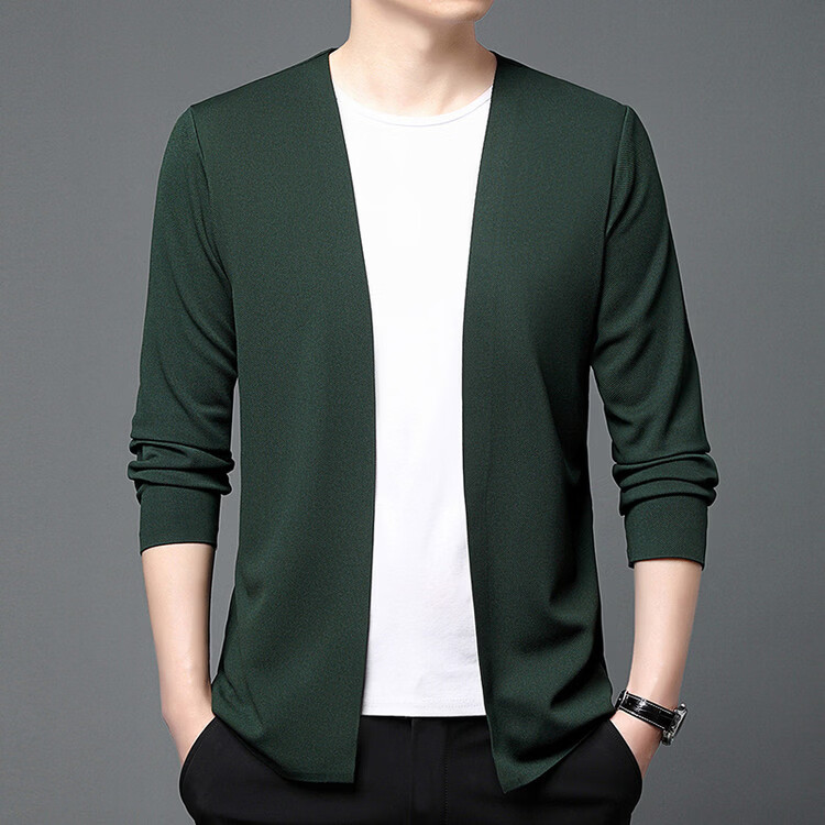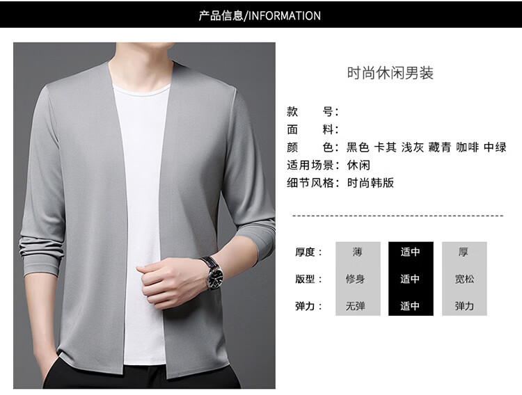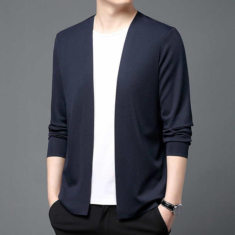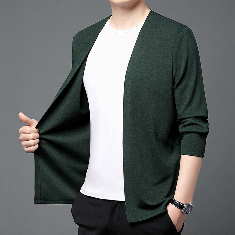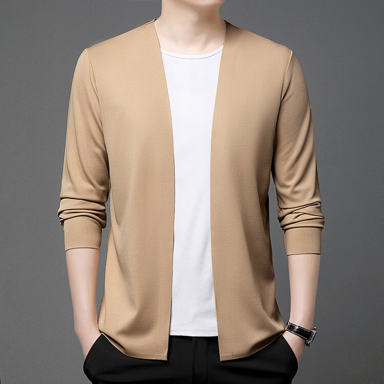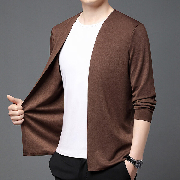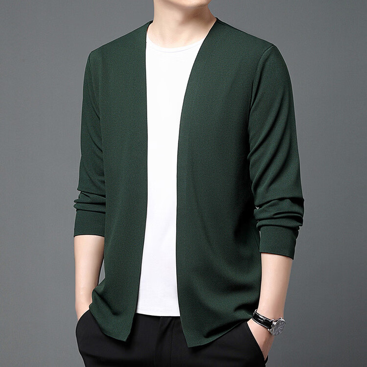 Playboy (PLAYBOY) solid color men's ice silk jacket new middle-aged iron-free seamless sweater business casual cardigan long-sleeved T-shirt for men black S 165