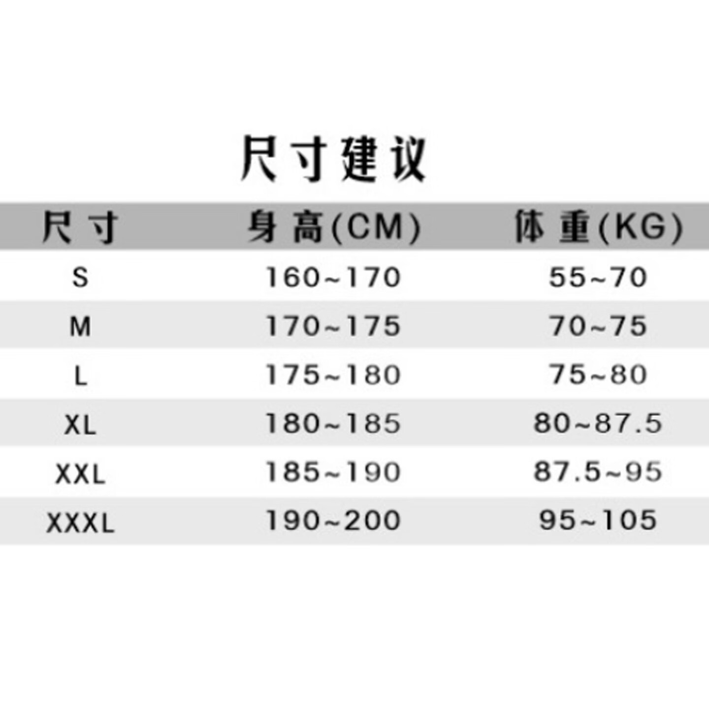 China (cm) 165 / 88-90 170 / 96-98 175 / 108-110 180 / 118-122 185 / 126-130