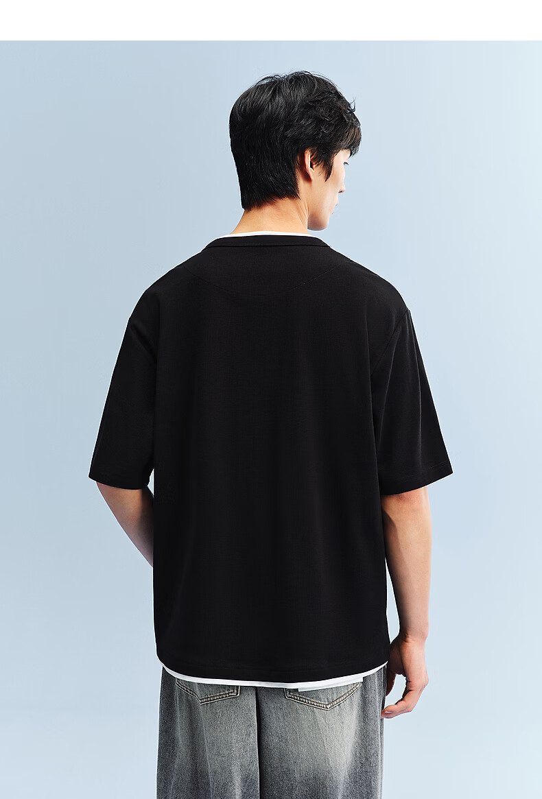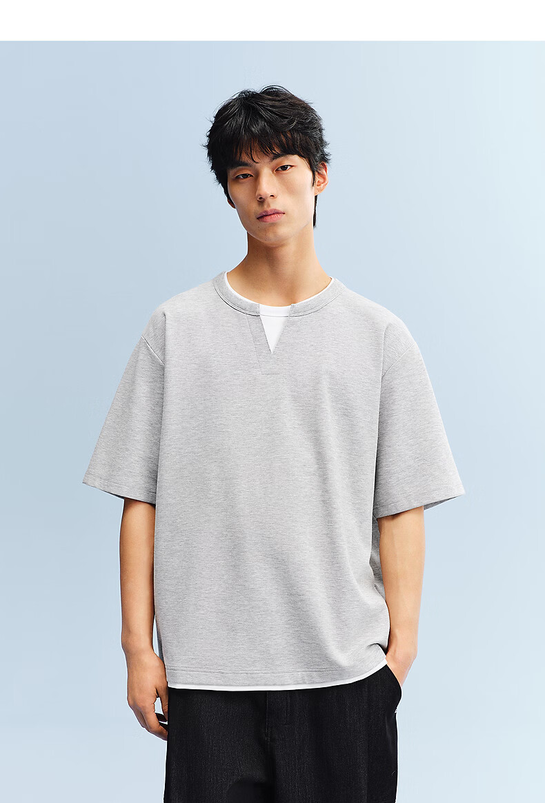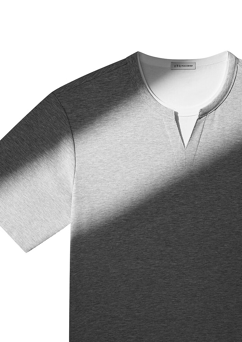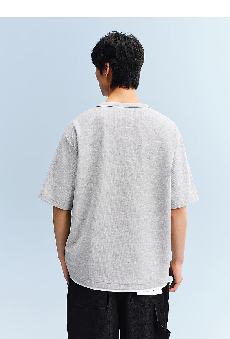 PEACEBIRD Men's Henley Collar Heavy Waffle Short Sleeve T-shirt 2026 Summer New Contrast Color Splicing T-shirt Wet Cold Gray First Batch Expected to Ship on March 15th L