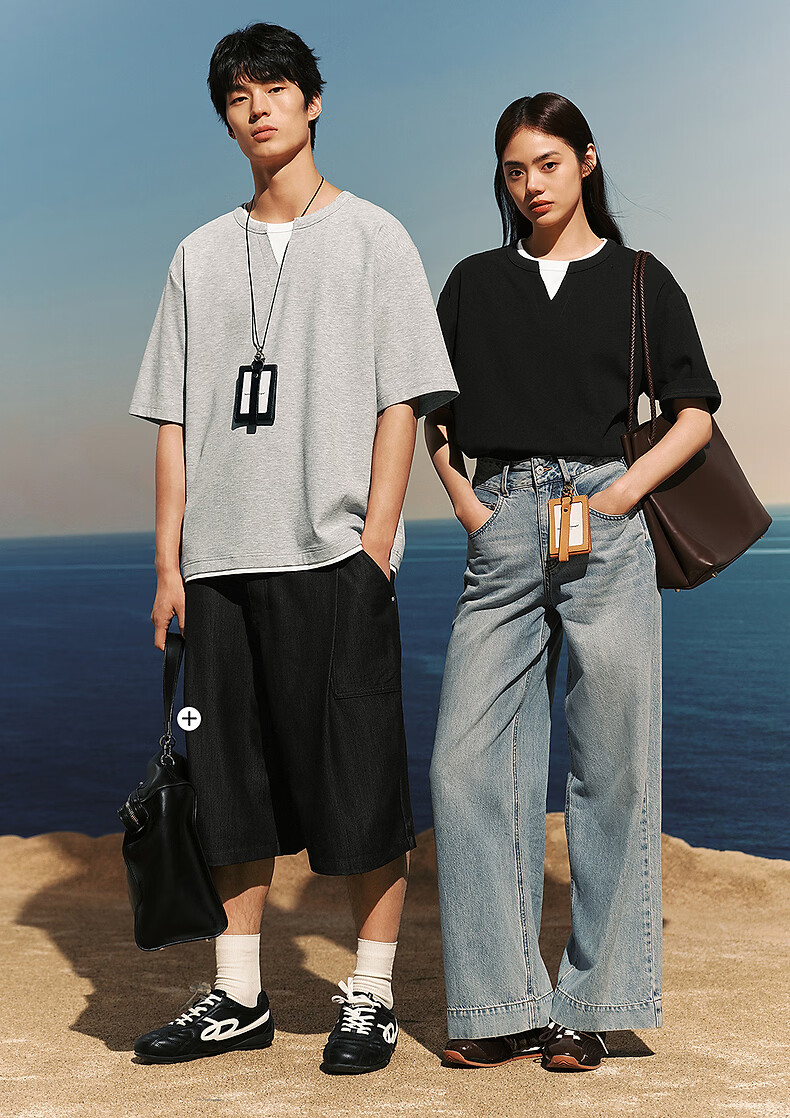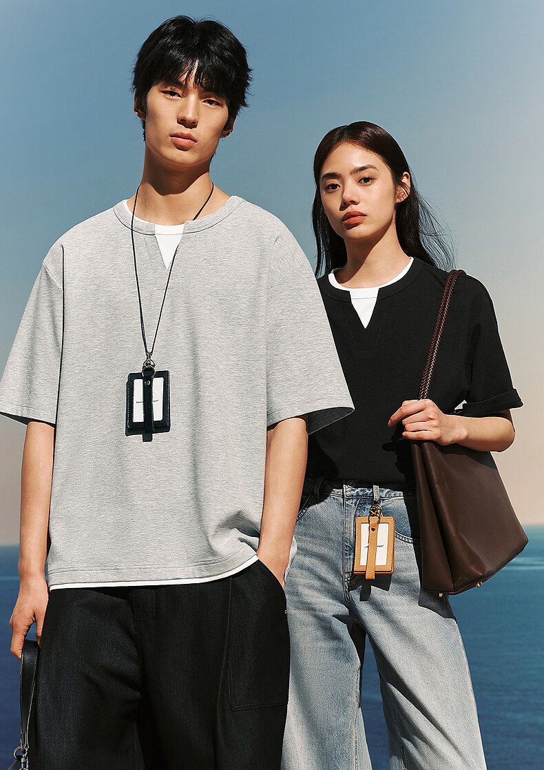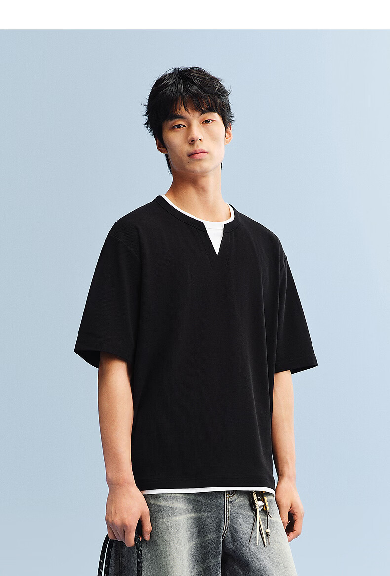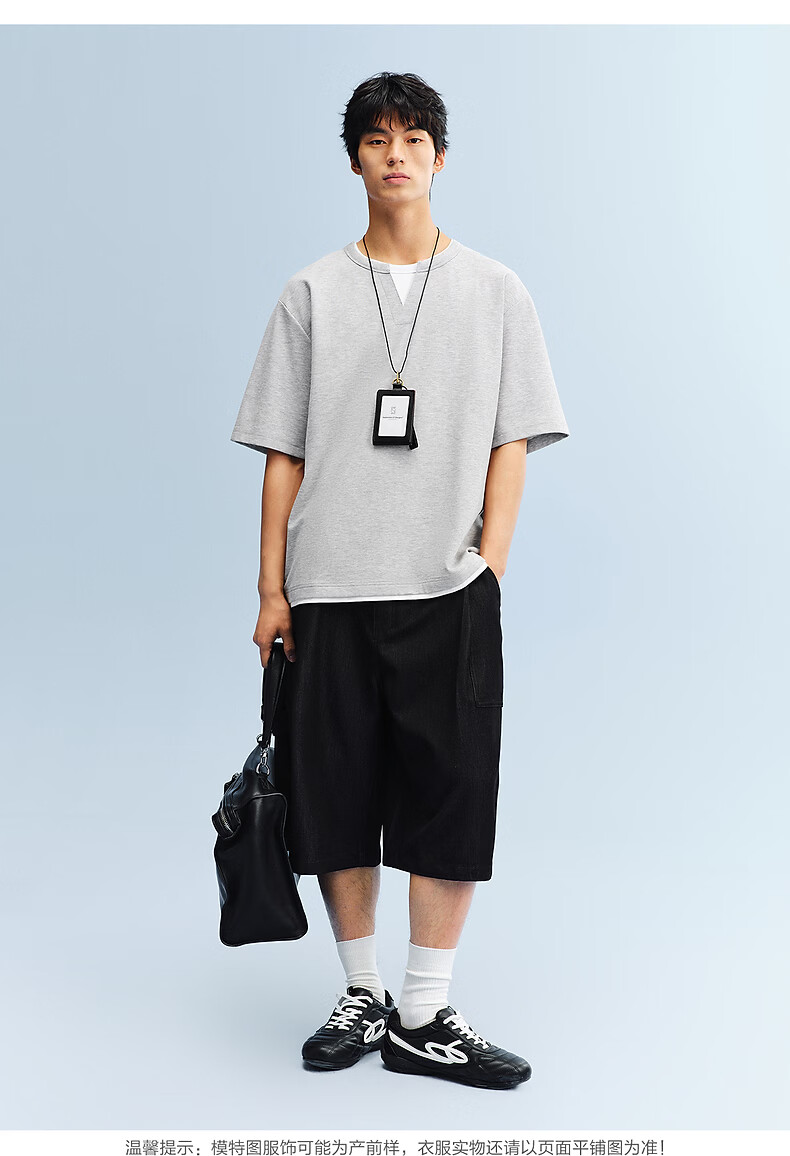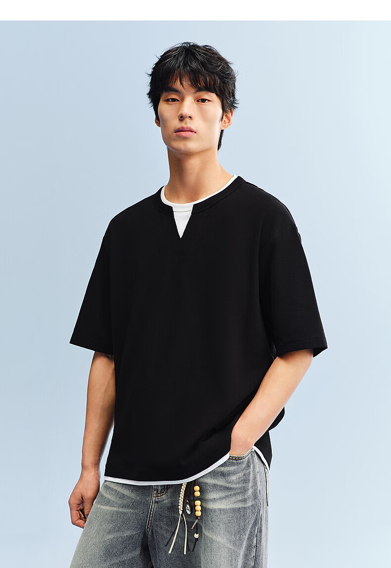 PEACEBIRD Men's Henley Collar Heavy Waffle Short Sleeve T-shirt 2026 Summer New Contrast Color Splicing T-shirt Wet Cold Gray First Batch Expected to Ship on March 15th L