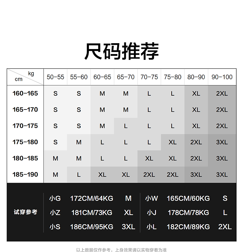 China (cm) 165 / 88-90 170 / 96-98 175 / 108-110 180 / 118-122 185 / 126-130