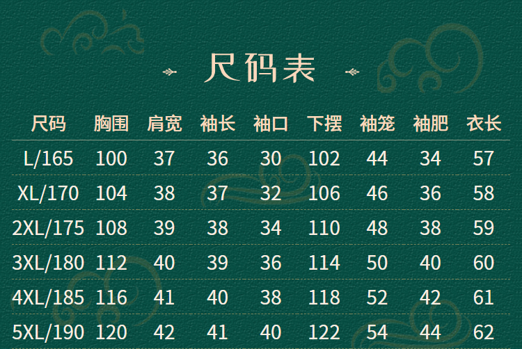 China (cm) 165 / 88-90 170 / 96-98 175 / 108-110 180 / 118-122 185 / 126-130