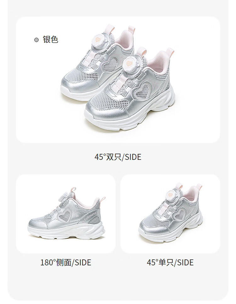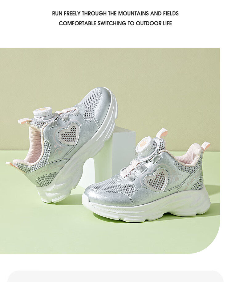 Fuluo Mi Girls Mesh Light Breathable Sports Shoes Spring and Autumn New Children's Fashion Campus Versatile Casual Shoes Silver Single Layer 28