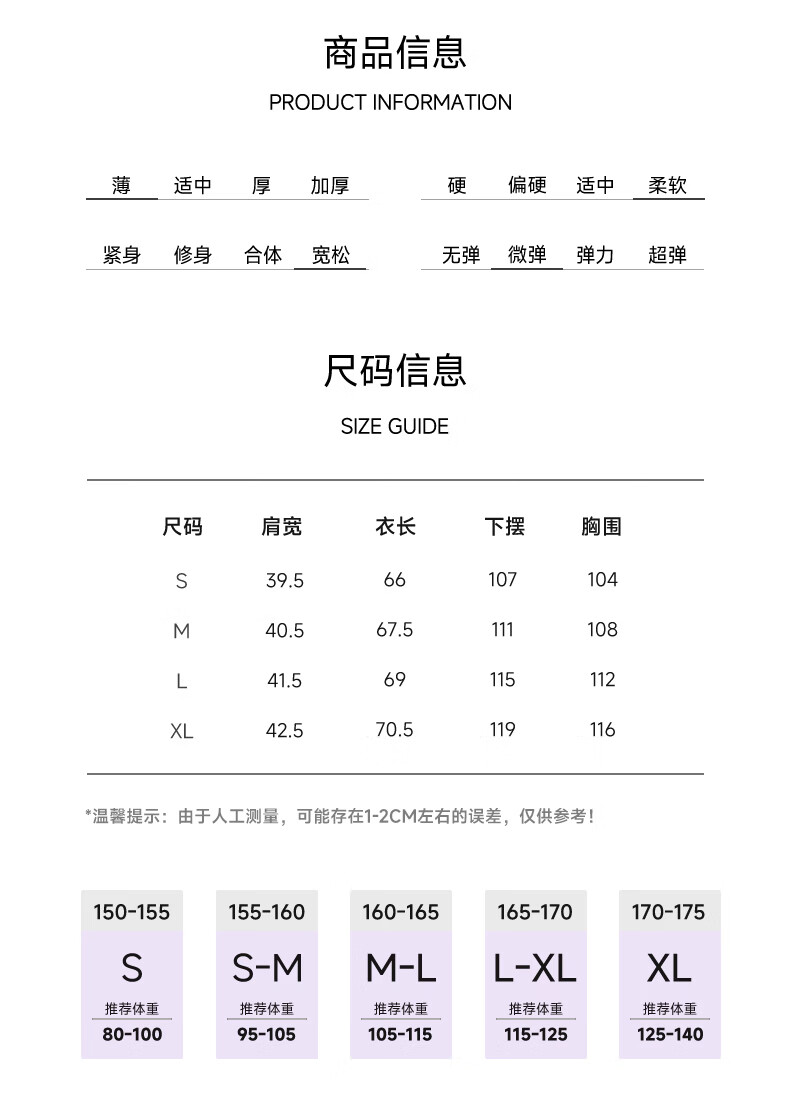 China (cm) 160-165/84-86 165-170 / 88-90 167-172 / 92-96 168-173 / 98-102 170-176 / 106-110