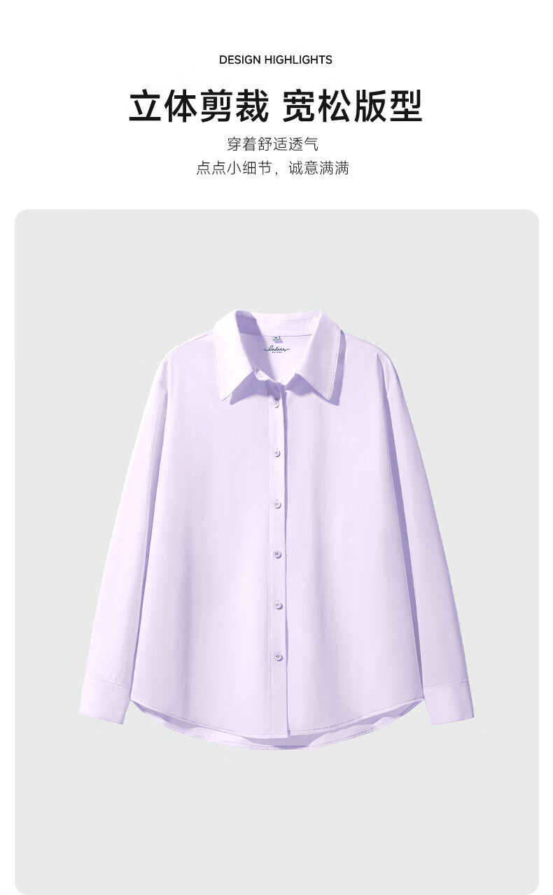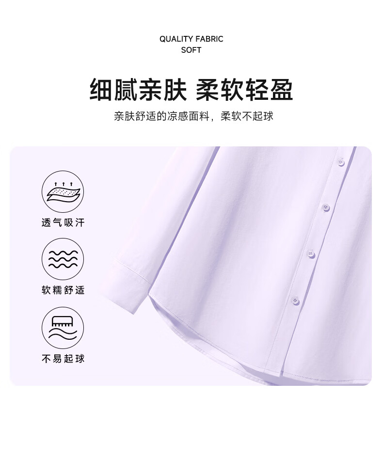 Baleno ice silk long-sleeved shirt for women 2026 summer cool breathable loose casual high-end sun protection inner suspender top light purple #solid color S